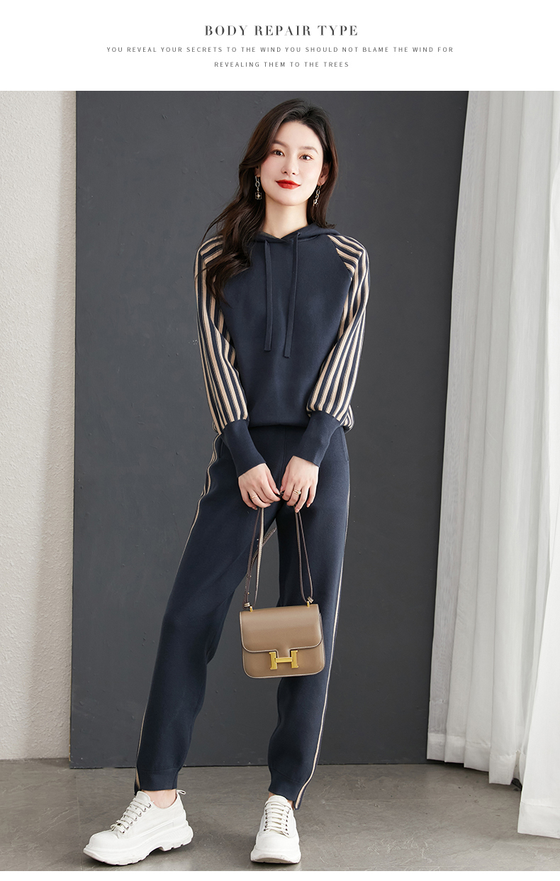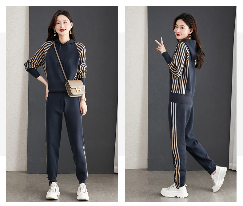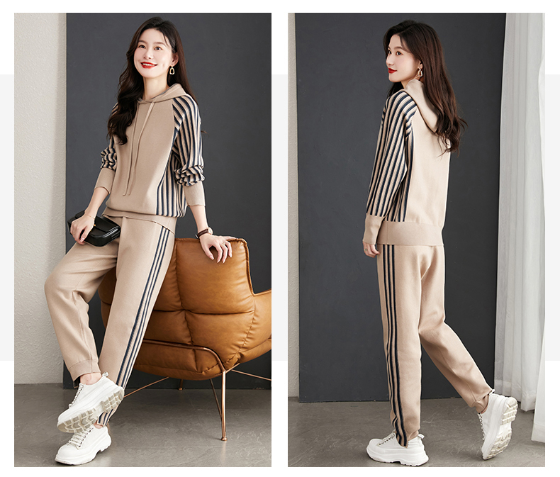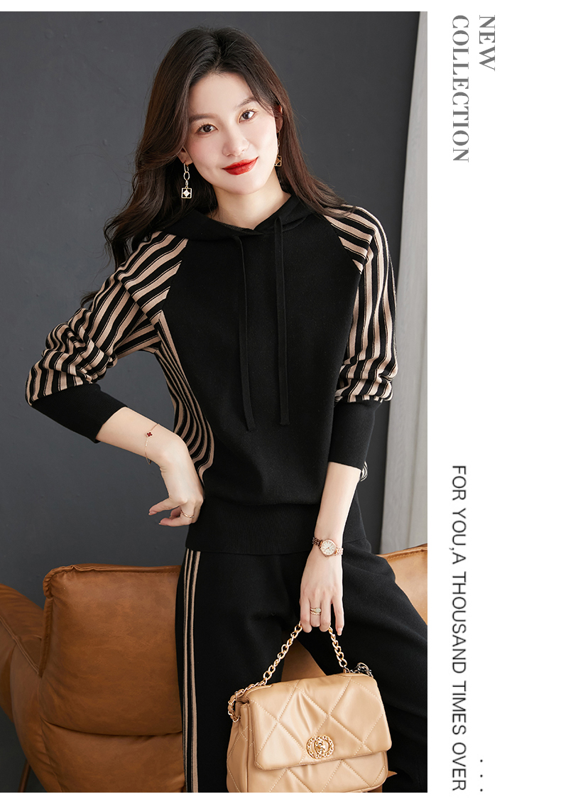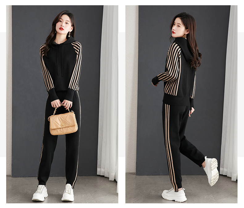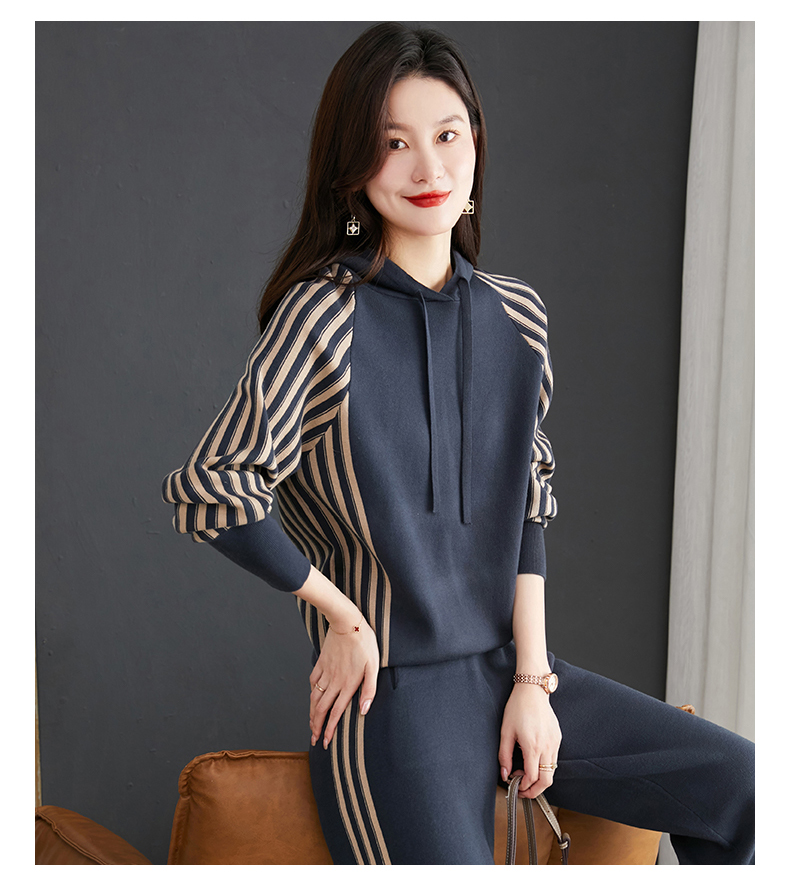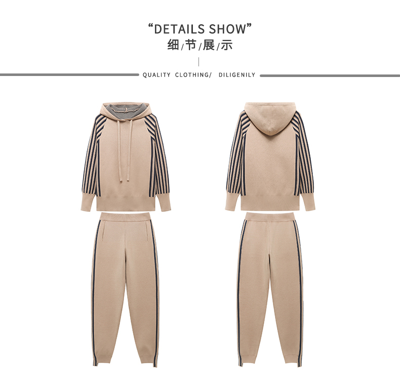 XYFS21-8187新款时尚气质休闲宽松连帽长袖针织卫衣运动裤两件套