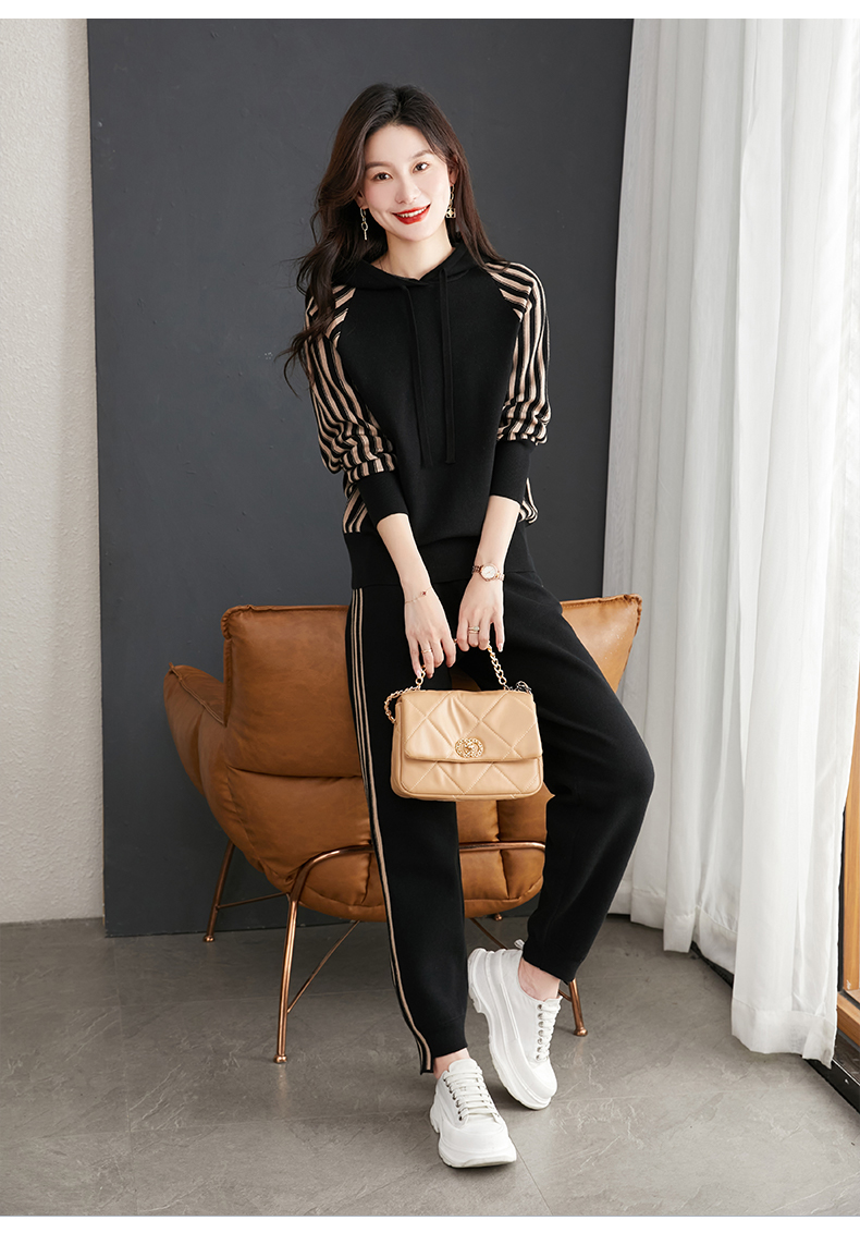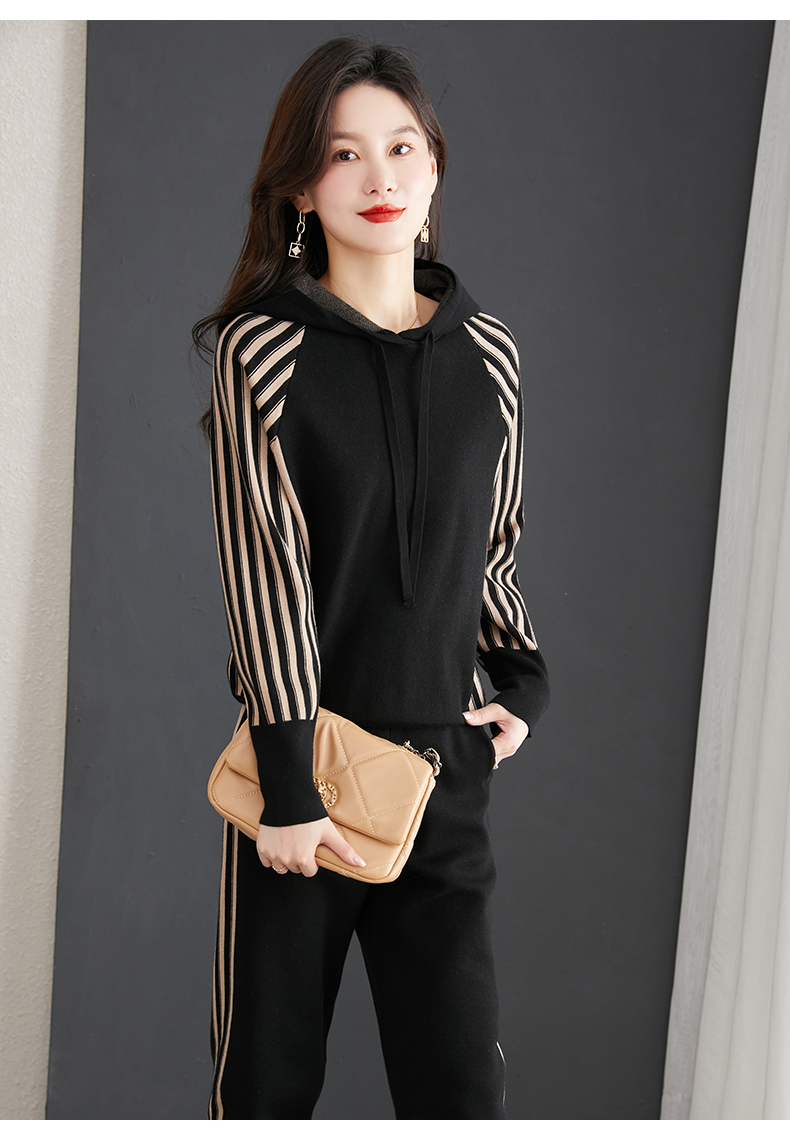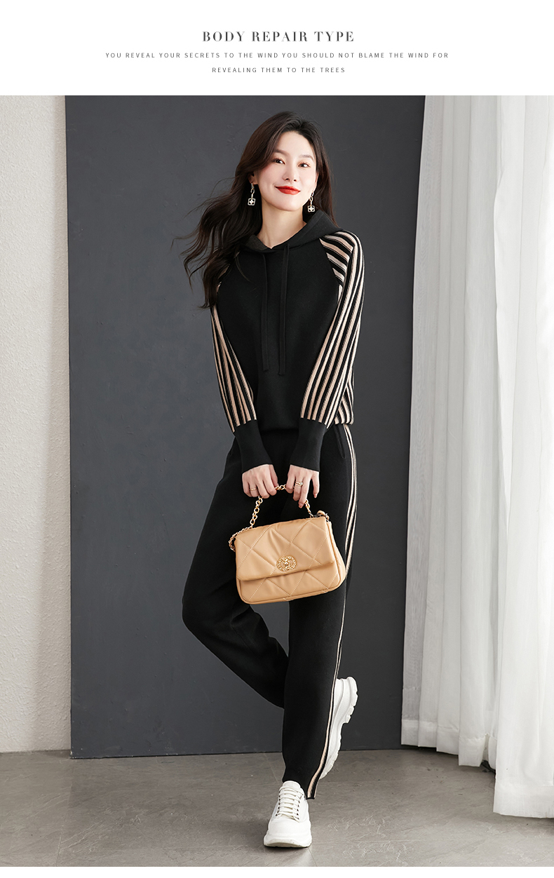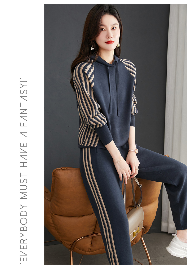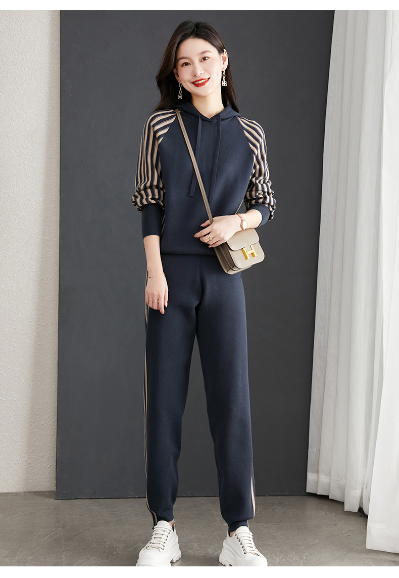 XYFS21-8187新款时尚气质休闲宽松连帽长袖针织卫衣运动裤两件套