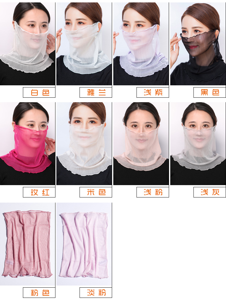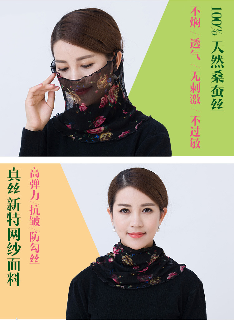 NL-多功能围脖真丝围脖女面罩桑蚕丝脖套假领子夏季遮阳骑行口罩围巾丝巾小领巾