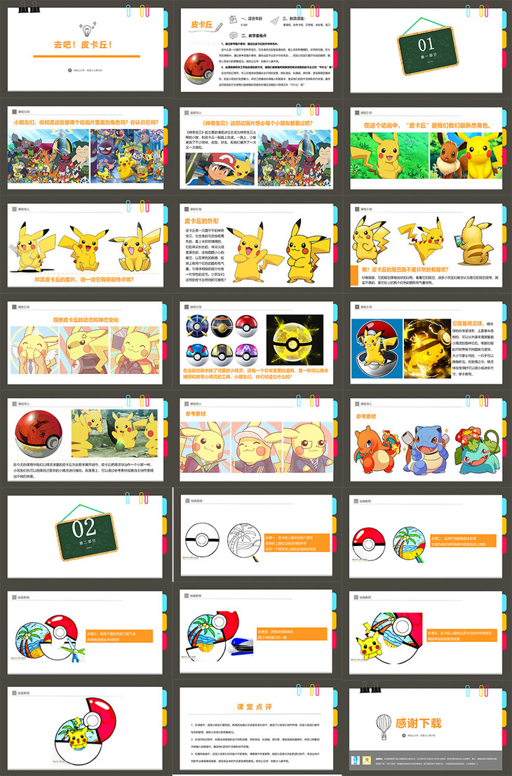 皮卡丘是一只圆乎乎的神奇宝贝,它全身的毛发都是黄色的,看上去软软糯糯的,非常的可爱。在今天的课程中,通过参考的图片素材,描绘出皮卡丘的外形和色彩,,启发小朋友们展开相关的联想,锻炼小朋友们的想象能力。