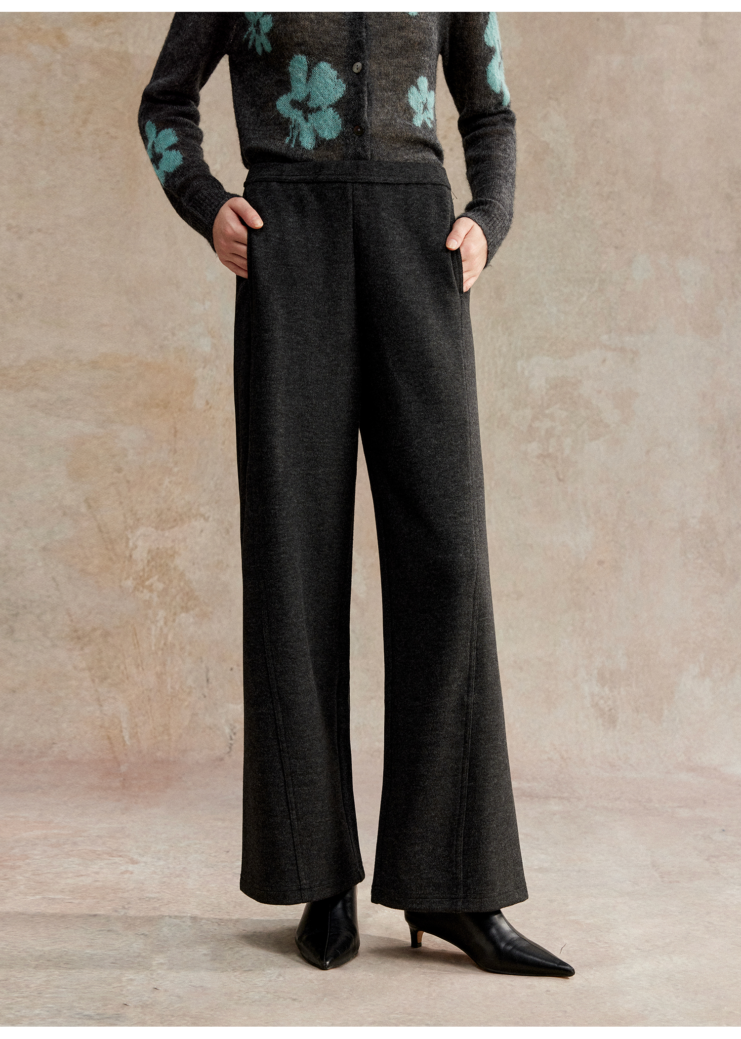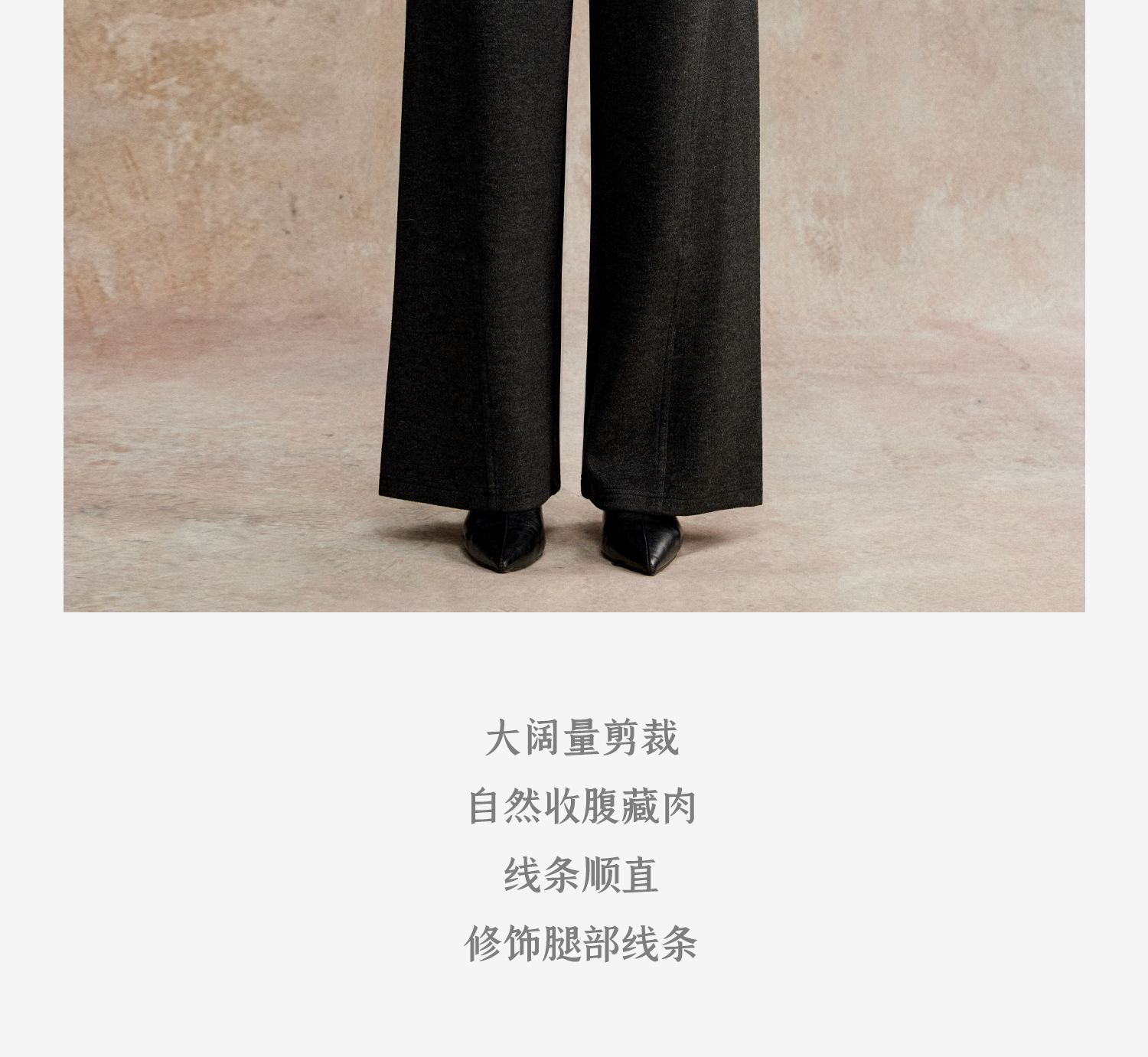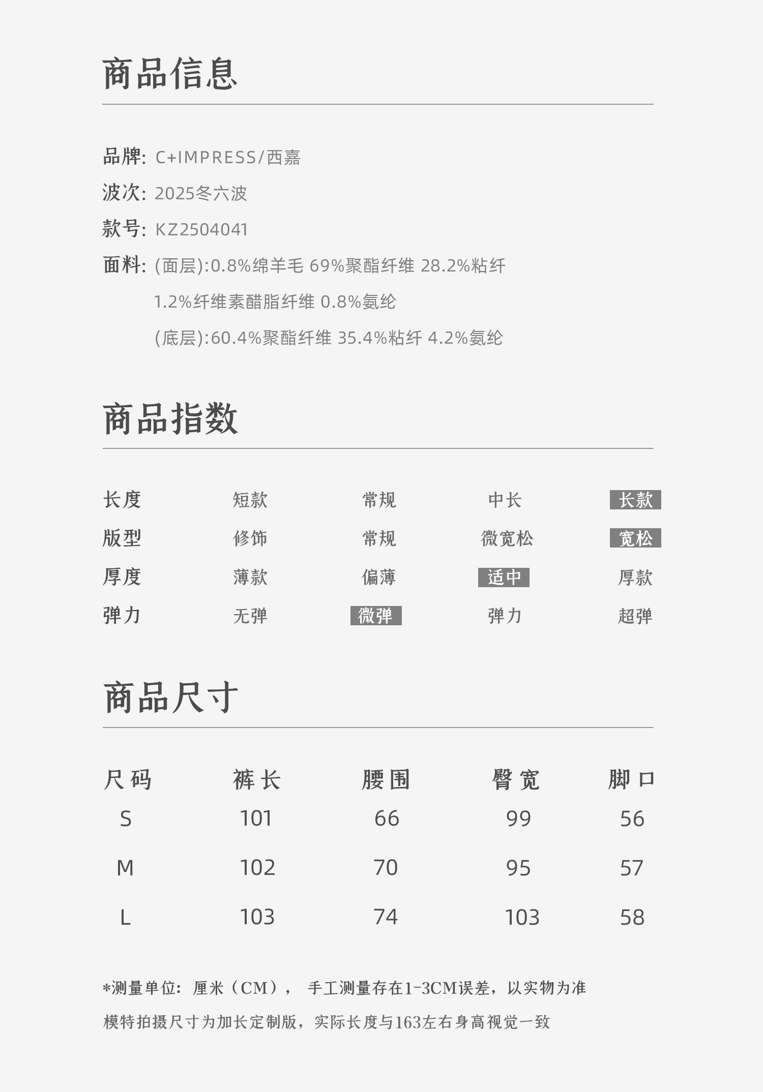 C+IMPRESS西嘉|纸片人窄腰绵羊毛阔腿裤女秋冬垂感及地毛呢直筒裤KZ2504041