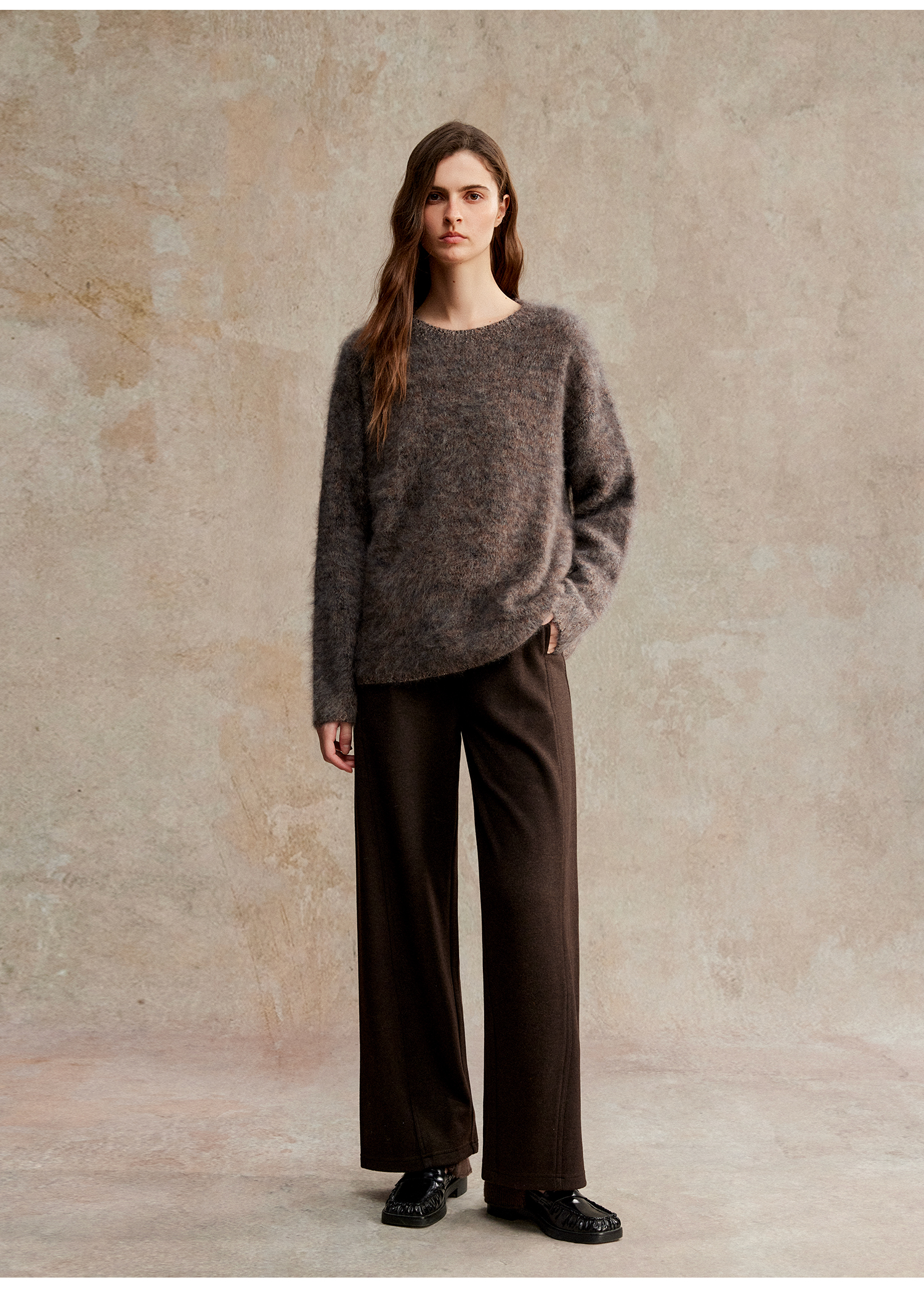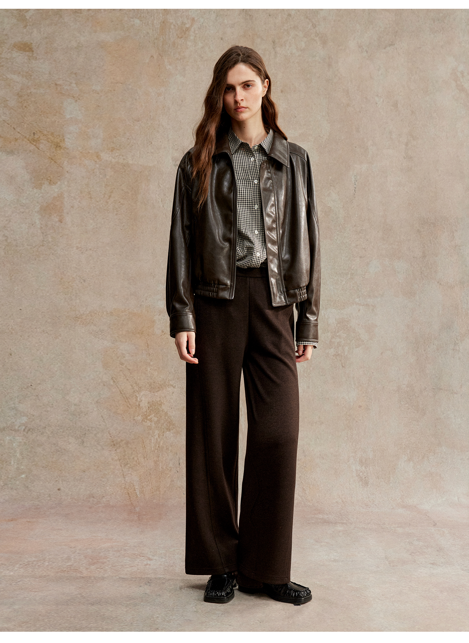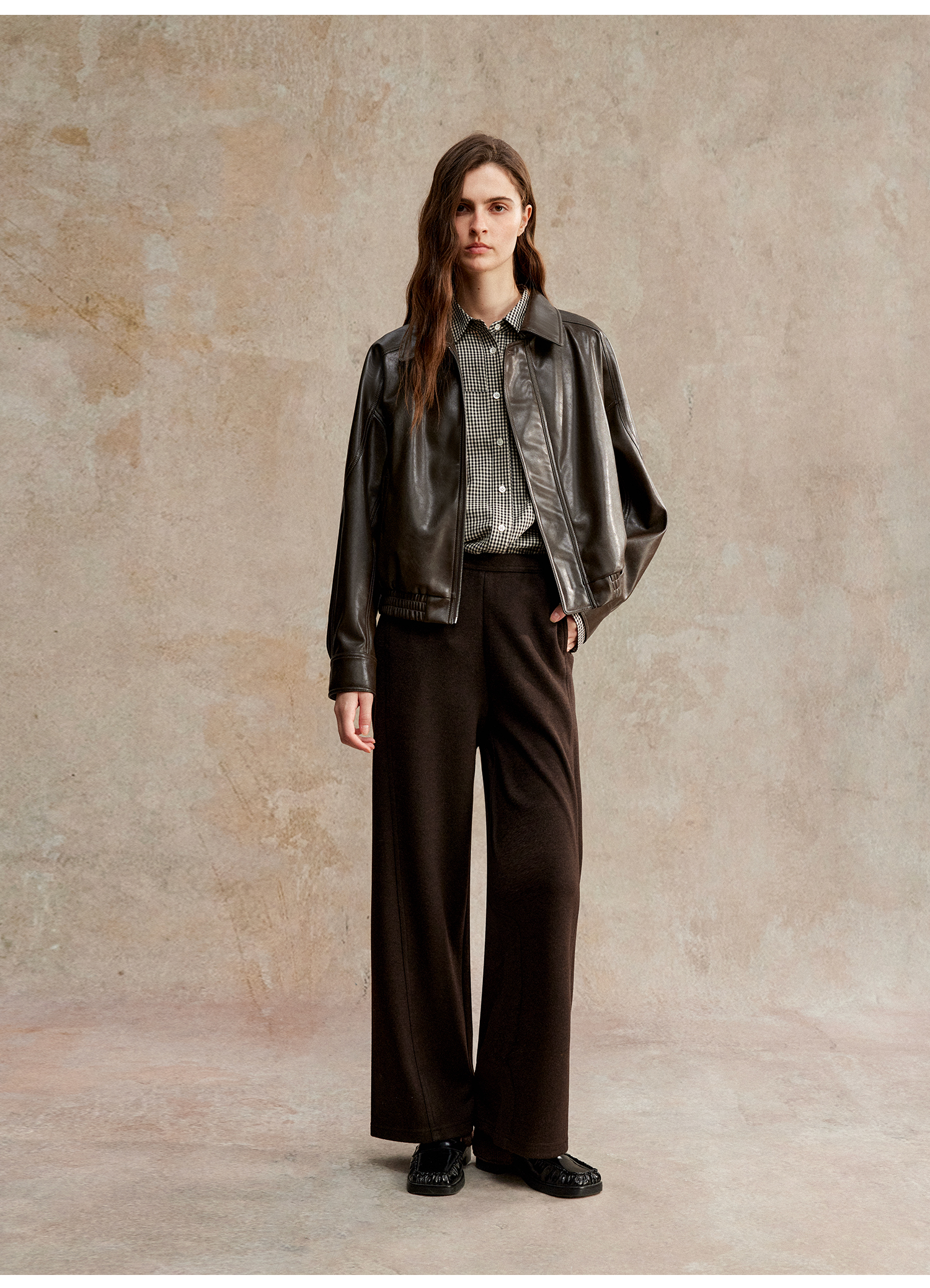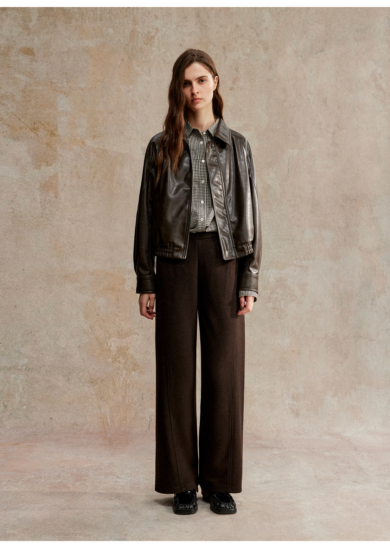 C+IMPRESS西嘉|纸片人窄腰绵羊毛阔腿裤女秋冬垂感及地毛呢直筒裤KZ2504041