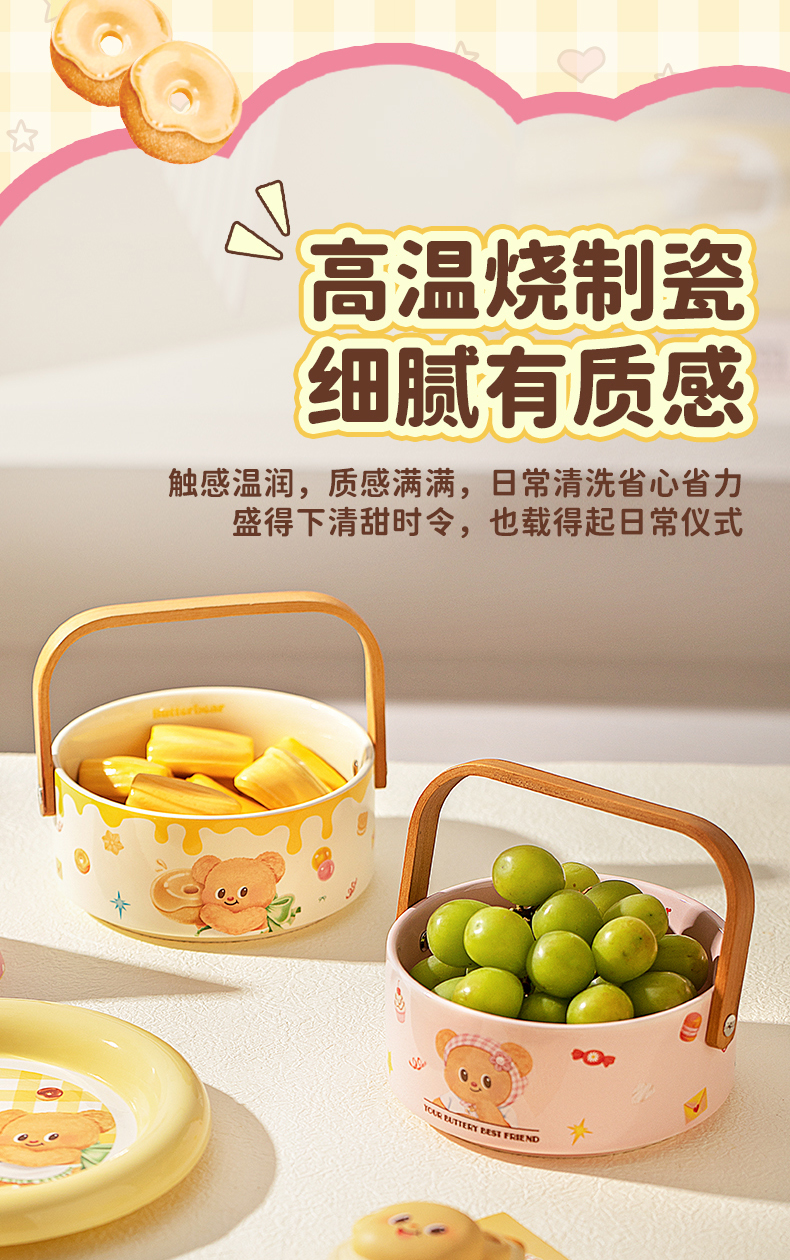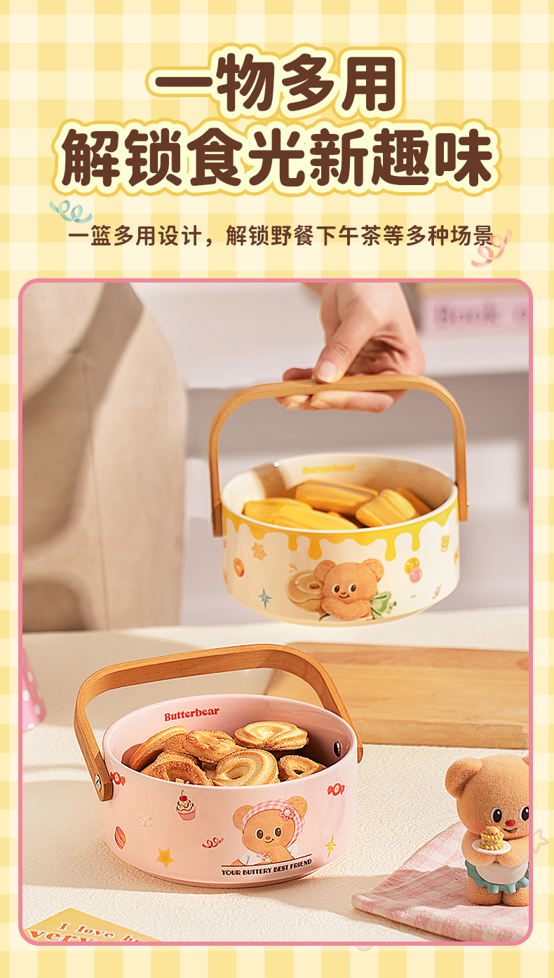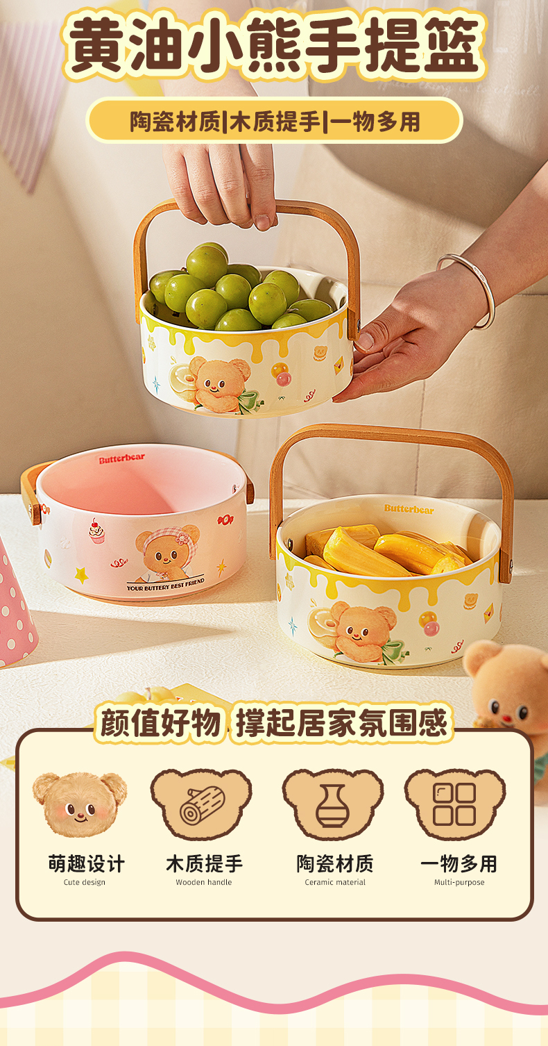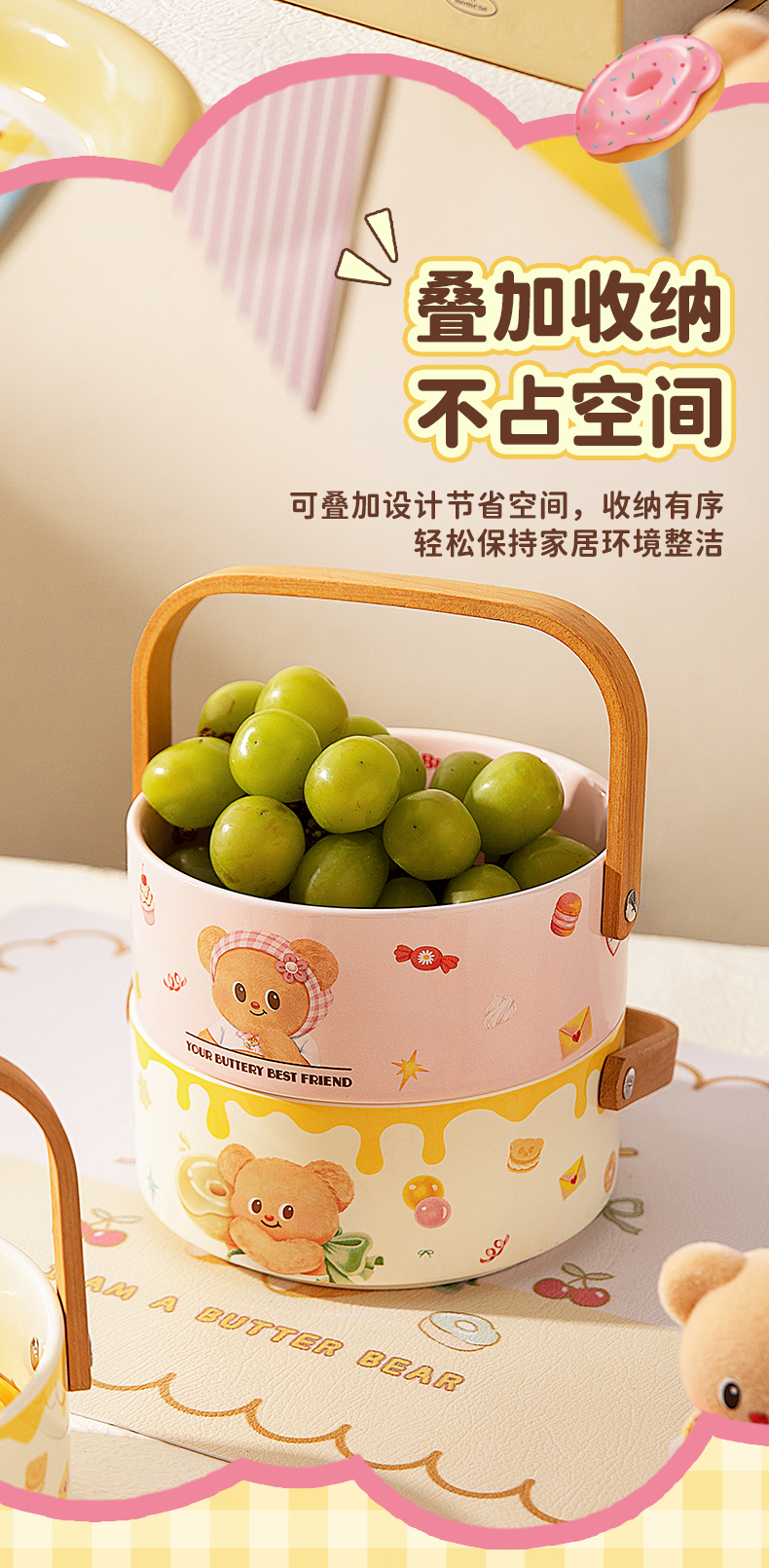 摩登主妇&黄油小熊水果盘客厅茶几家用干果盘2026新款水果篮