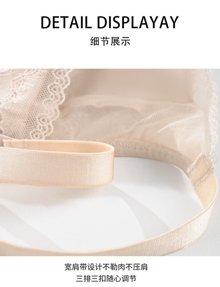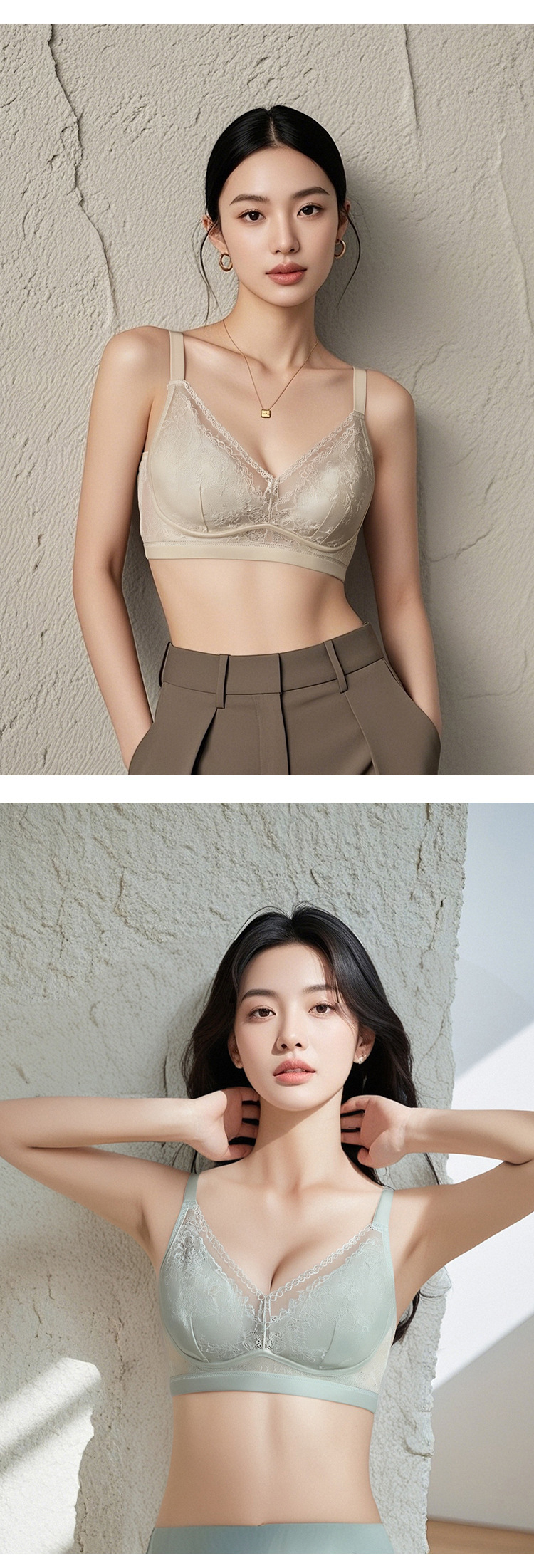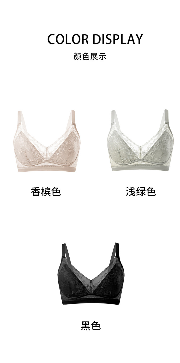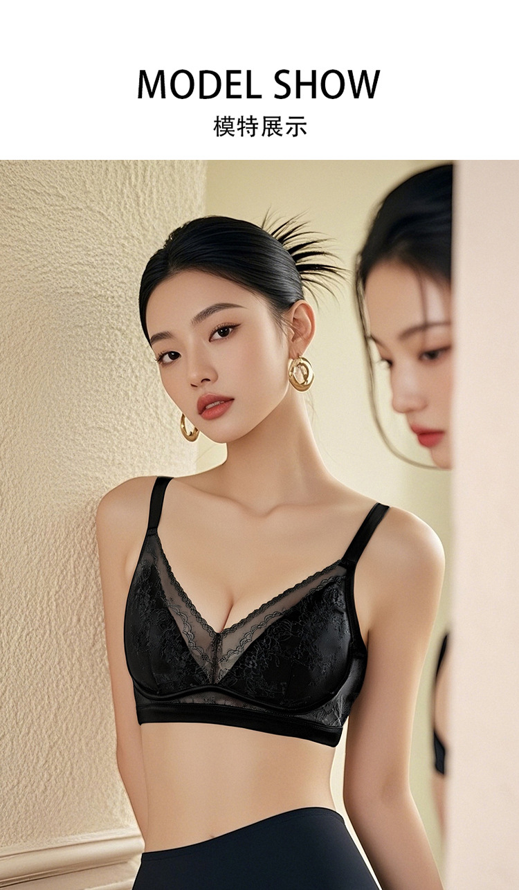 真丝无钢圈呼吸感内衣 桑蚕丝蕾丝花边小V领聚拢收副乳文胸TG02S264