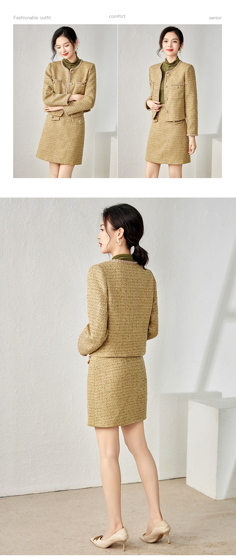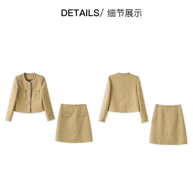 轻奢千金小香风,名媛粗花呢外套+短裙两件套装WLZD-23231403