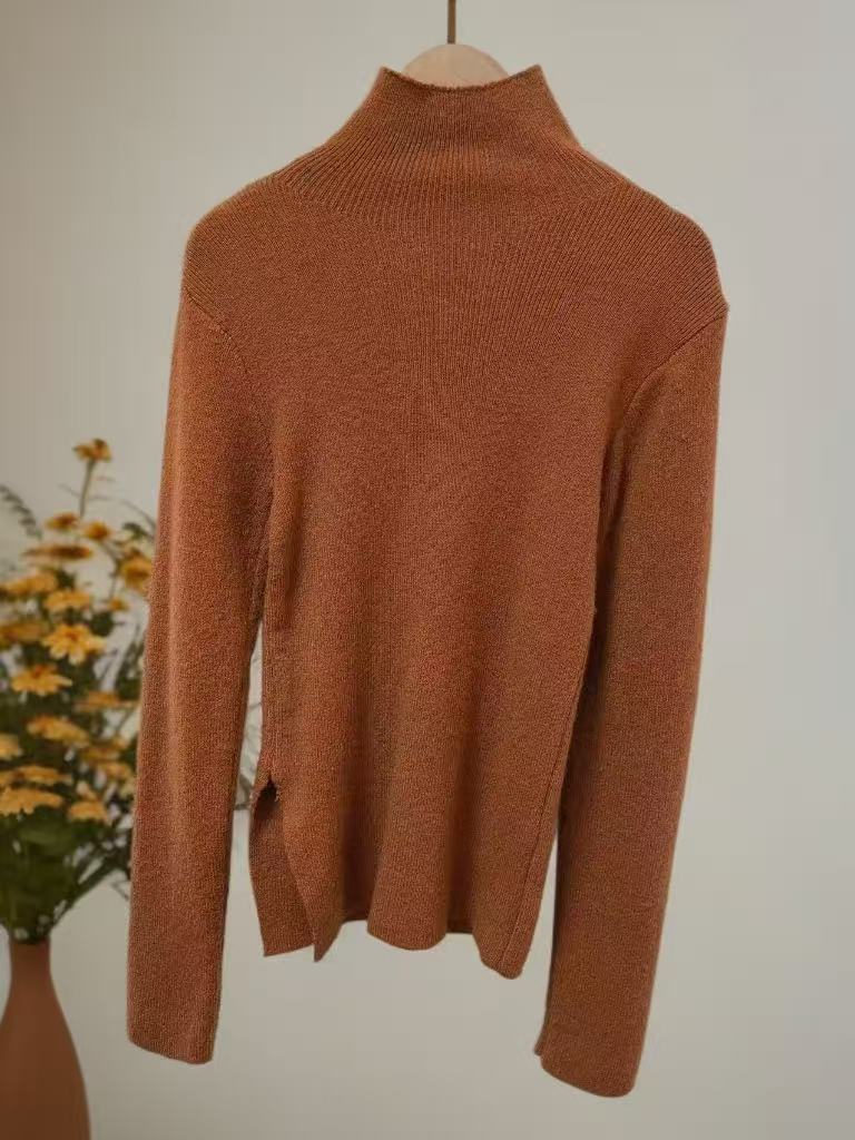 【超值特卖】高领侧开叉针织修身毛衣-喜出