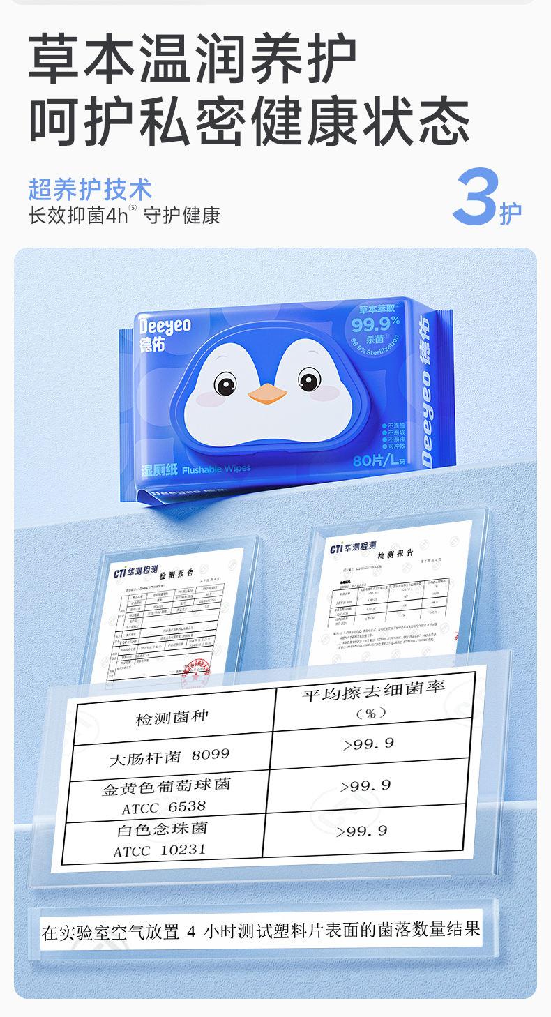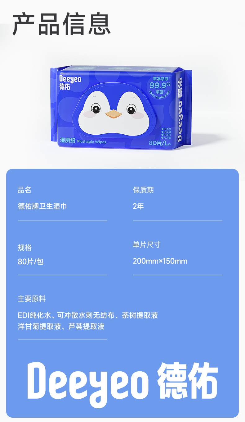 【GX】德佑湿厕纸加量家庭装全新升级款 80抽*3包/4包/6包