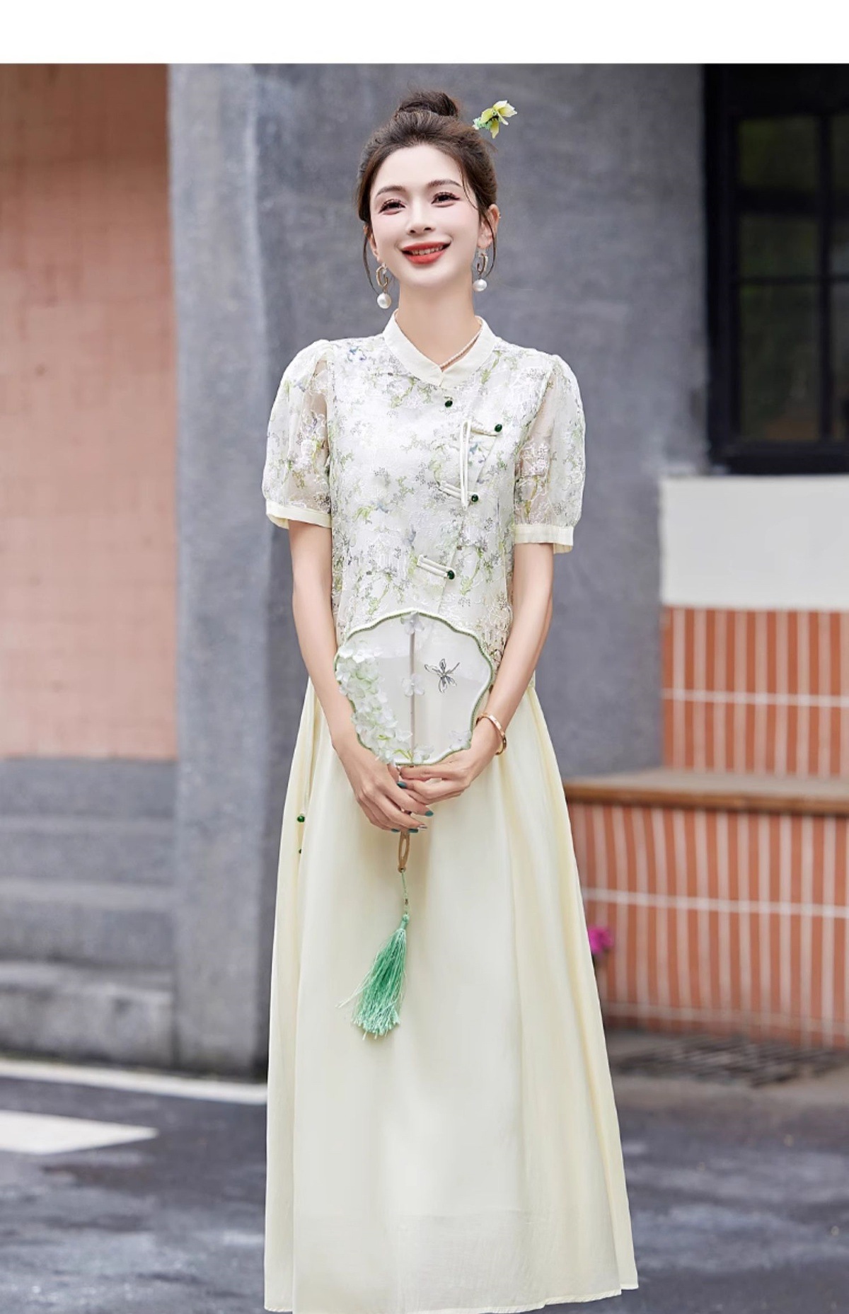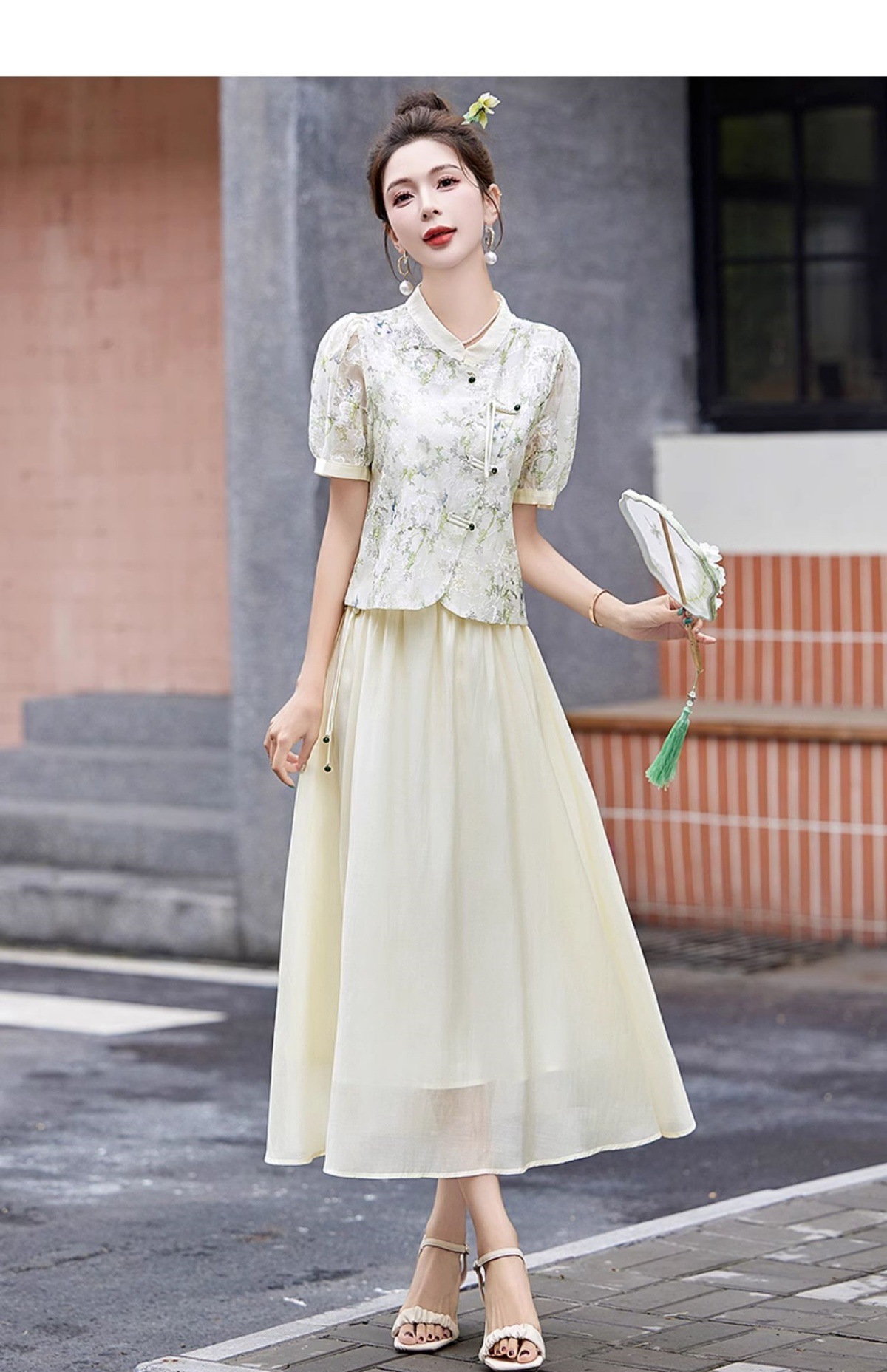 新中式国风半身裙套装2025夏季新款流苏碎花短袖上衣裙子两件套YWY8938