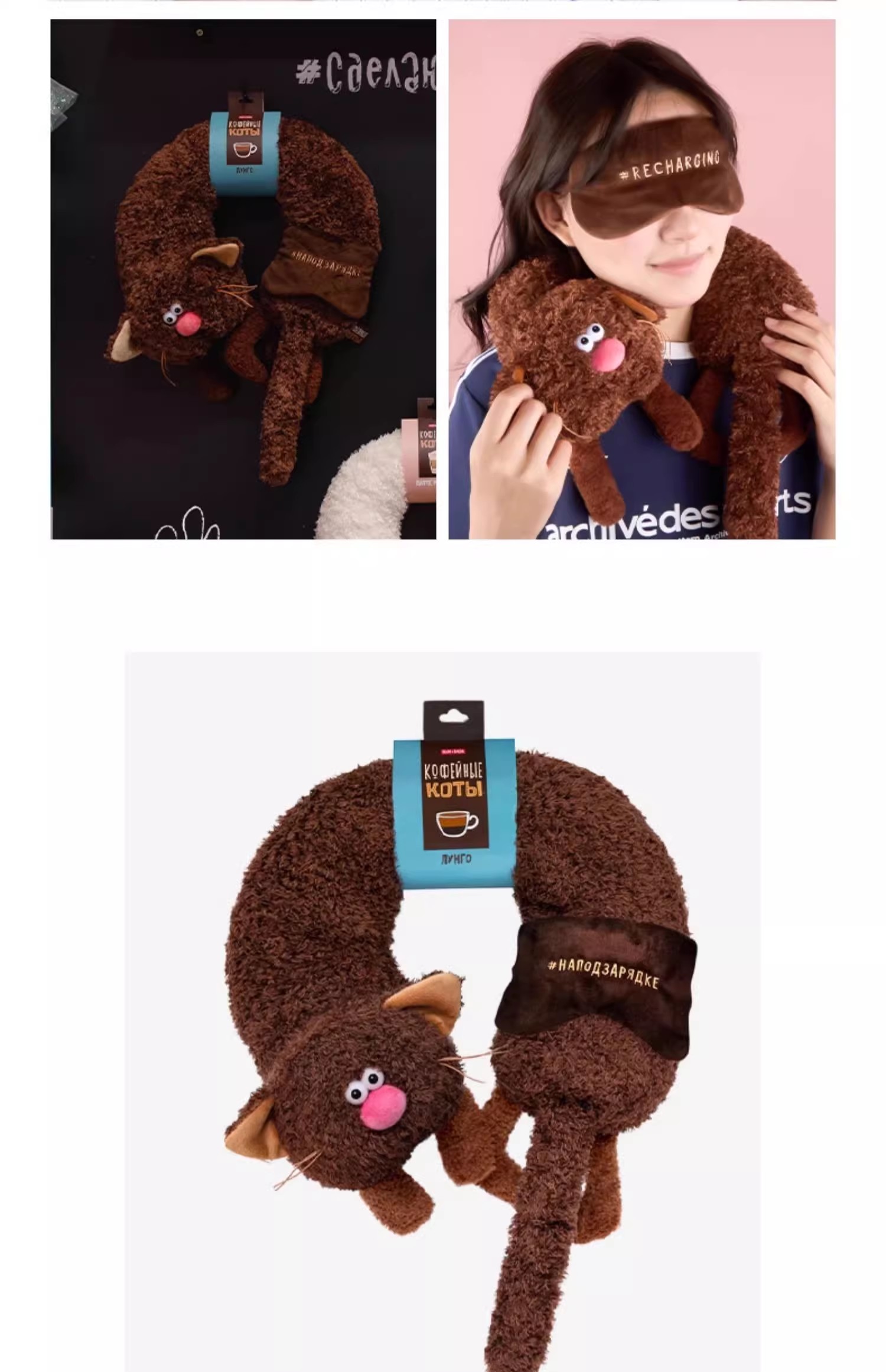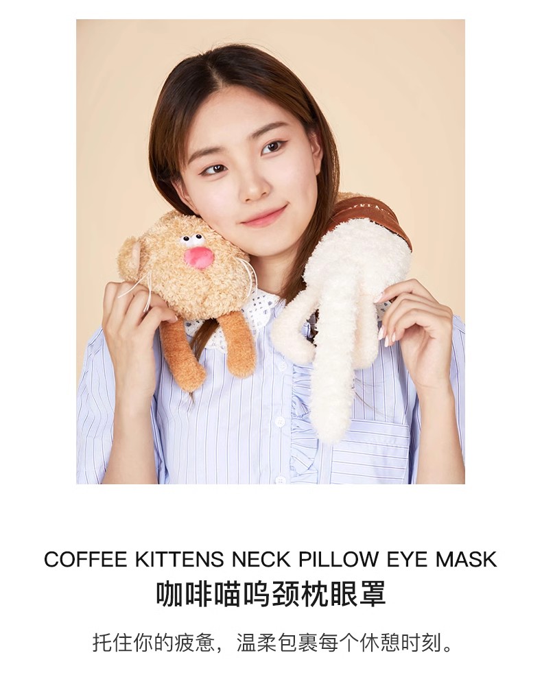 咖啡喵呜“冰卡布奇诺”旅行枕头和睡眠眼罩