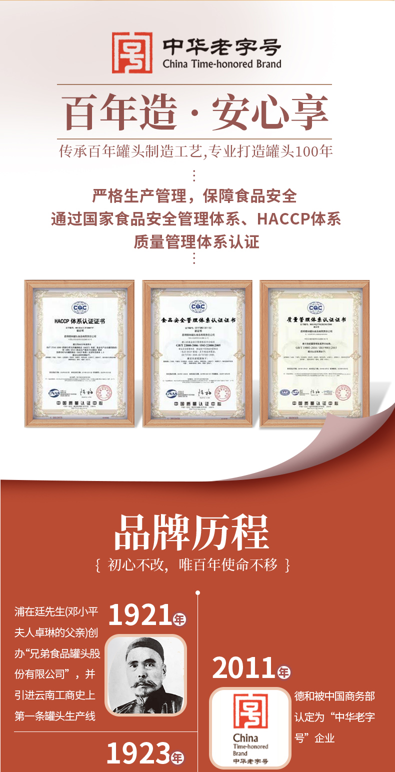 昆明德和罐头厂是中国最早开始生产制造罐头的企业之一,至今已有九十八年的悠久历史,现已形成以罐头食品为主,腌腊制品、糕点月饼等为辅的云南省规模最大和最具影响力综合食品制造企业,奠定了云南罐头行业的基石。