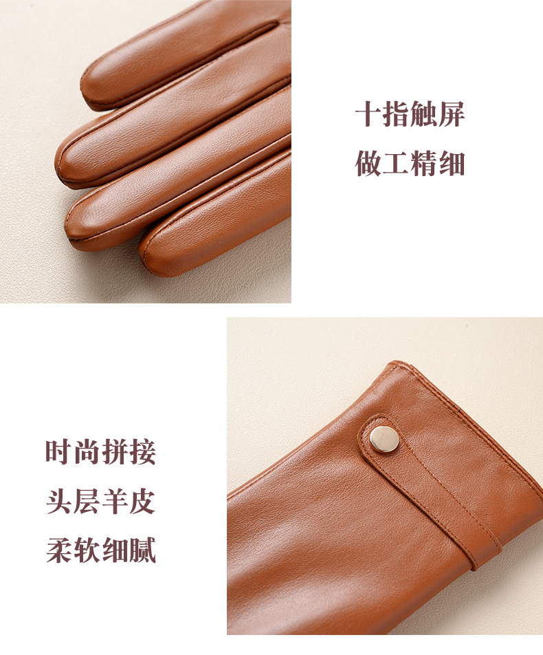 雀说 小羊皮真皮手套女士冬季加绒加厚触屏保暖手套8090 商品图4