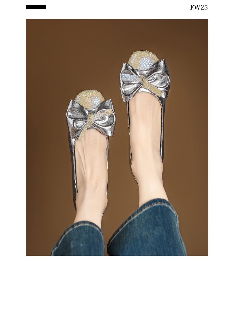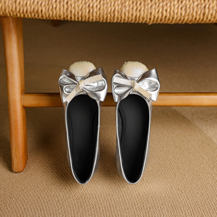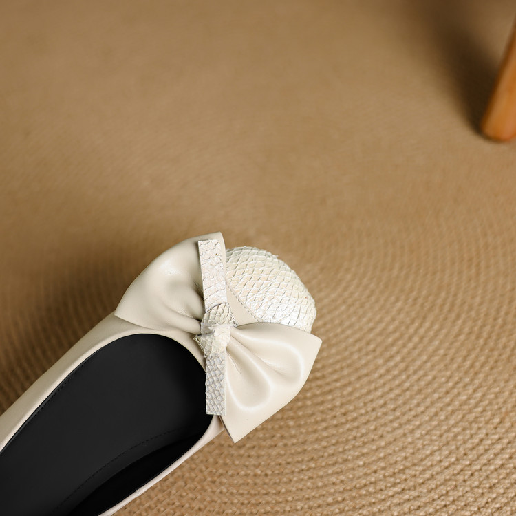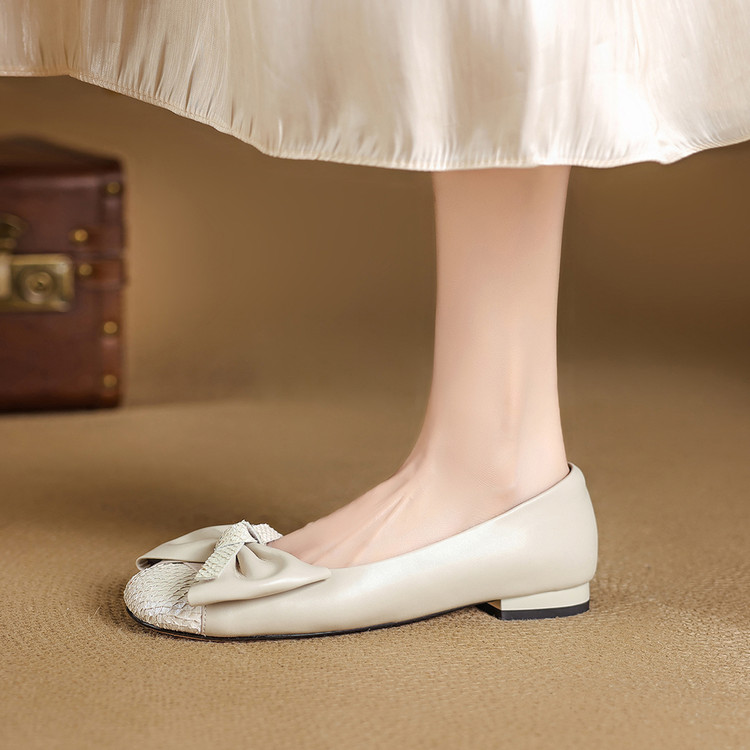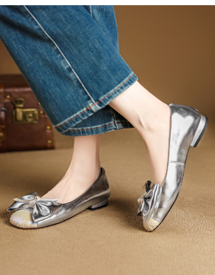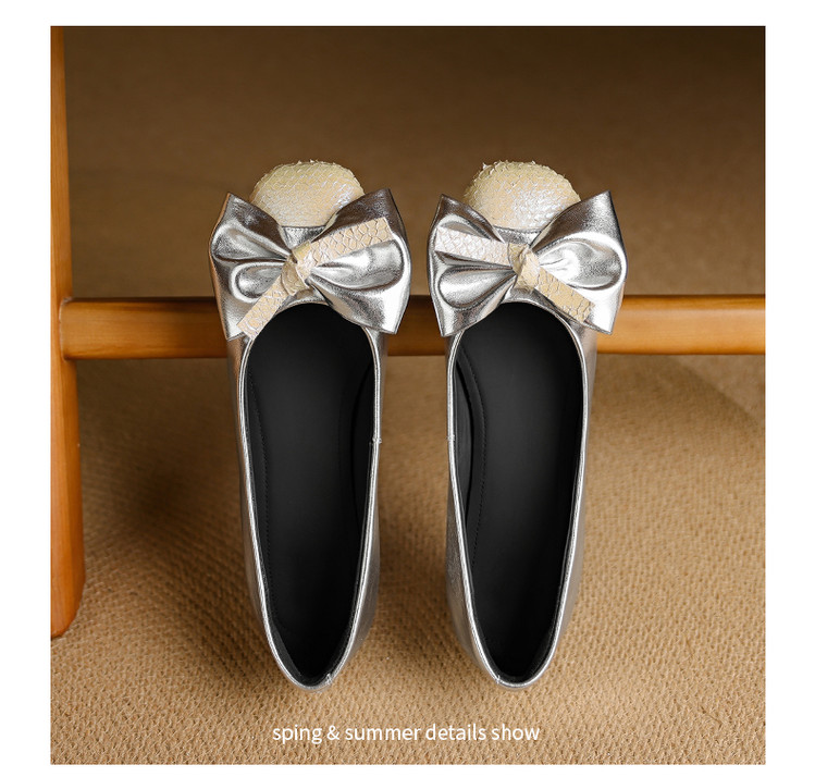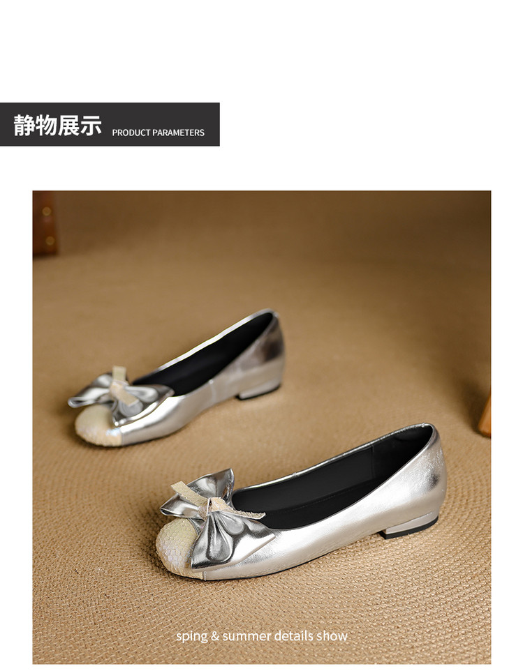 【预售5天】春秋季幻彩鱼皮蝴蝶结方头单鞋女浅口低跟平底鞋女软底舒适不累脚NJMK&K1705
