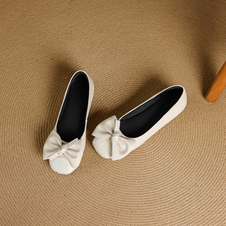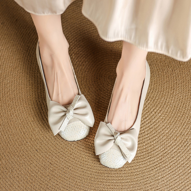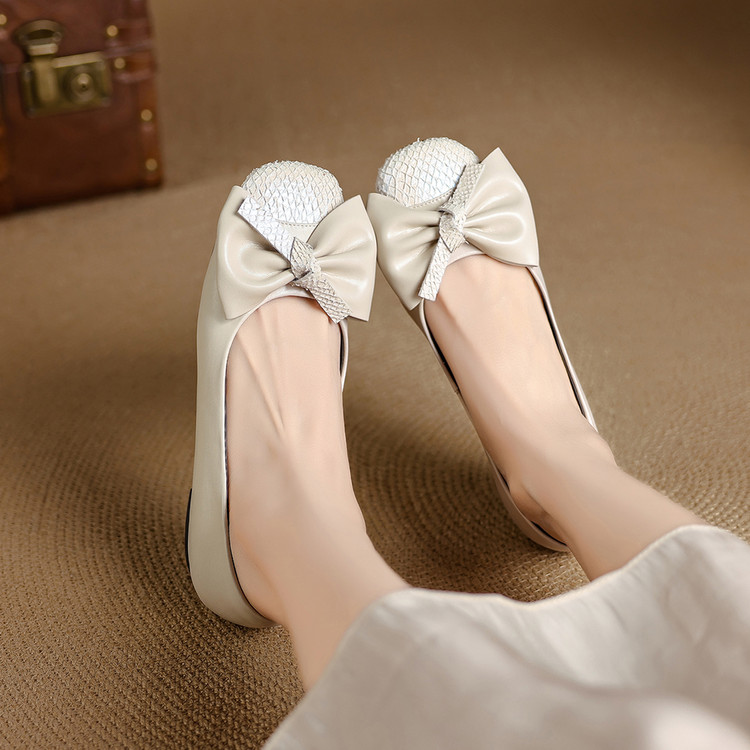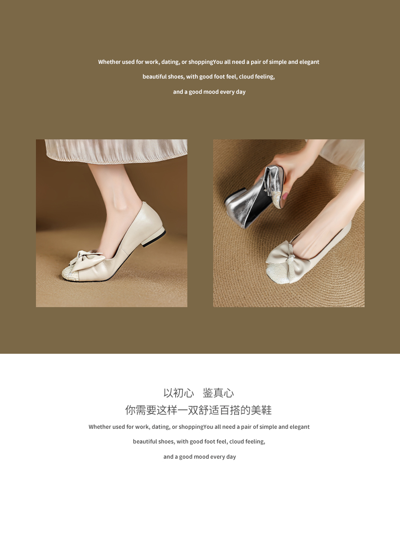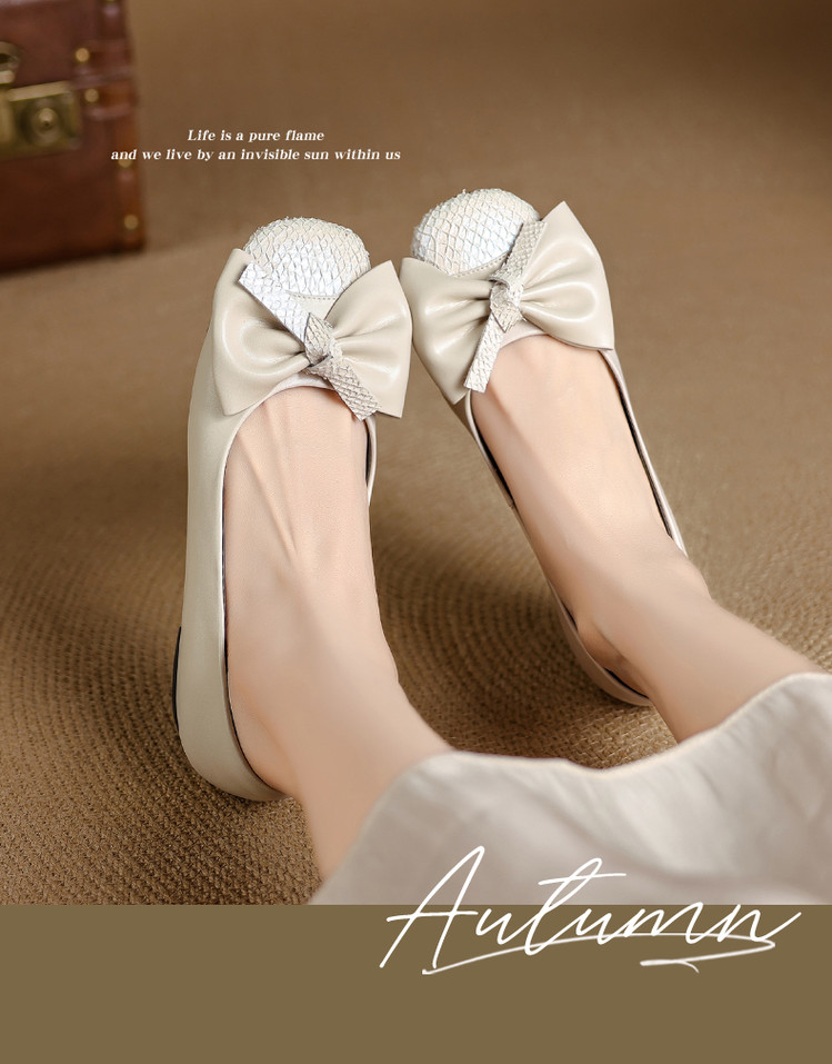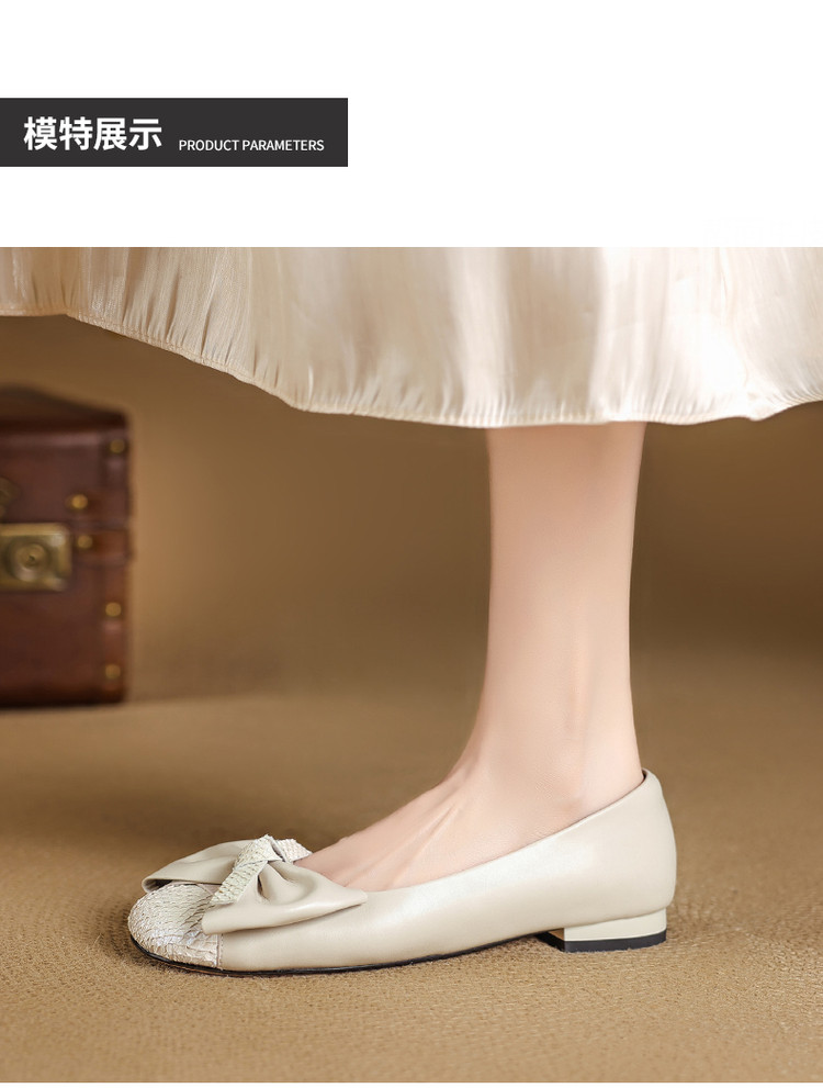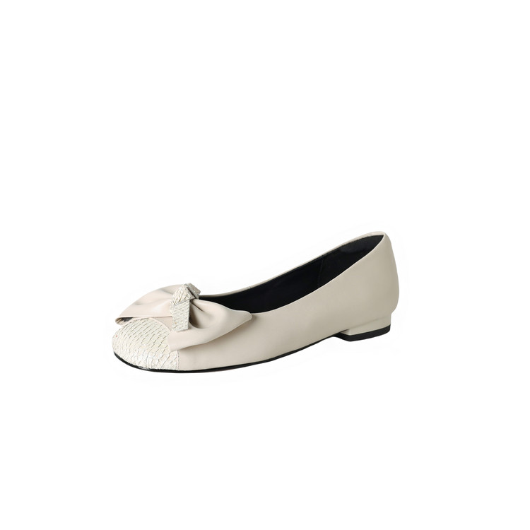 【预售5天】春秋季幻彩鱼皮蝴蝶结方头单鞋女浅口低跟平底鞋女软底舒适不累脚NJMK&K1705