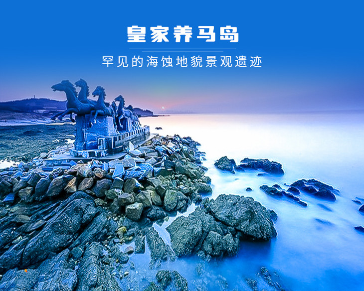 养马岛相传秦始皇东巡时在此饲养御马,并封为“皇家养马岛”,故而得此名。岛上有天马广场、赛马场、海滨浴场、海上世界、御笔苑等娱乐景点。大家可以自行租自行车/乘坐岛上摆渡车游览。