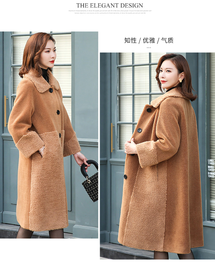 LLJR-XCDD308冬季新款时尚拼接羊羔毛大衣休闲装