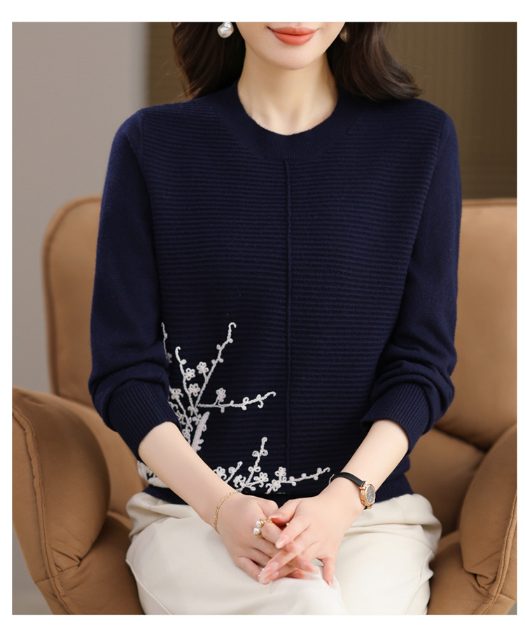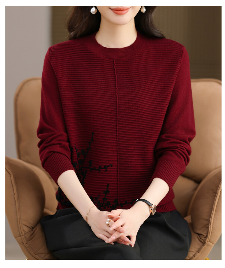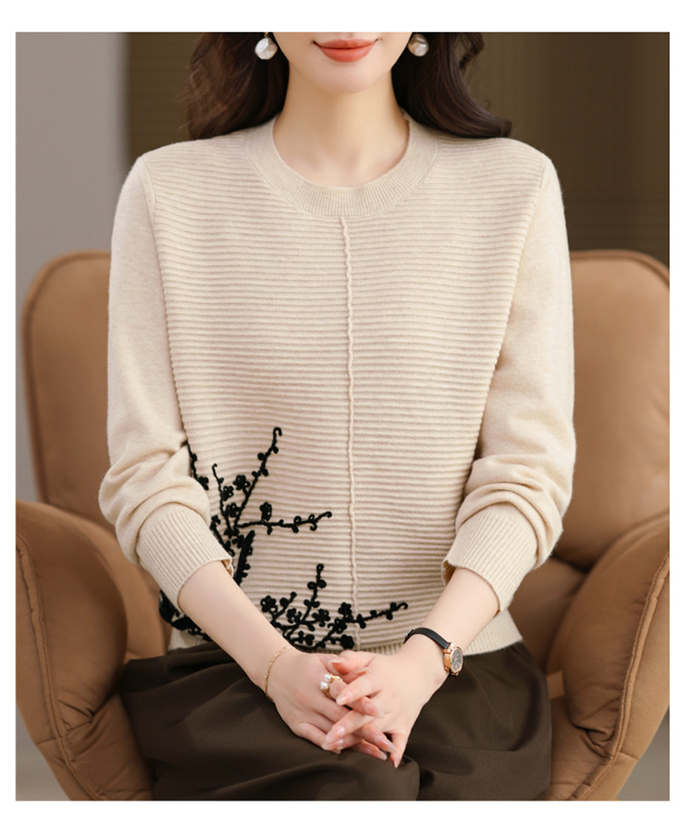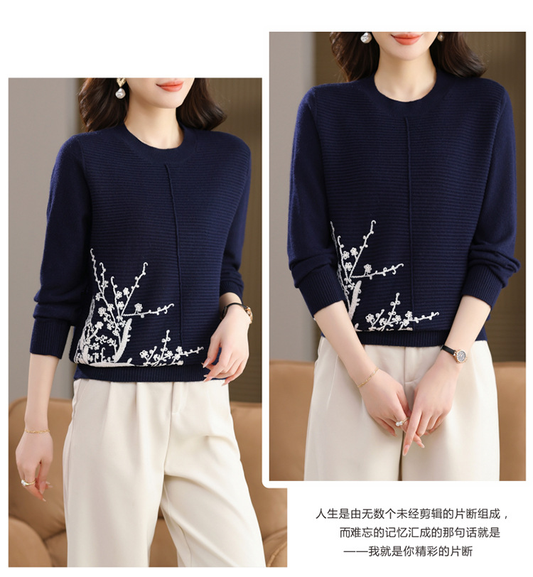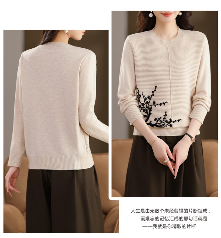 FCY SJ25825圆领长袖针织衫宽松休闲上衣洋气毛衣 商品图0