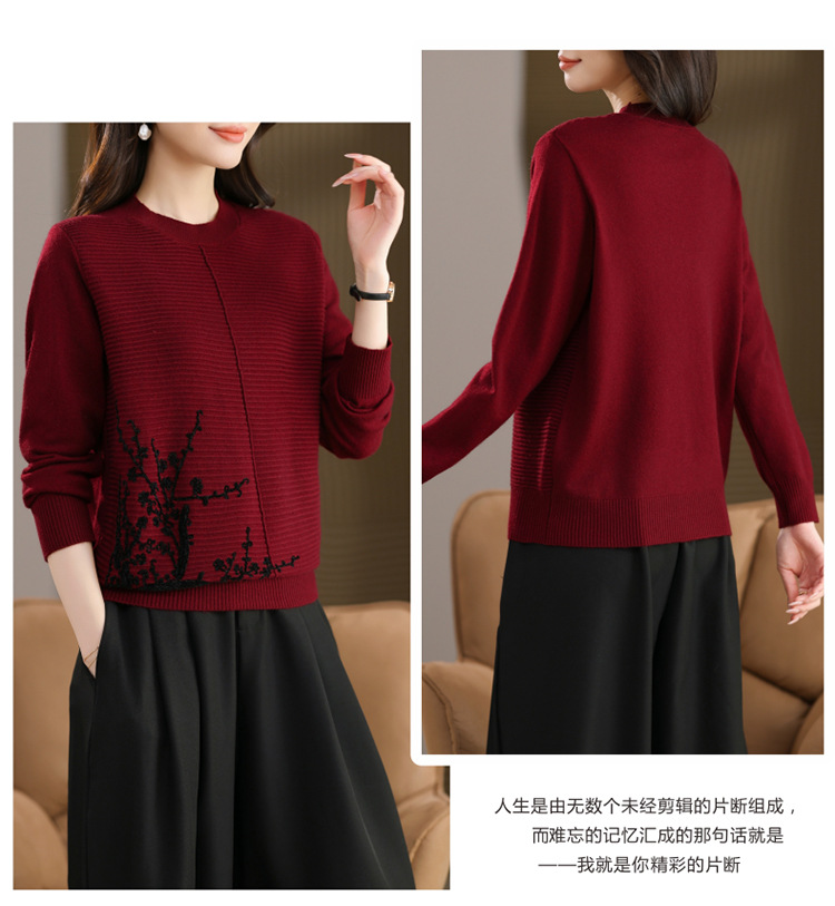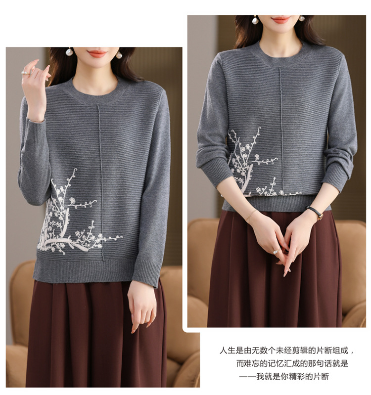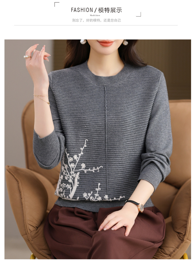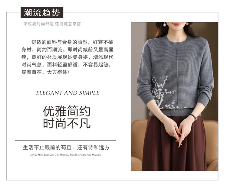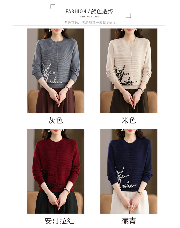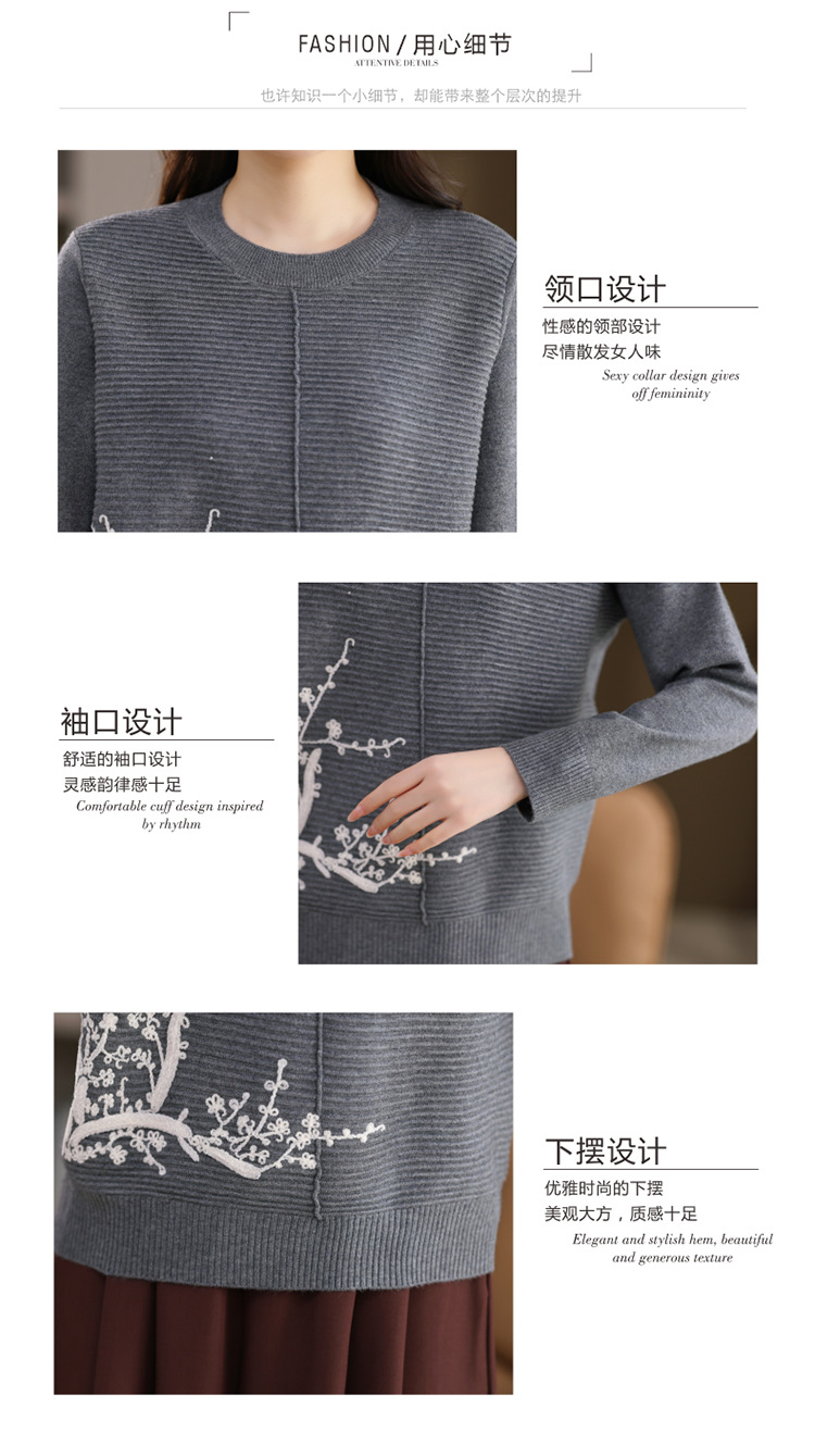 FCY SJ25825圆领长袖针织衫宽松休闲上衣洋气毛衣 商品图4