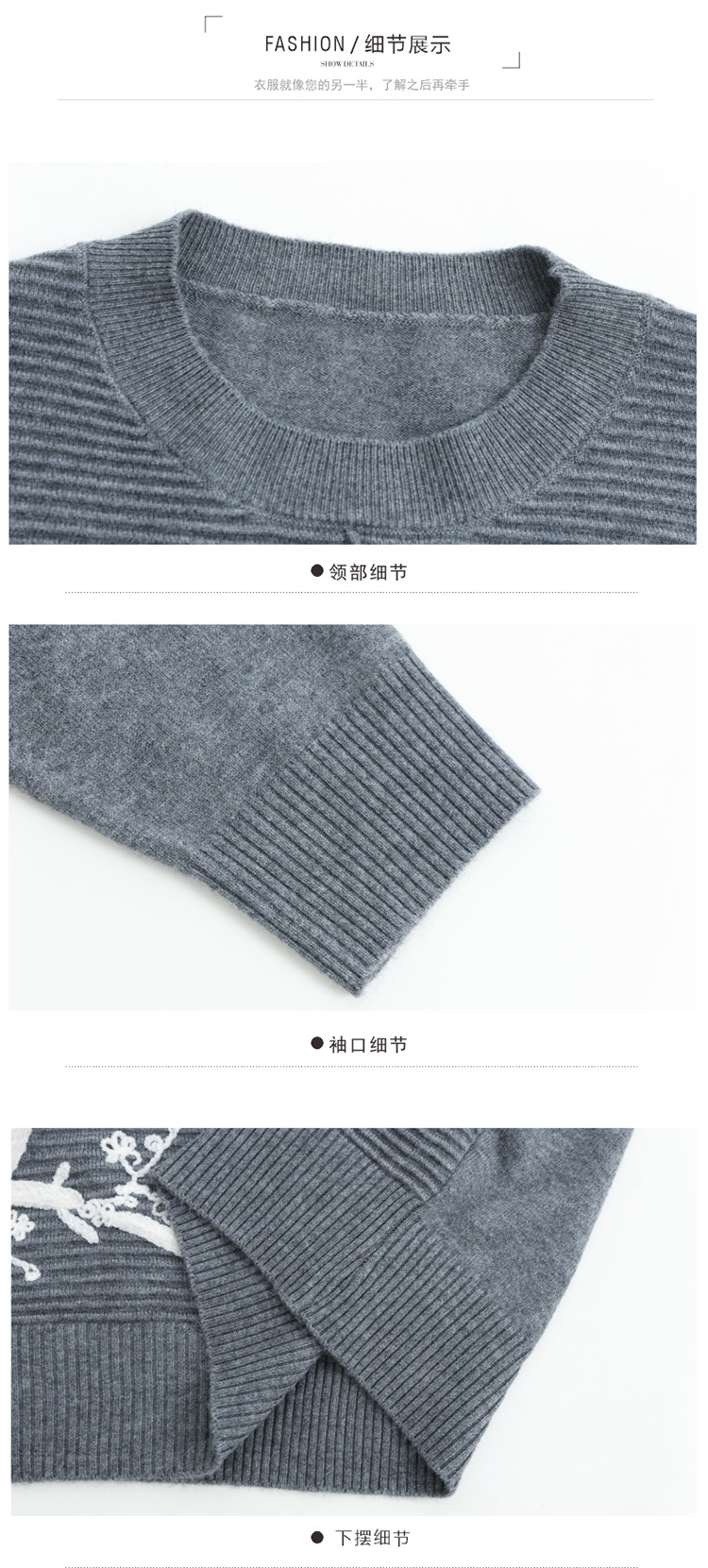 FCY SJ25825圆领长袖针织衫宽松休闲上衣洋气毛衣 商品图3