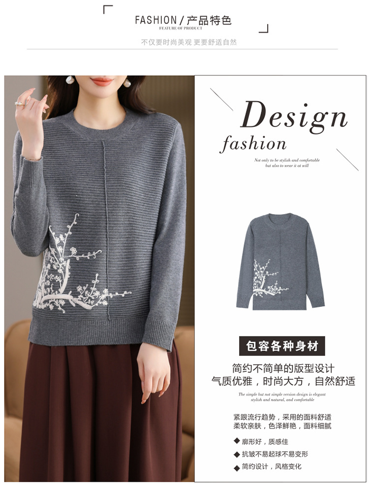 FCY SJ25825圆领长袖针织衫宽松休闲上衣洋气毛衣 商品图2