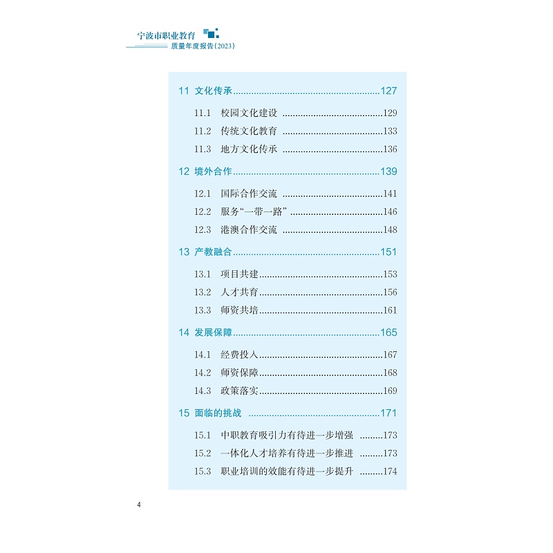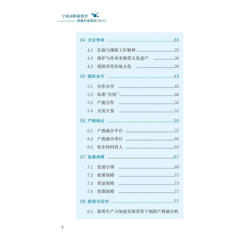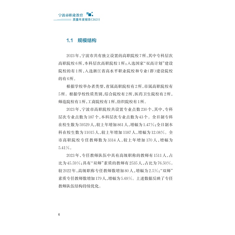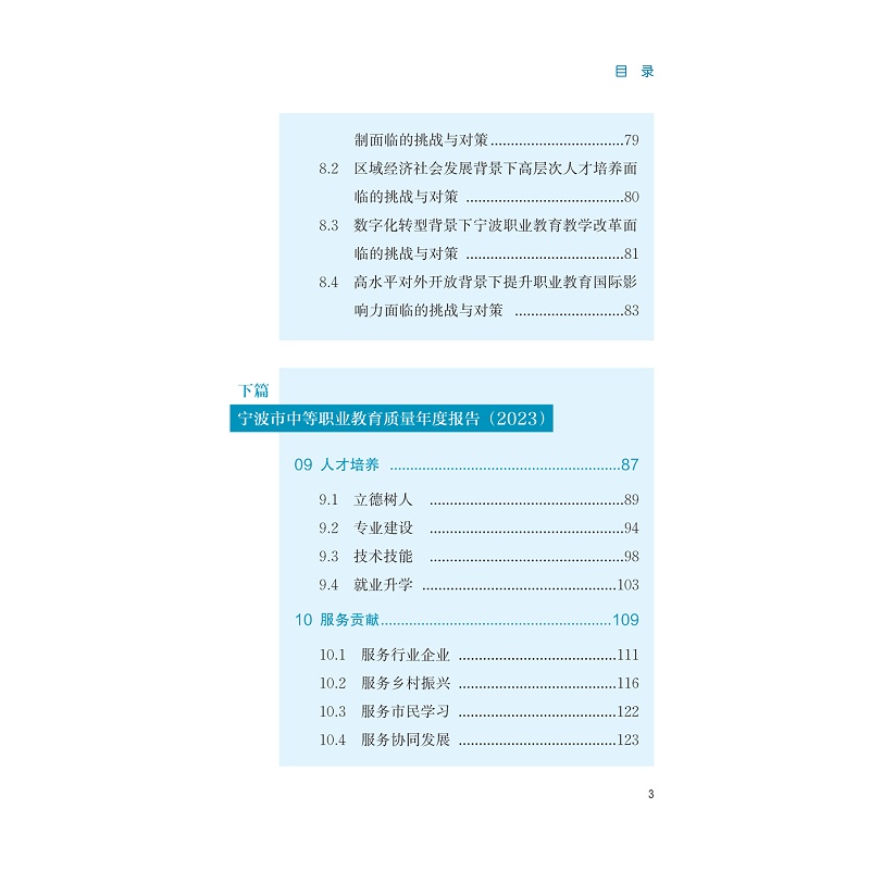 本书以宁波市高等职业学校、中等职业学校2023年度教育质量报告为主要依据,对宁波市职业教育总体情况与发展特色进行系统梳理与总结,包含人才培养、服务贡献、文化传承、国际合作、产教融合、发展保障以及面临的挑战等内容,呈现了宁波职业教育。对宁波市推进职业教育改革发展的政策措施、经验做法以及在服务人的全面发展、服务经济社会发展和服务国家发展战略等多方面取得的成就进行直观呈现,记录宁波职业教育改革发展历程,以期为社会各界了解宁波职业教育发展状况提供参考。