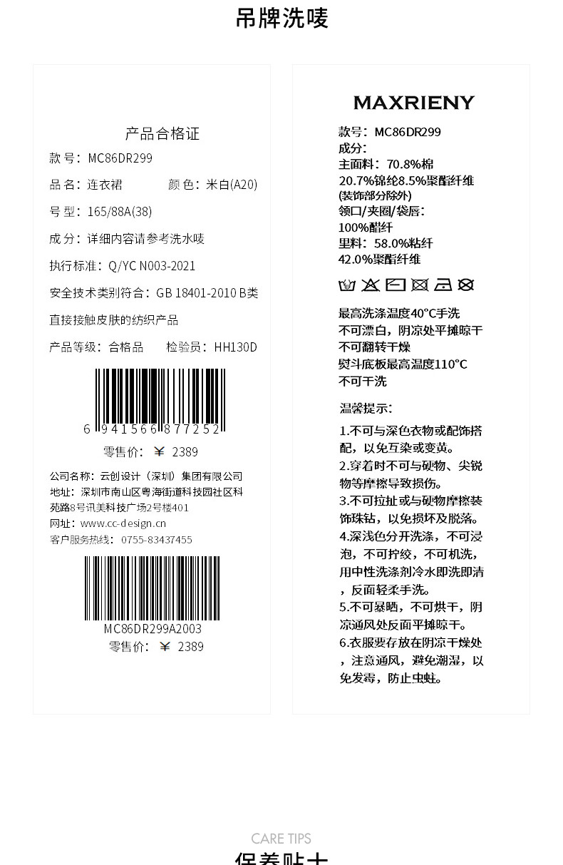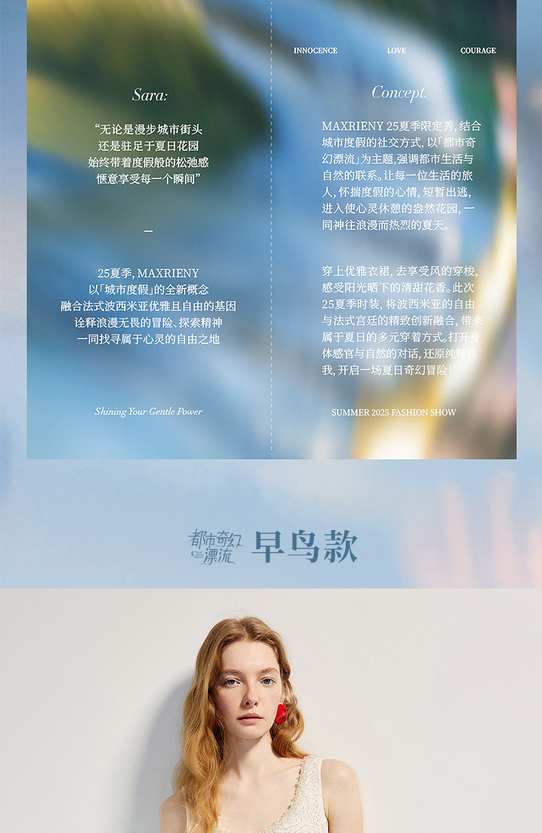 【商场同款】MAXRIENY精致浪漫吊带连衣裙法式度假印花蕾丝裙25夏(货号:MC86DR299)