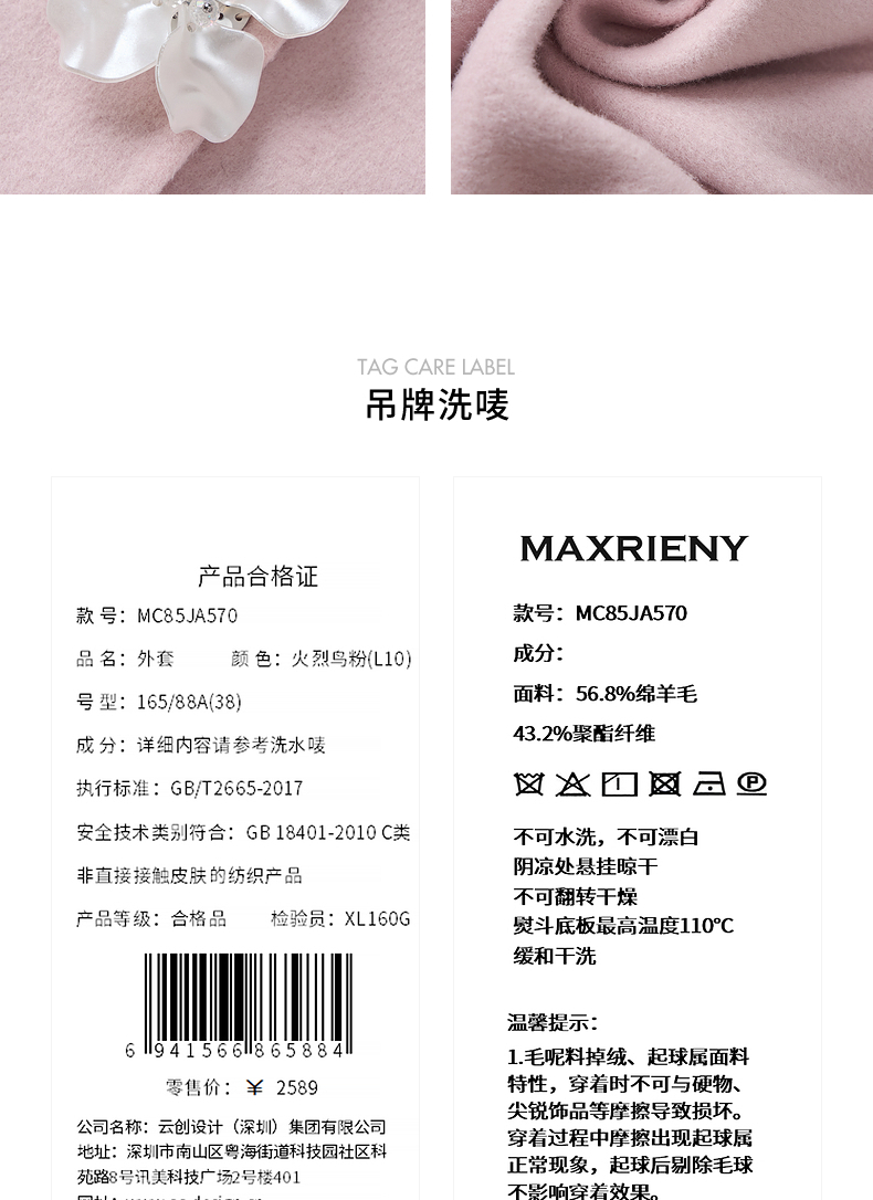 玛克门店发货:MAXRIENY宫廷浪漫毛呢外套(货号:MC85JA570)