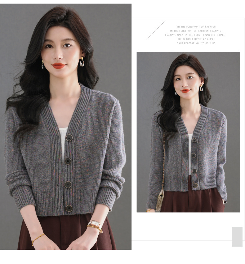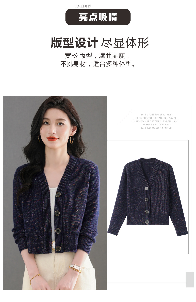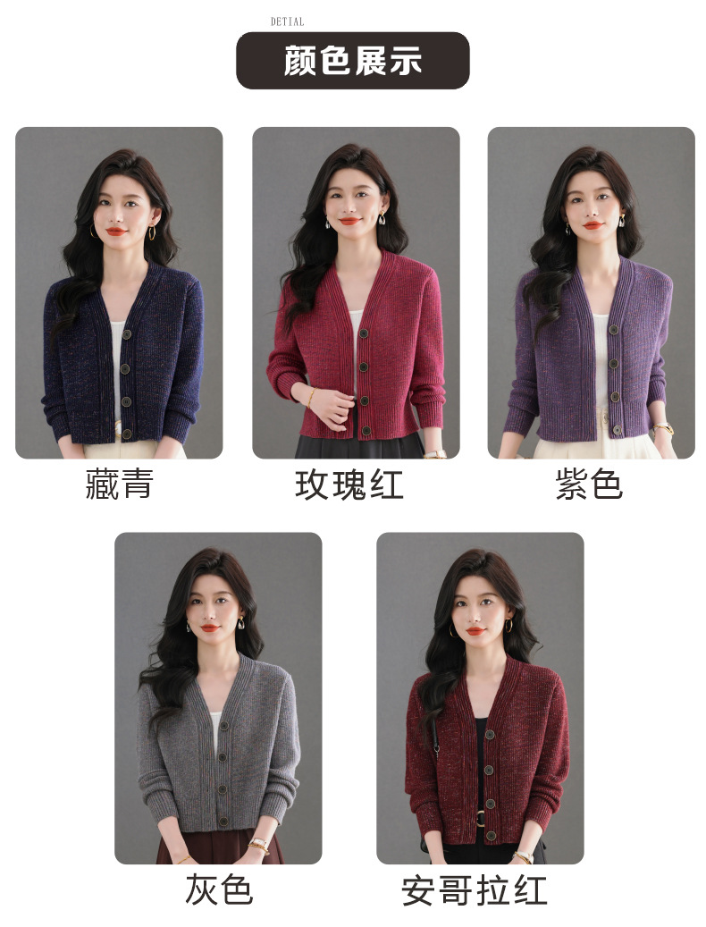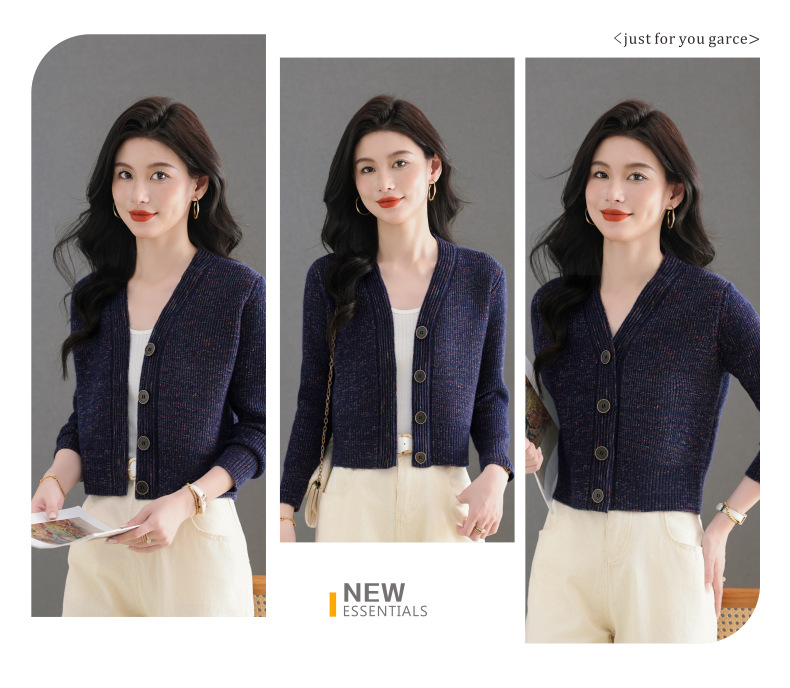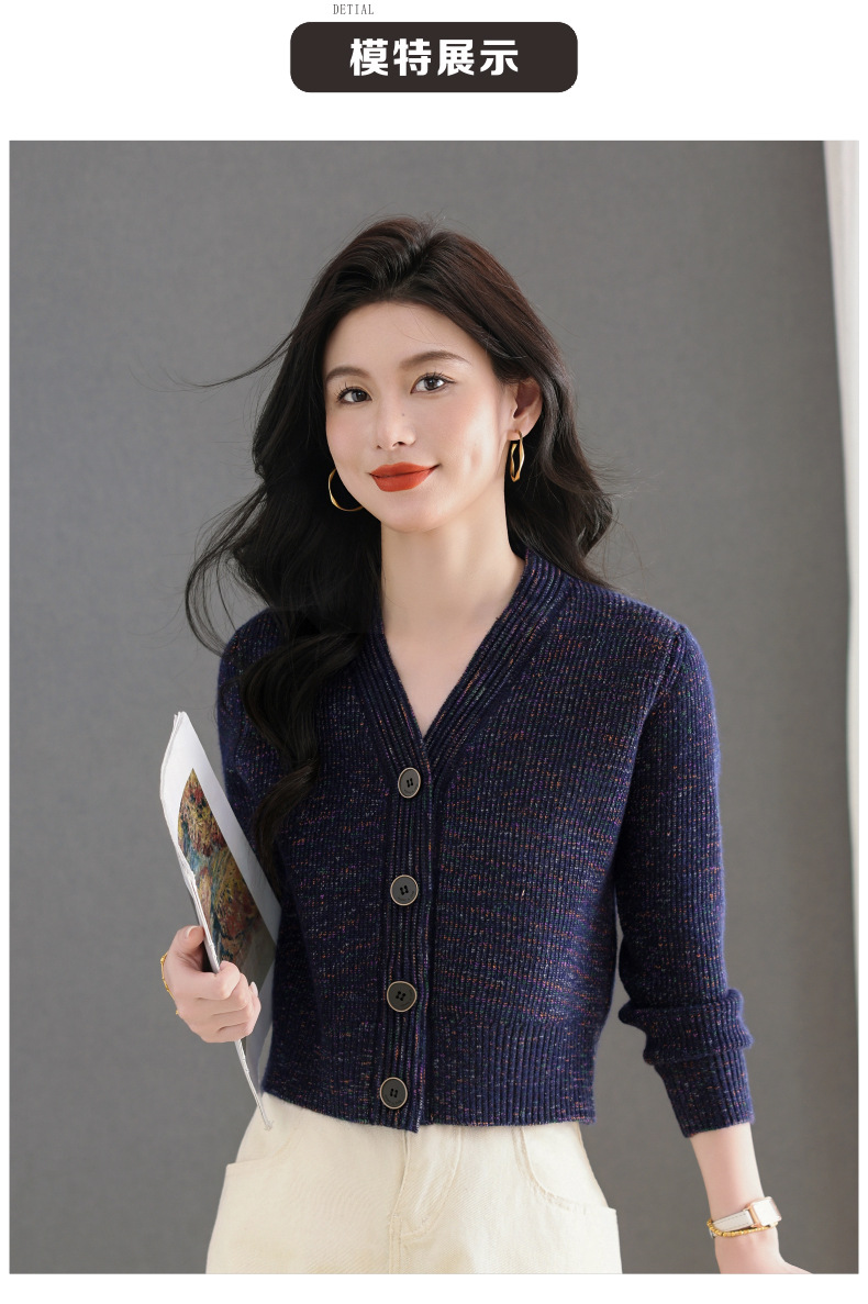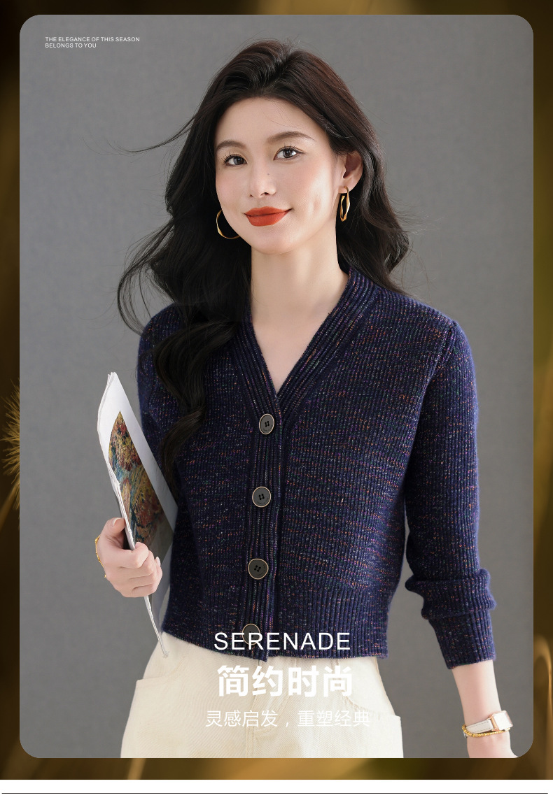 CC气质V领针织开衫女 2025春秋新款简约单排扣修身百搭显高短款上衣