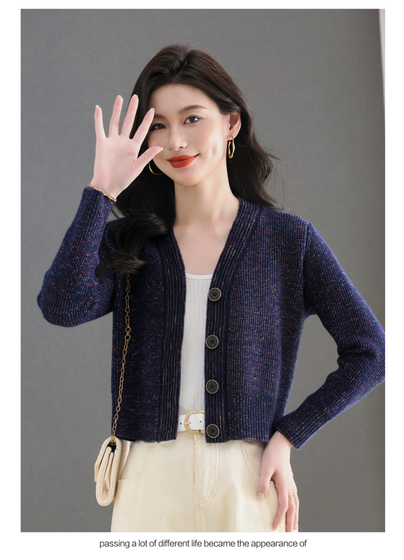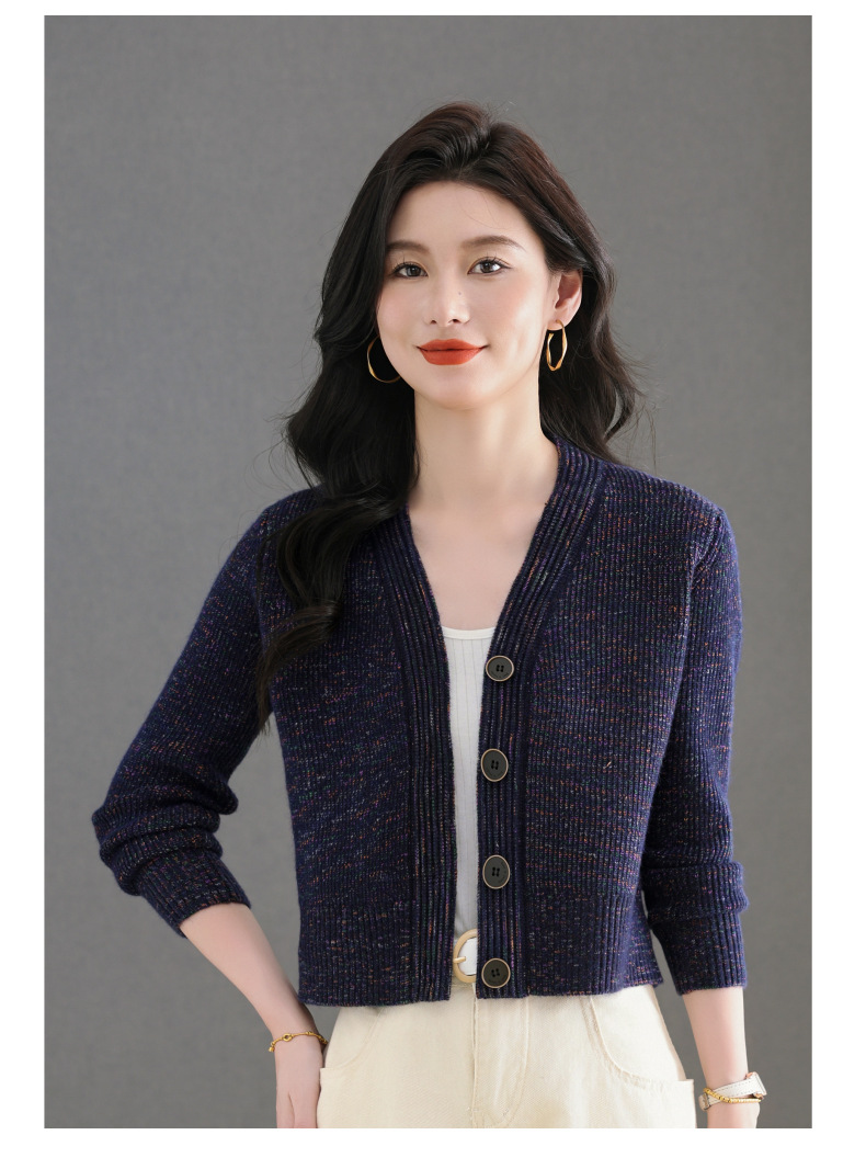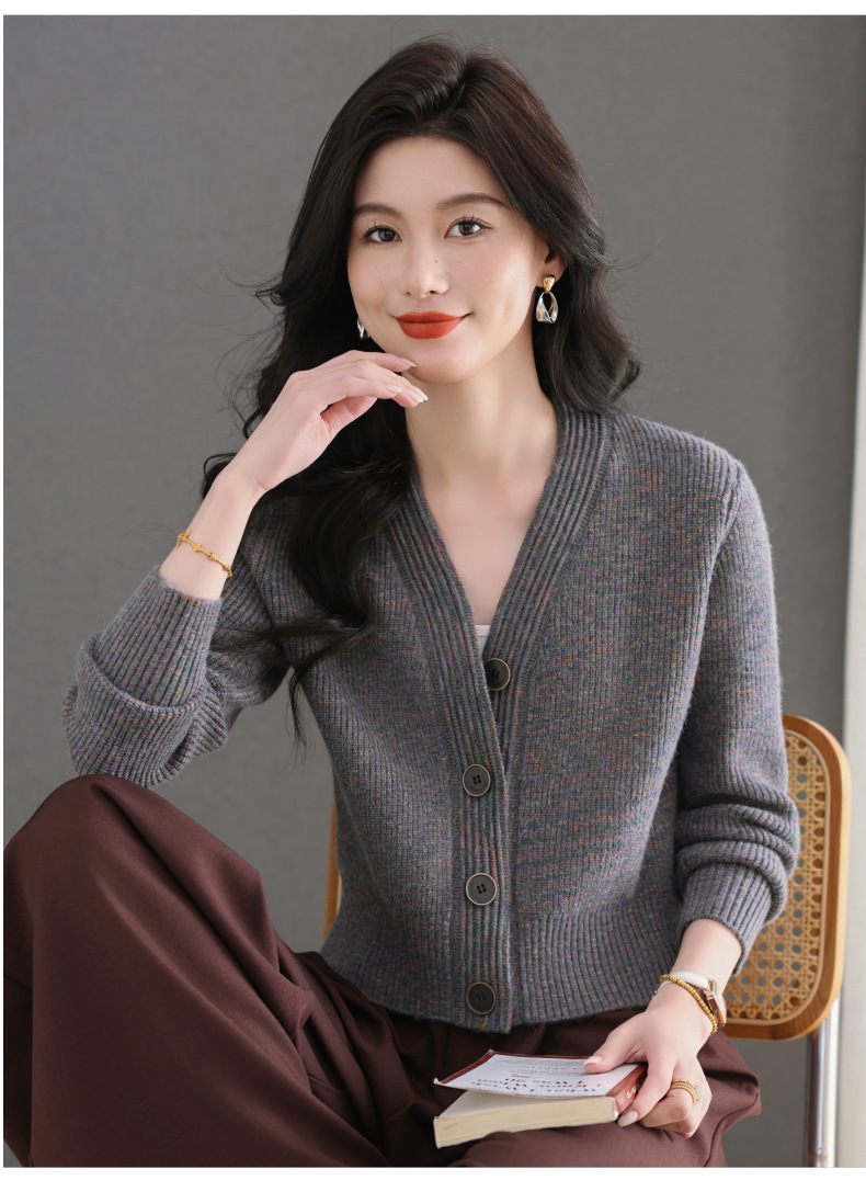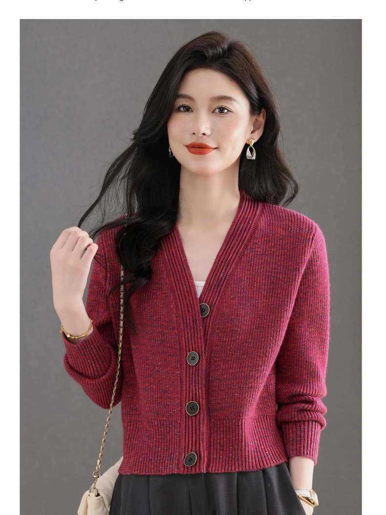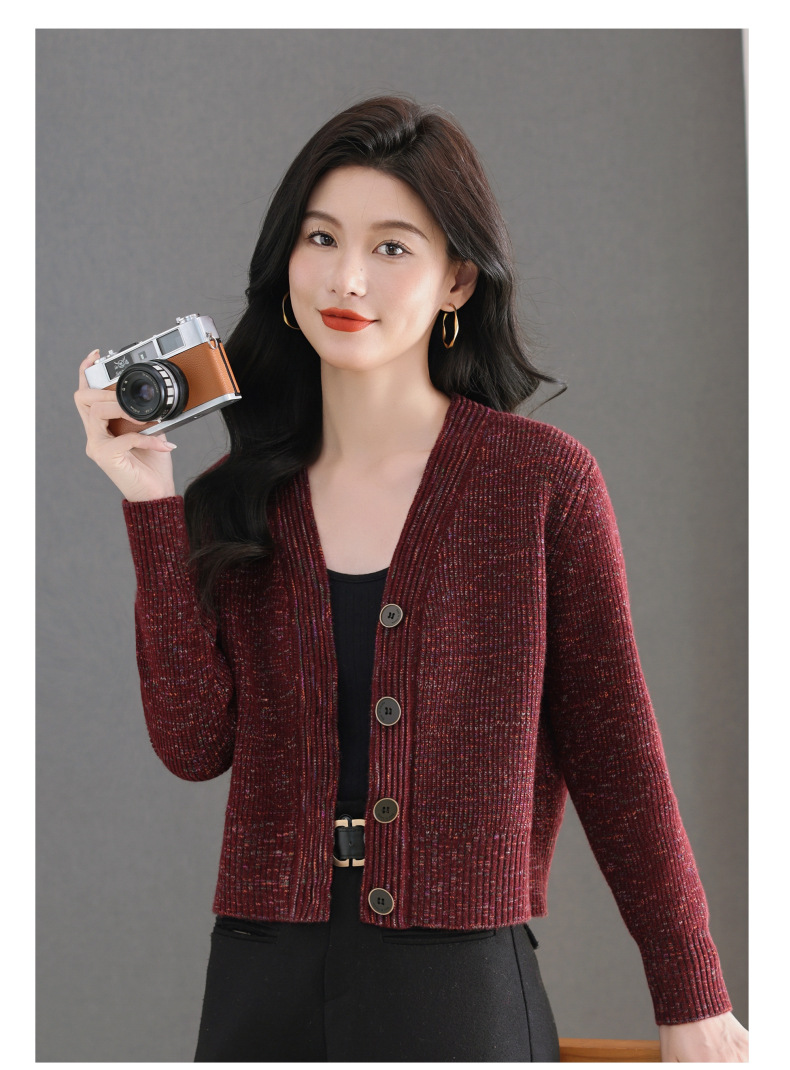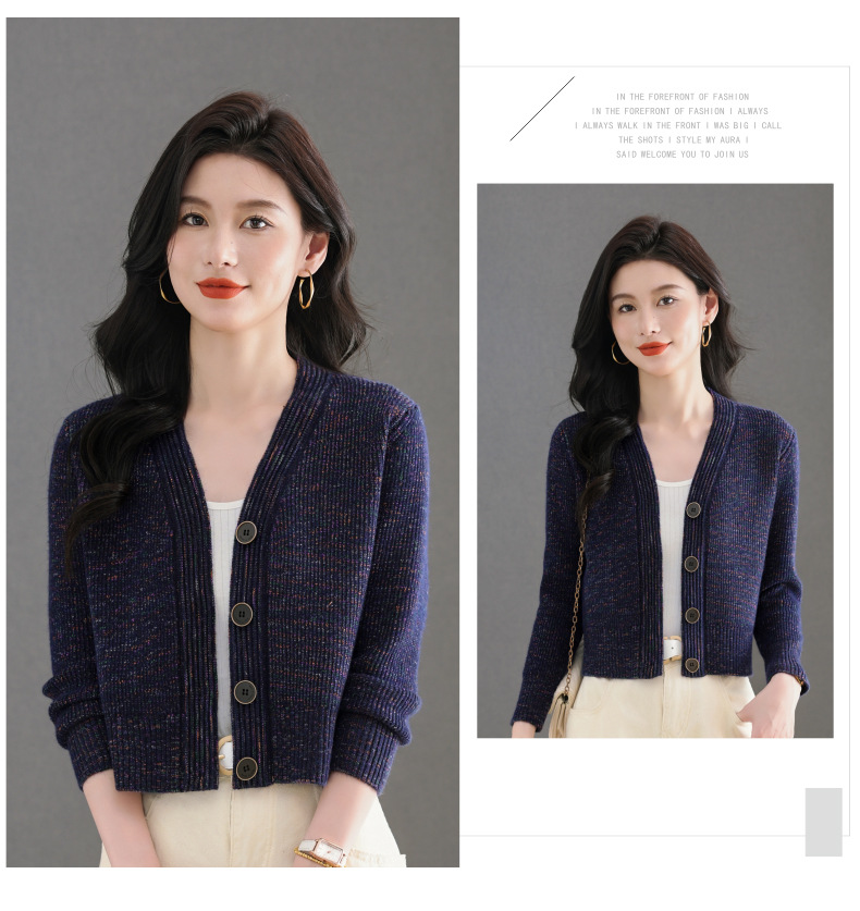 CC气质V领针织开衫女 2025春秋新款简约单排扣修身百搭显高短款上衣
