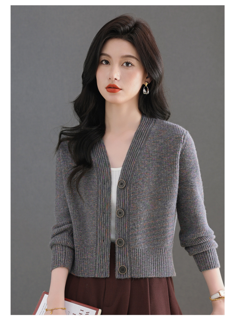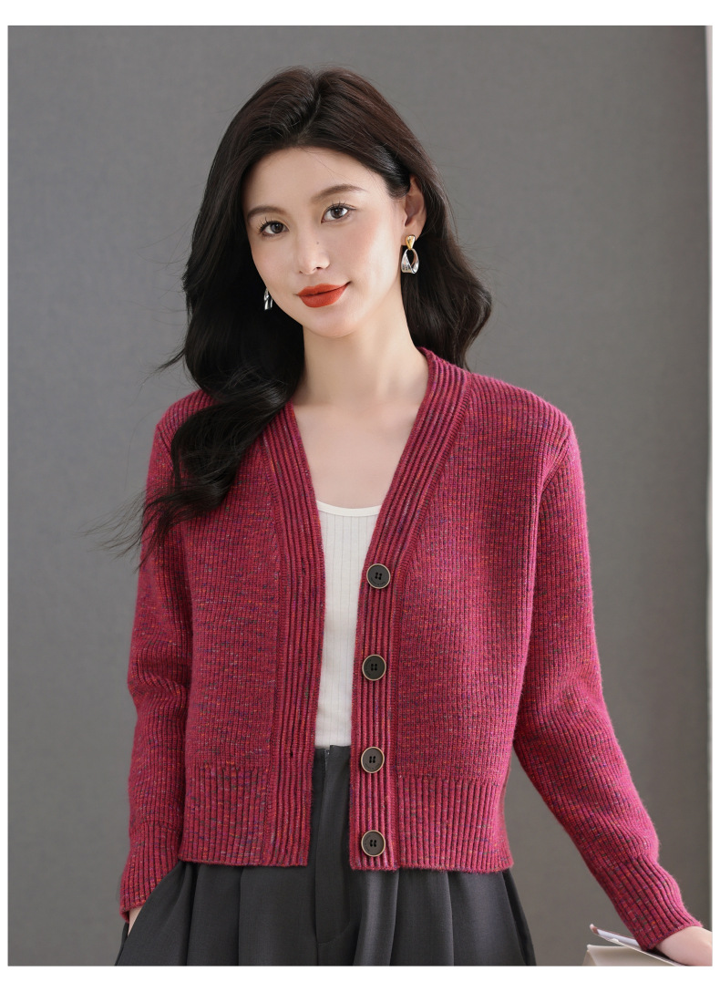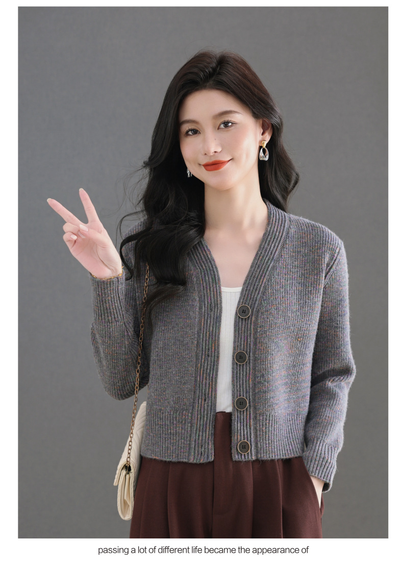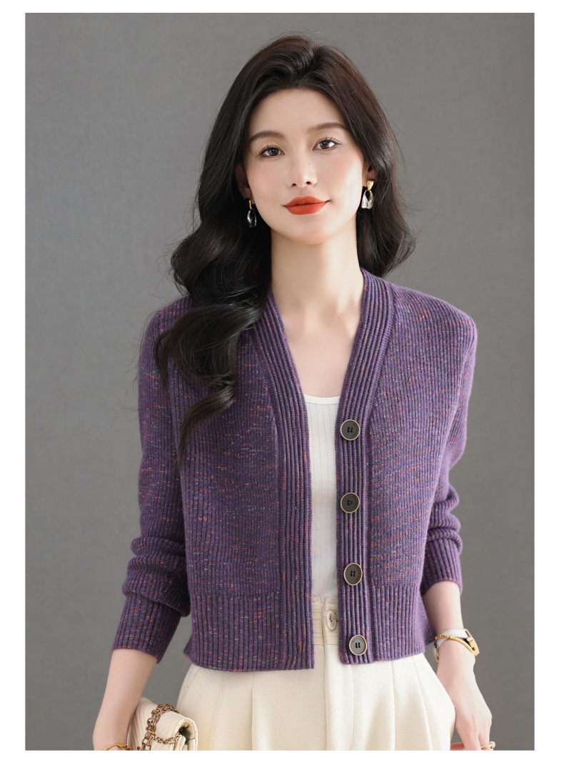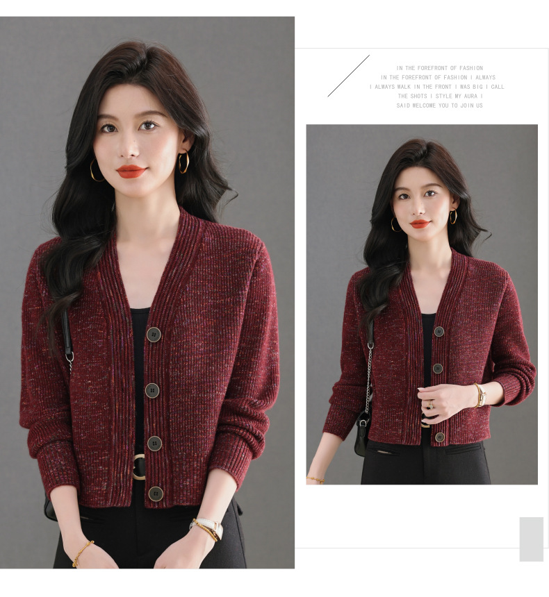 CC气质V领针织开衫女 2025春秋新款简约单排扣修身百搭显高短款上衣