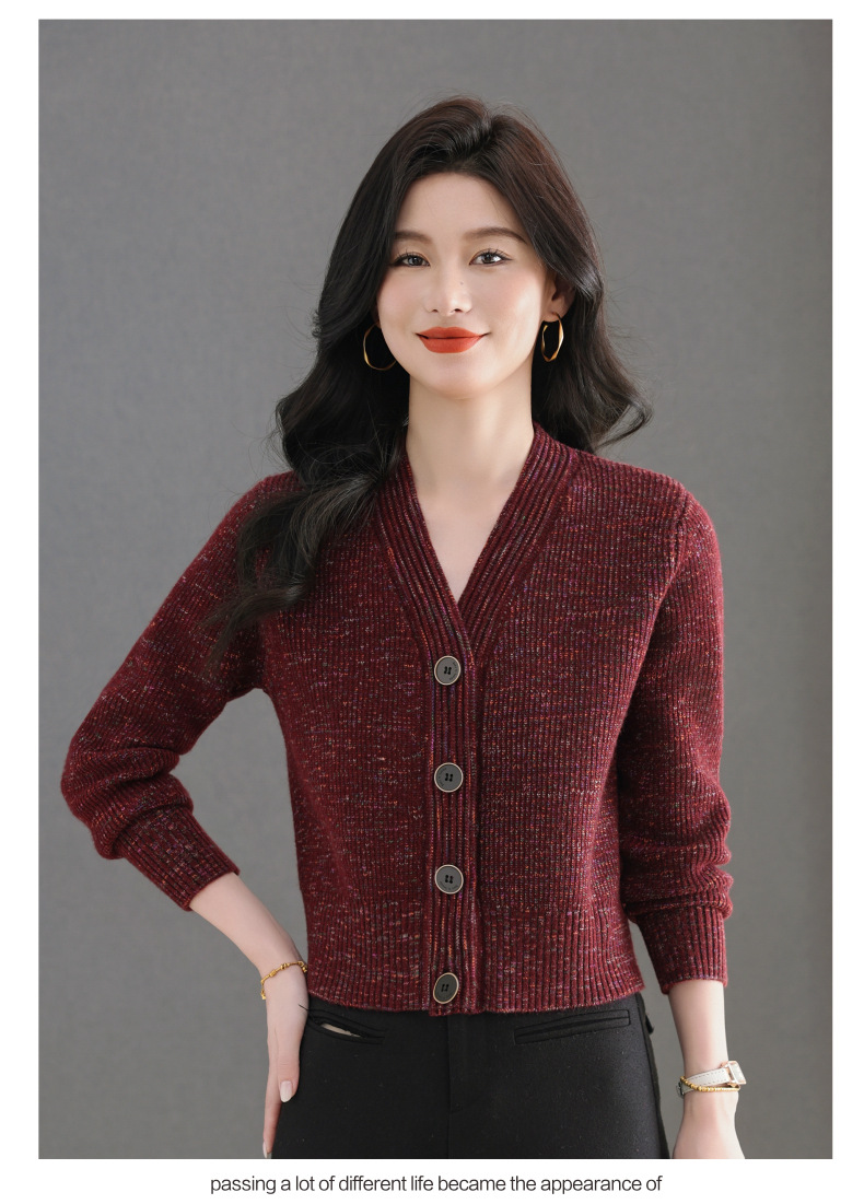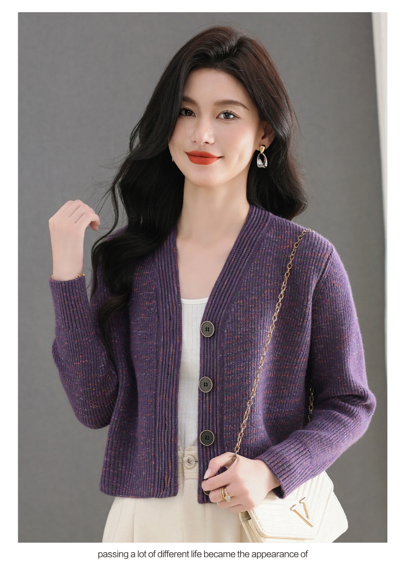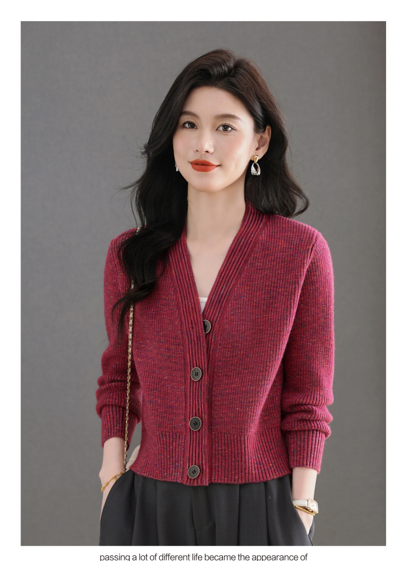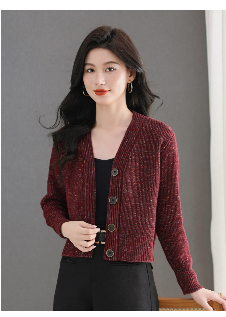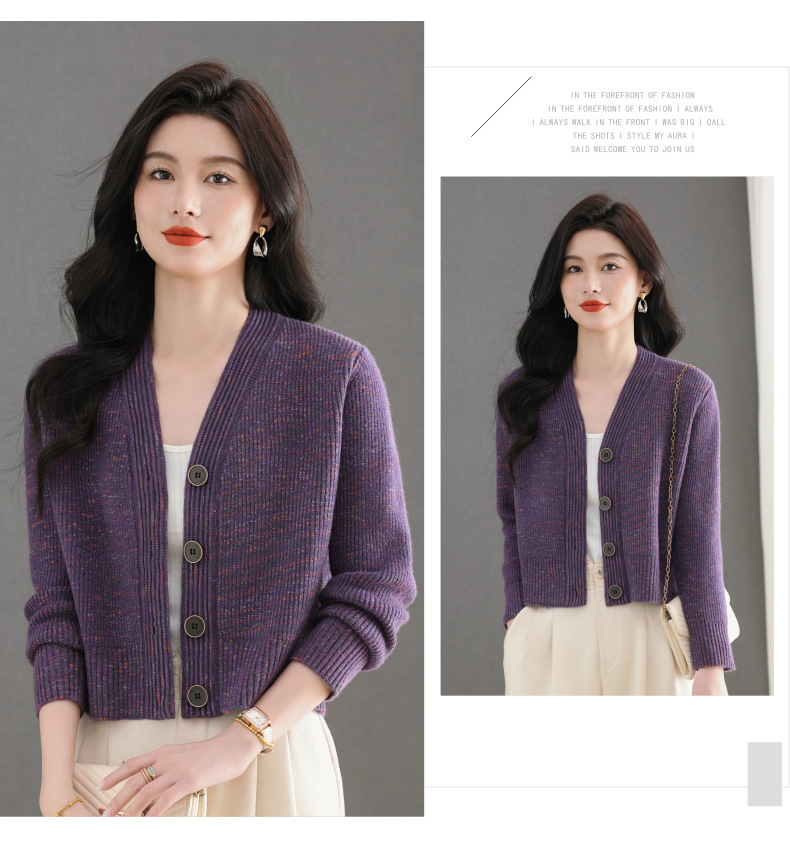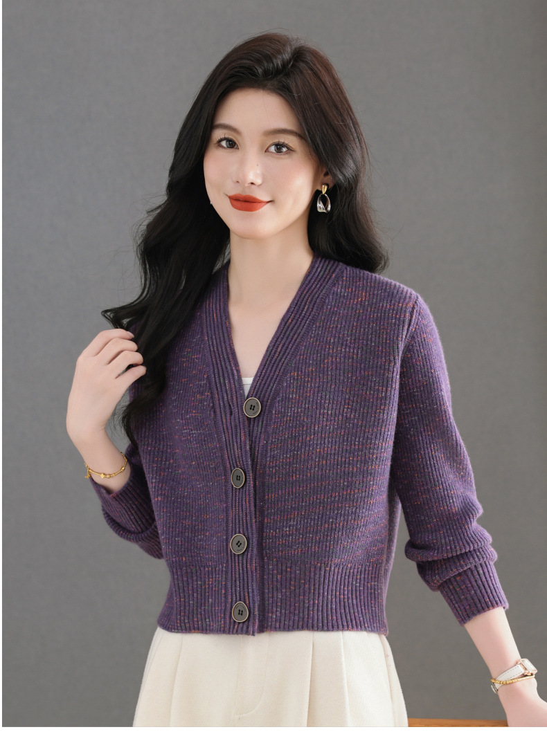 CC气质V领针织开衫女 2025春秋新款简约单排扣修身百搭显高短款上衣