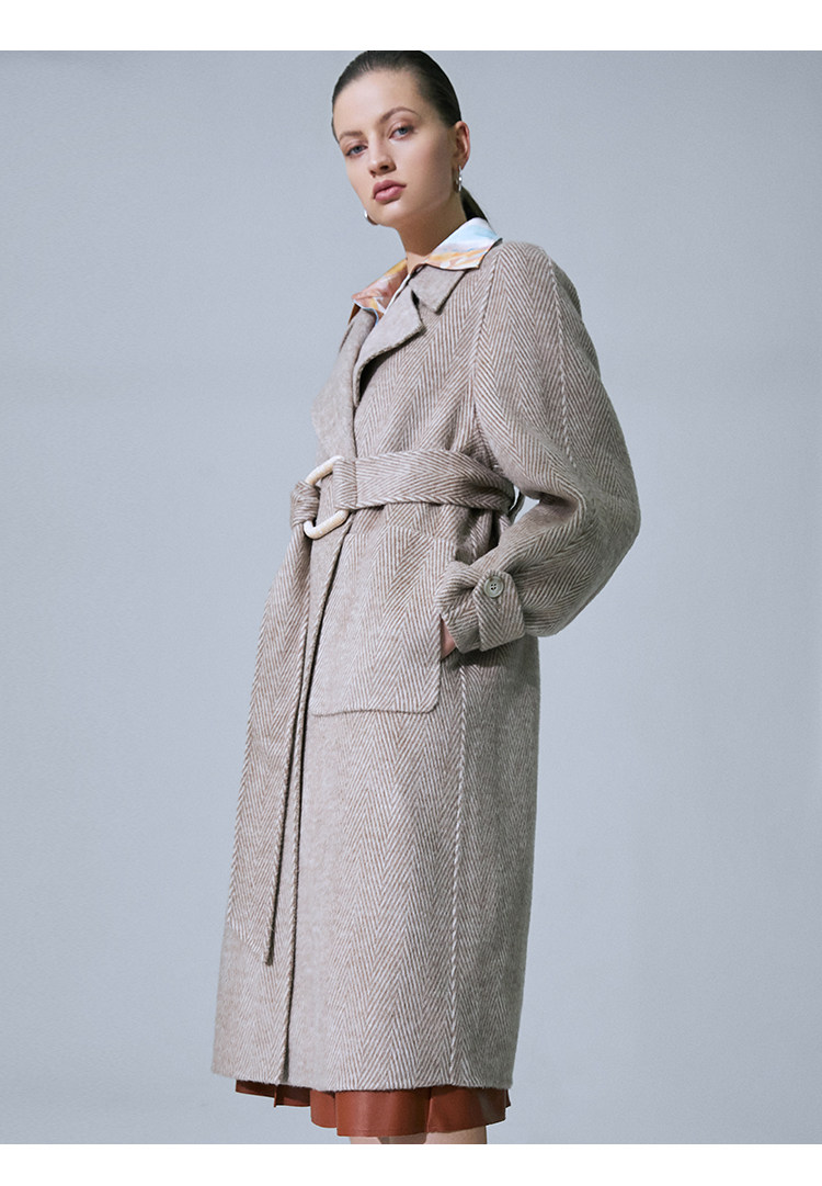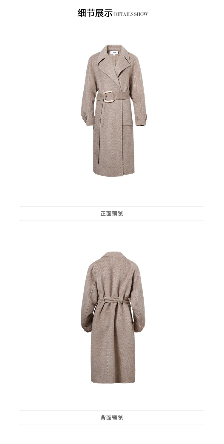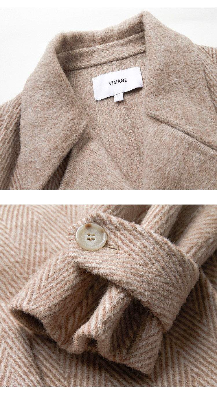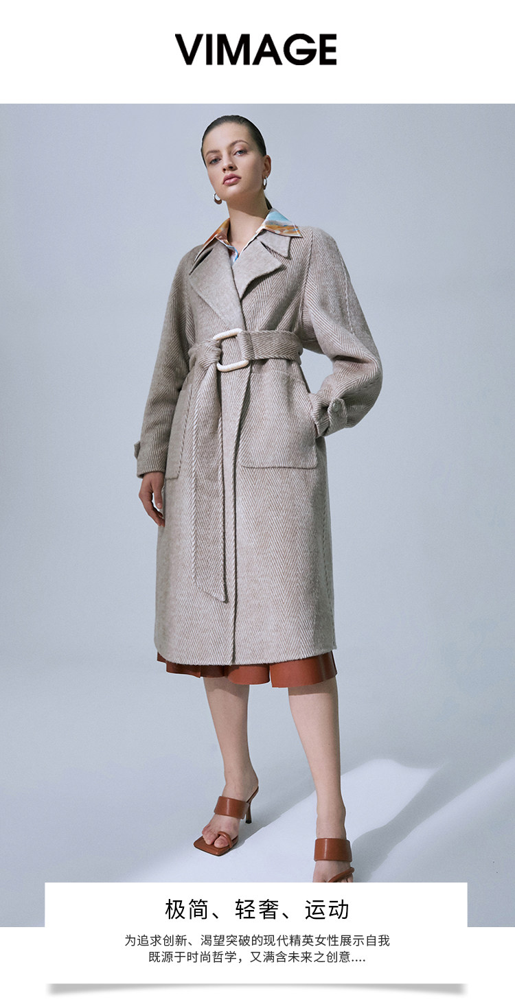 VIMAGE纬漫纪春季新款气质翻领收腰廓形显瘦长款羊毛呢大衣女V1514102