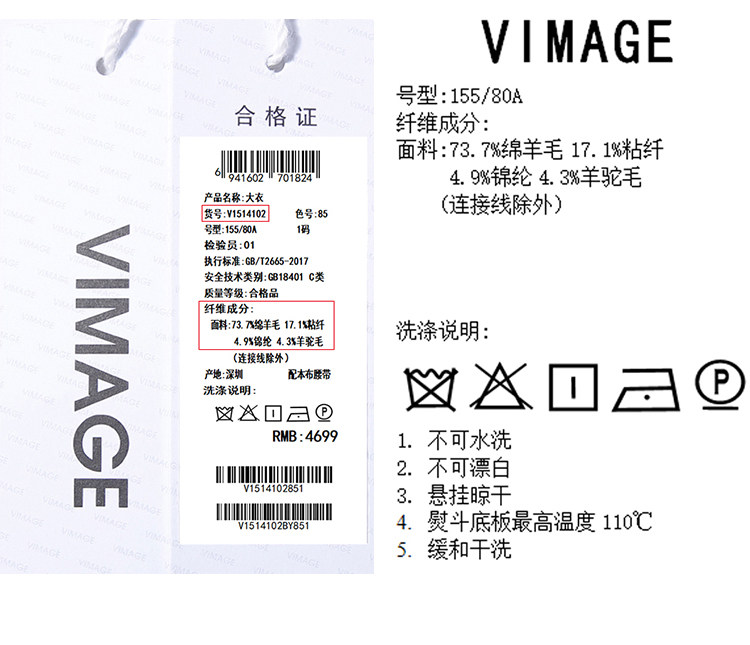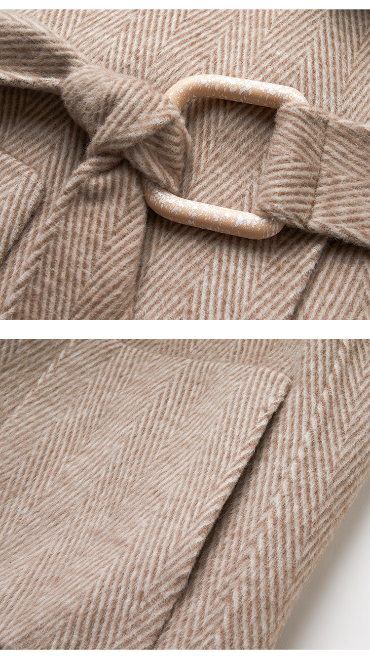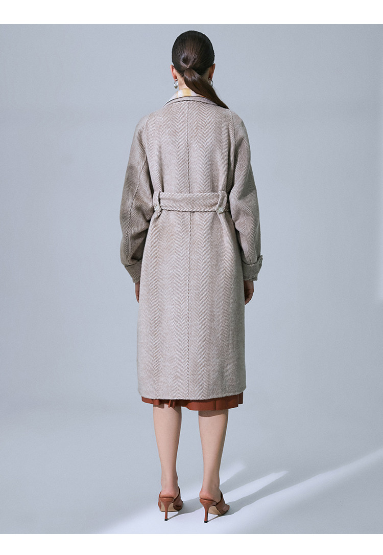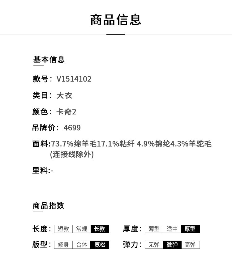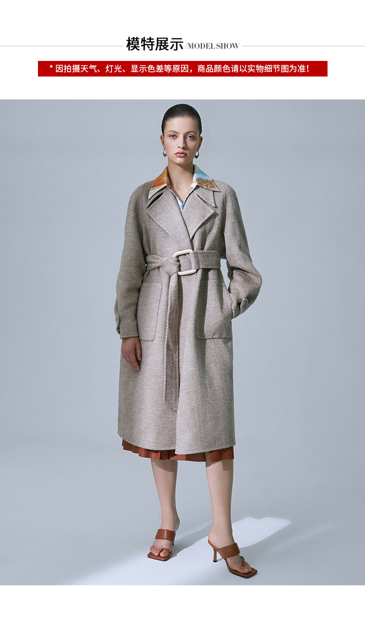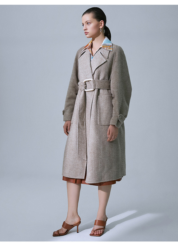 VIMAGE纬漫纪春季新款气质翻领收腰廓形显瘦长款羊毛呢大衣女V1514102