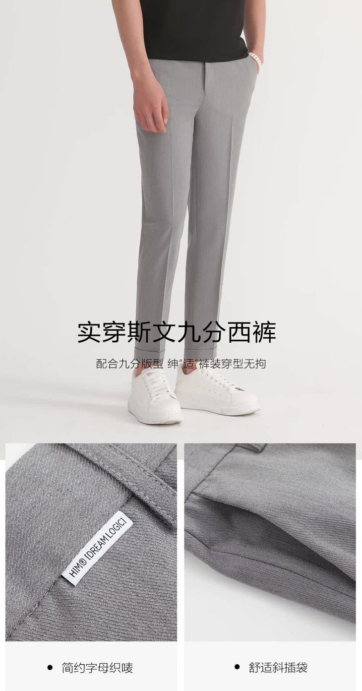 HIM漢崇 斯文舒适修身单西裤日常通勤商务休闲九分裤男 2026春季