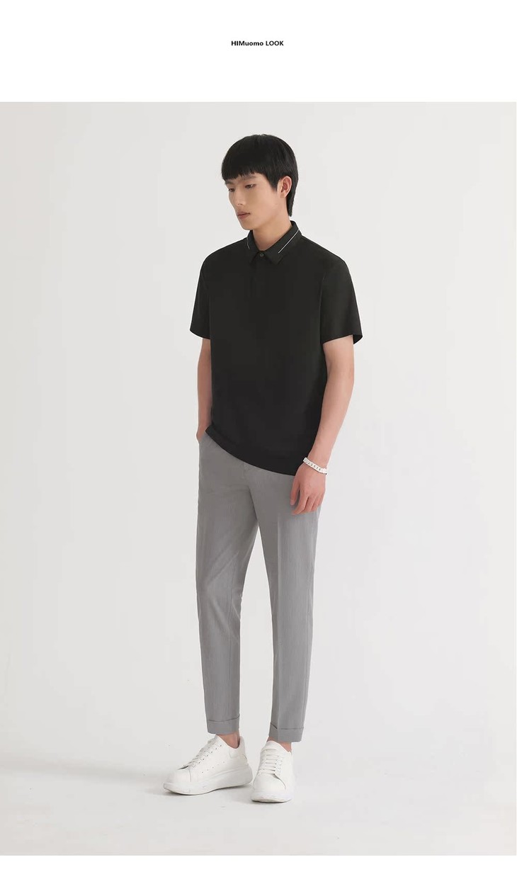 HIM漢崇 商务休闲翻领T恤男基础款简约印花短袖POLO衫 2026夏季