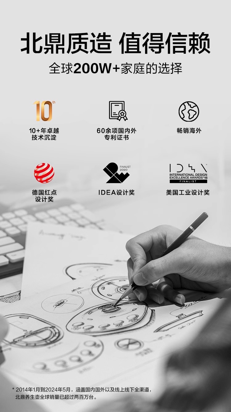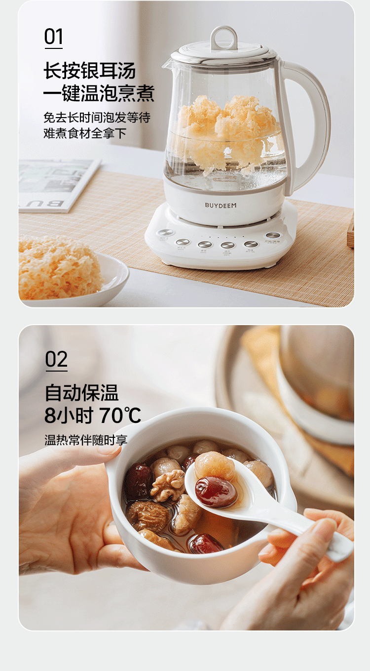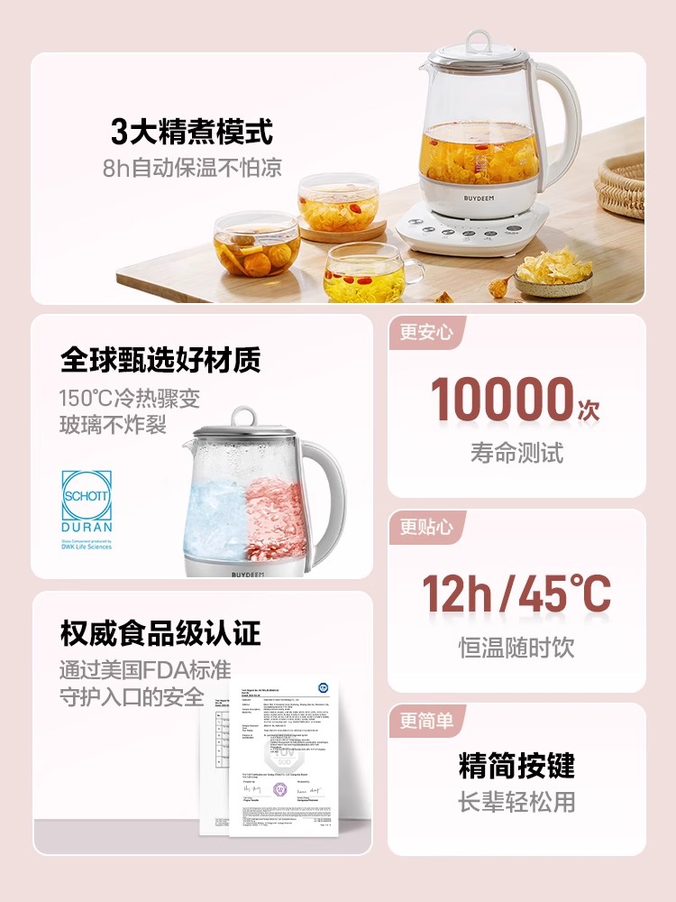 北鼎全自动12小时恒温养生壶K123本白色(1.5L)