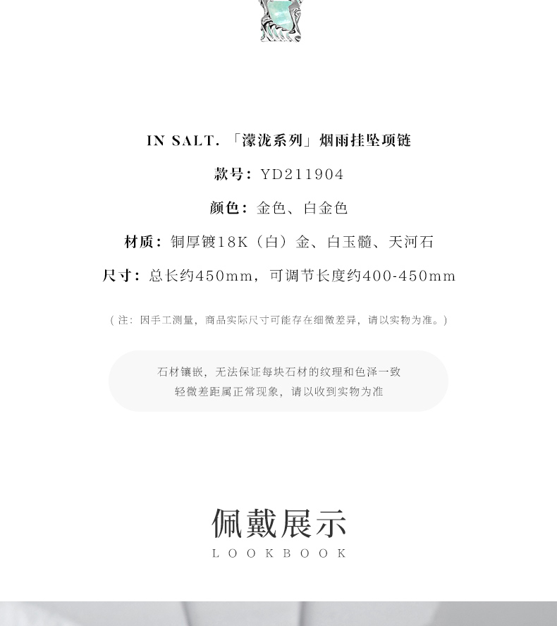 盐岛 濛泷系列烟雨挂坠项链
