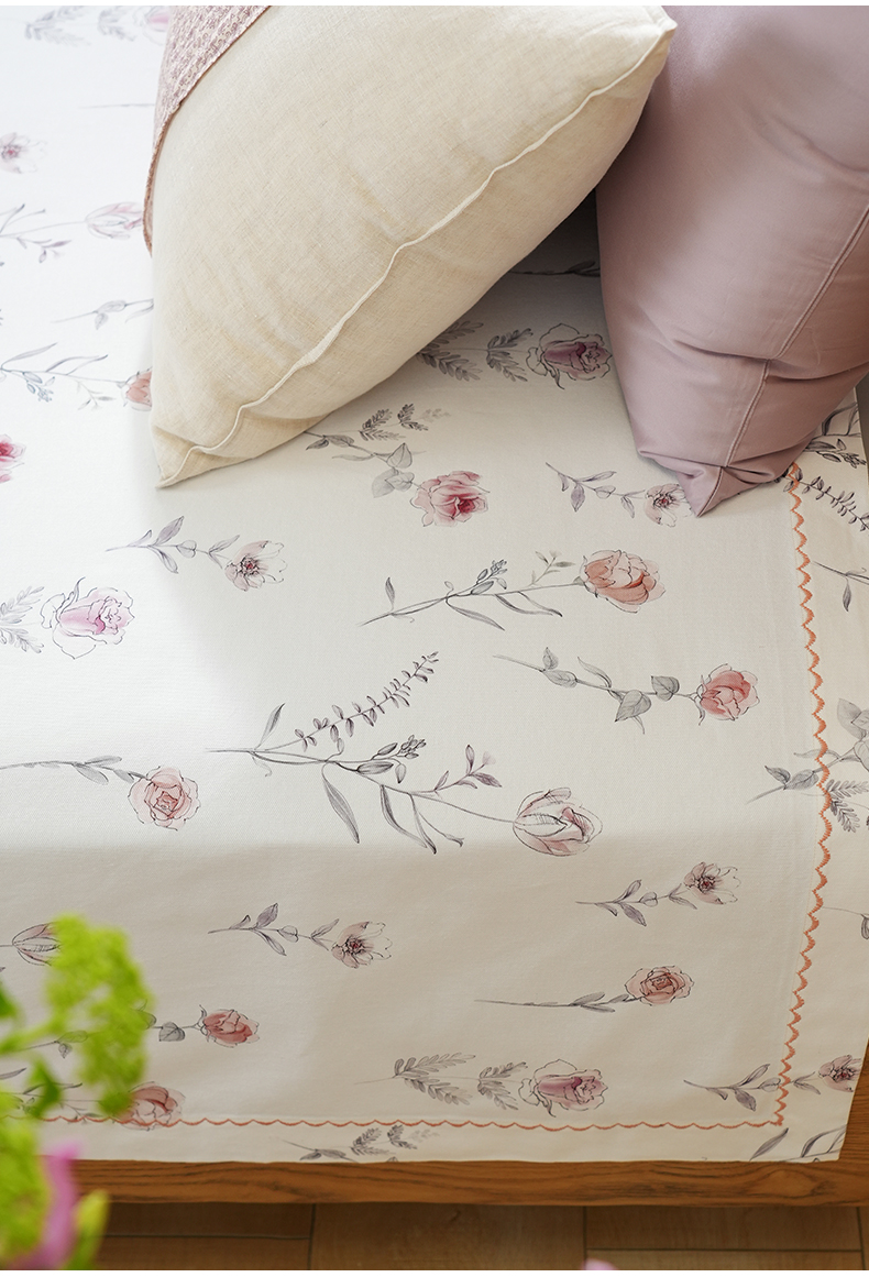 玫瑰时光系列床单单件纯棉100全棉老粗布单人双人四季通用高端定制
