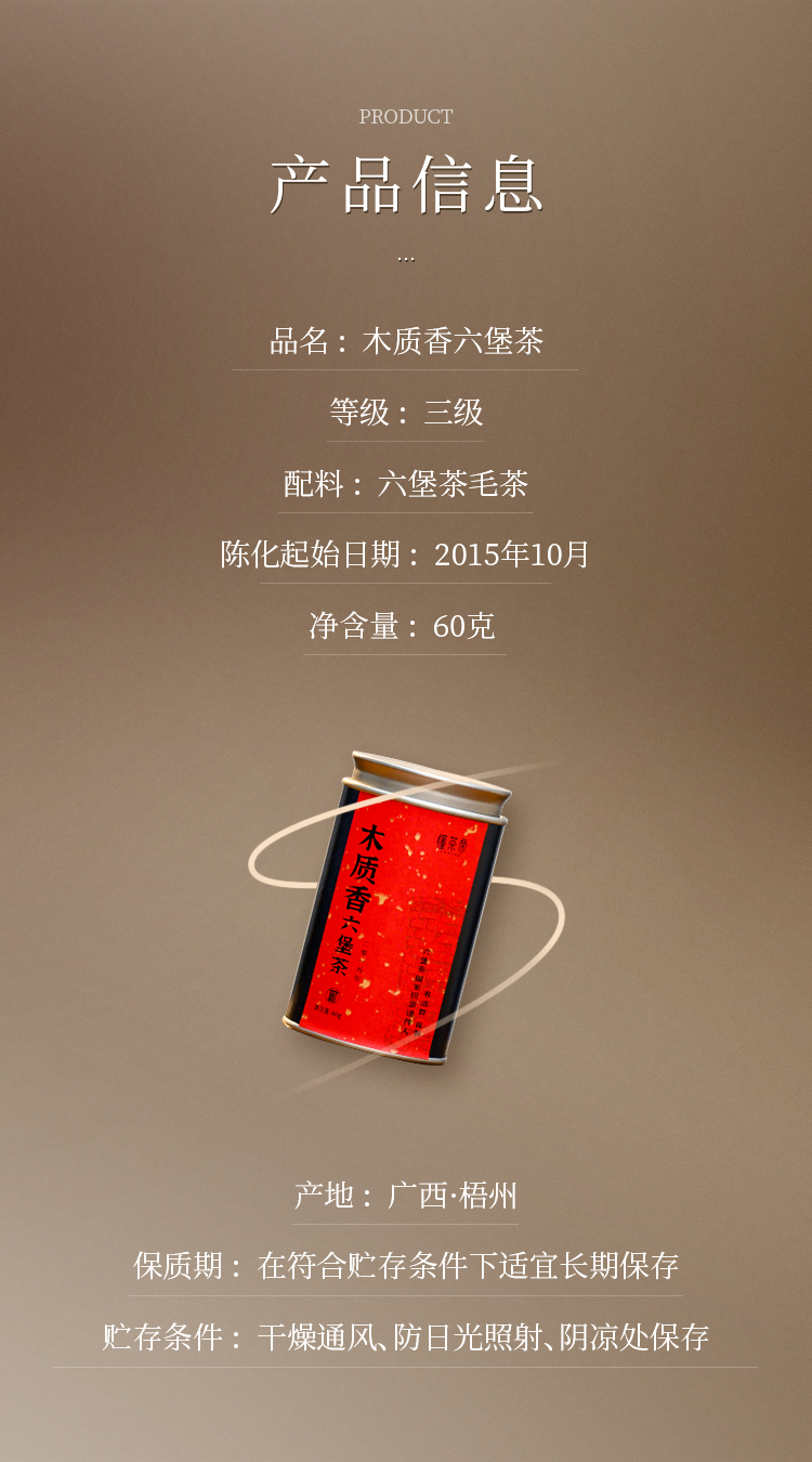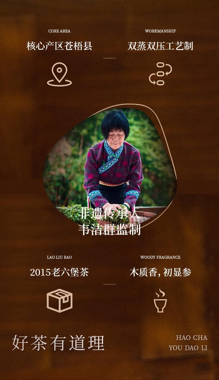 懂茶帝老六堡茶大师茶韦洁群老师2015年木质香陈香六堡茶60g/罐