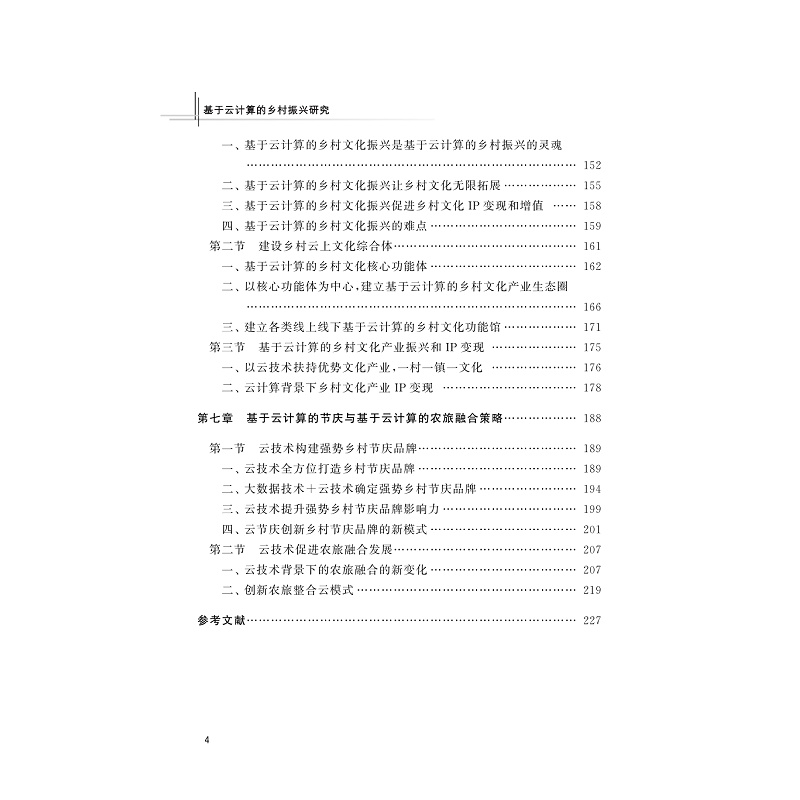从2017年10月,党的十九大报告shouci提出中国的乡村振兴战略,从国家层面确定了乡村振兴战略是解决好“三农”问题的基本战略。本书从云计算技术出发,研究一个完整的基于云计算的乡村振兴体系,打造一个与实体乡村振兴体系对应的虚拟乡村振兴云平台。基于云计算,着重发挥虚拟网络时空的优势,形成虚拟乡村生活的云上空间。本书包括了云计算乡村振兴体系的构建、农产品整合营销的云计算传播、基于云计算的乡村教育体系构建、农事节庆云平台搭建、云端乡村旅游计划、云端乡村文化体系等,也包括了乡村电商带货等云计算销售体系等内容。为我国的乡村振兴提供参考。