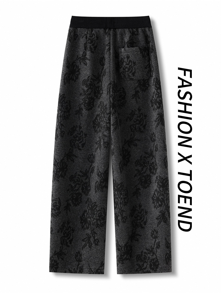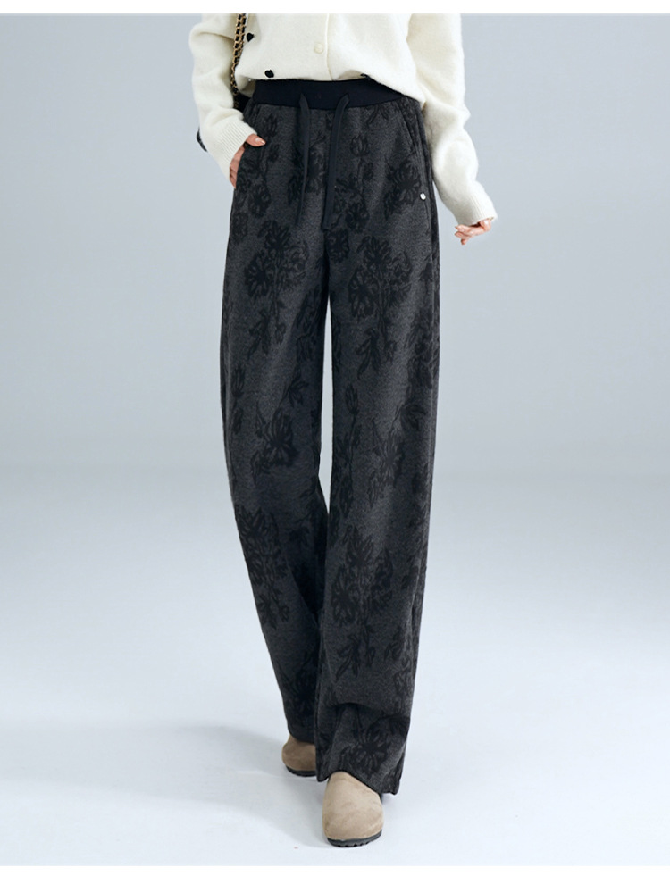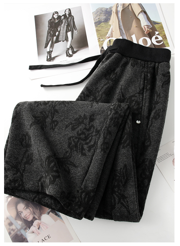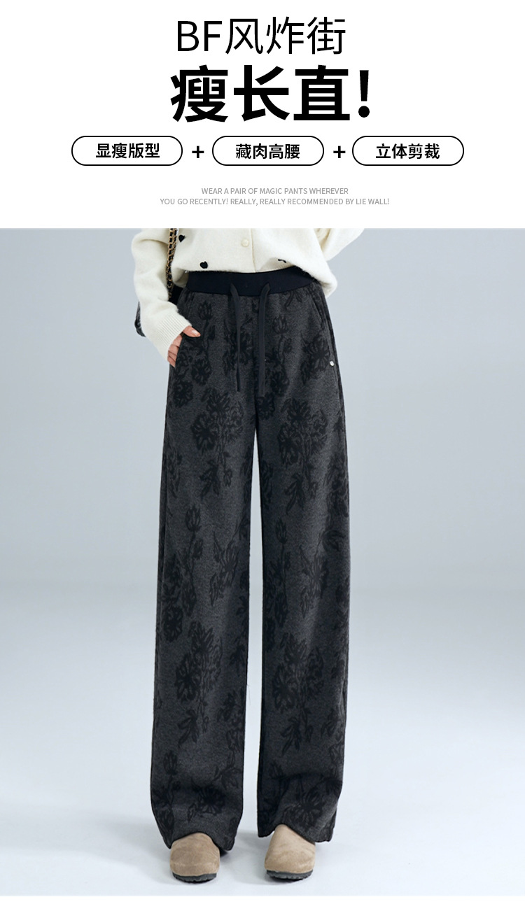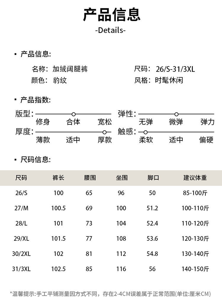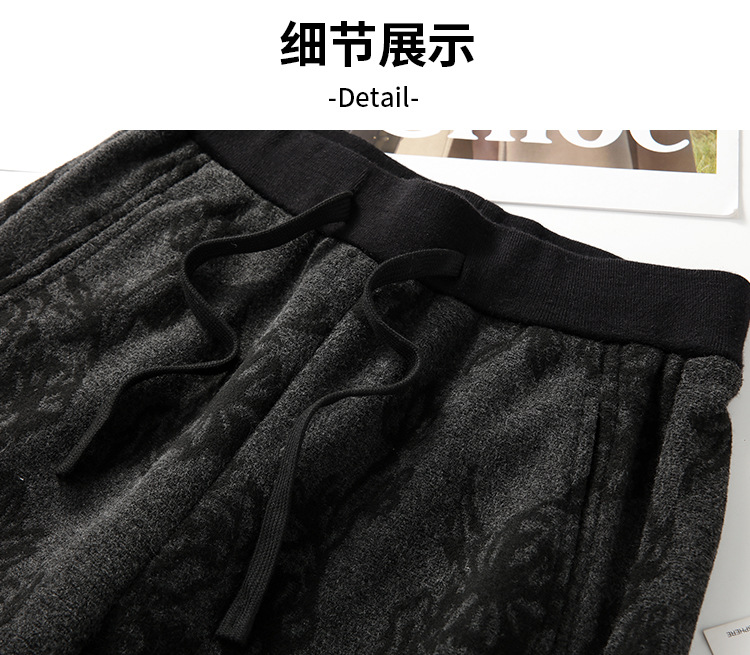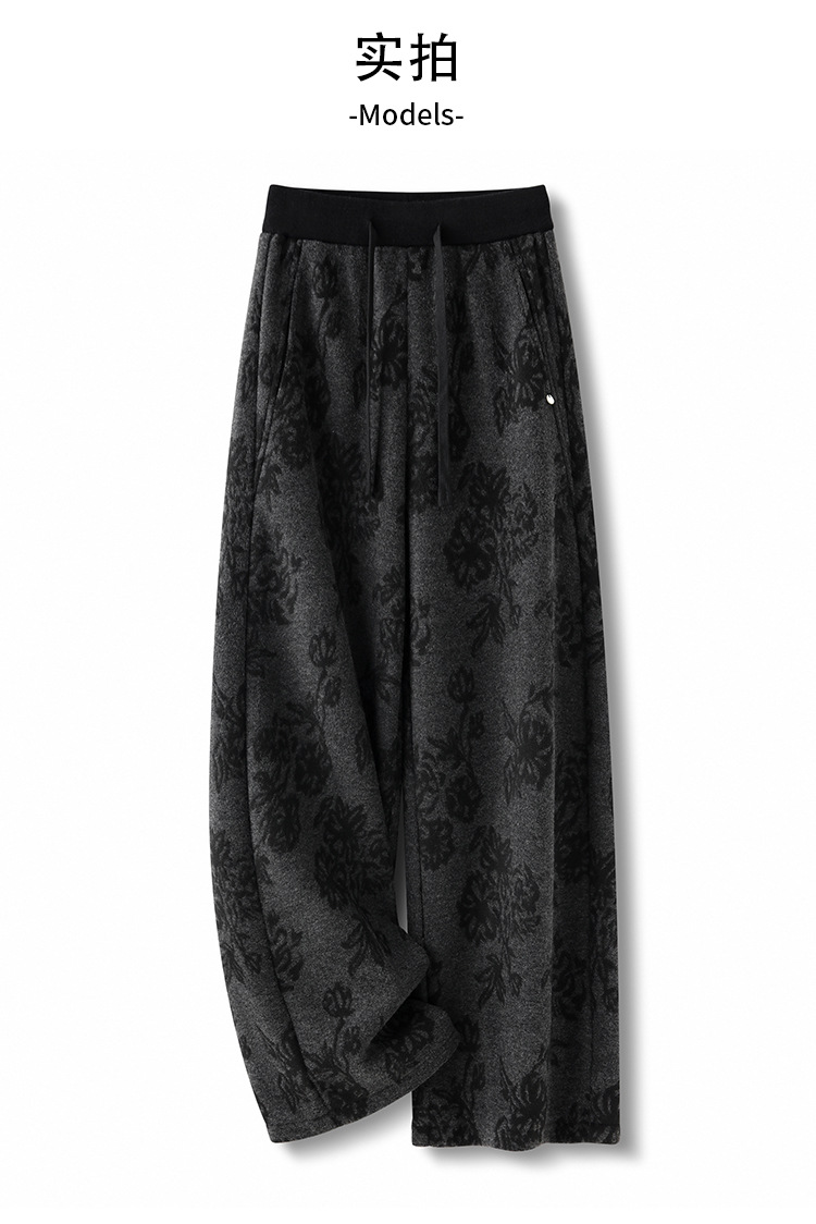 QYM M863-Y加绒保暖阔腿裤时尚豹纹直筒裤气质优雅