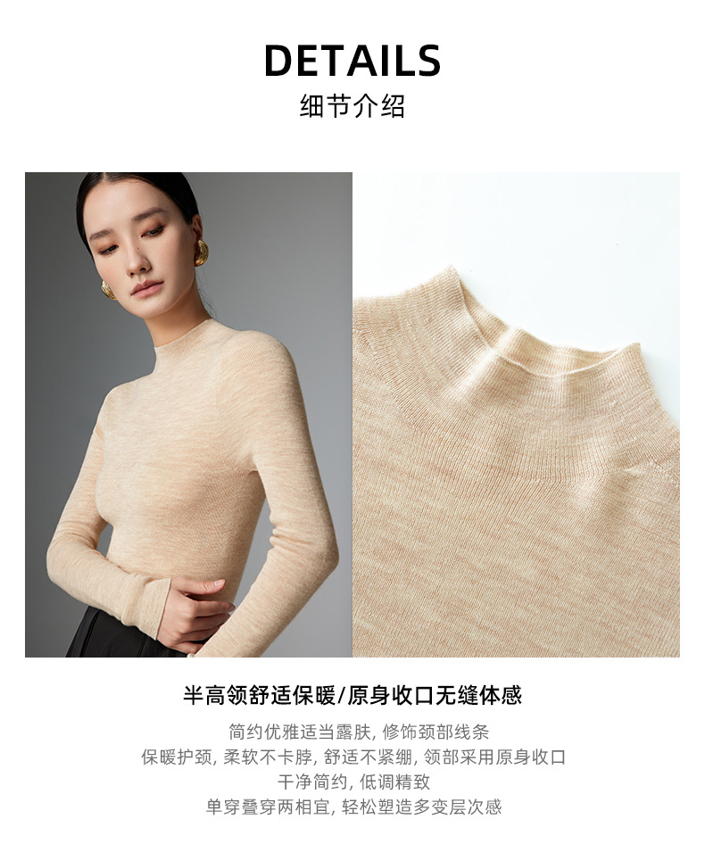 MKL24-15【可机洗】精纺半高领羊毛衫秋冬薄款针织打底衫 商品图2