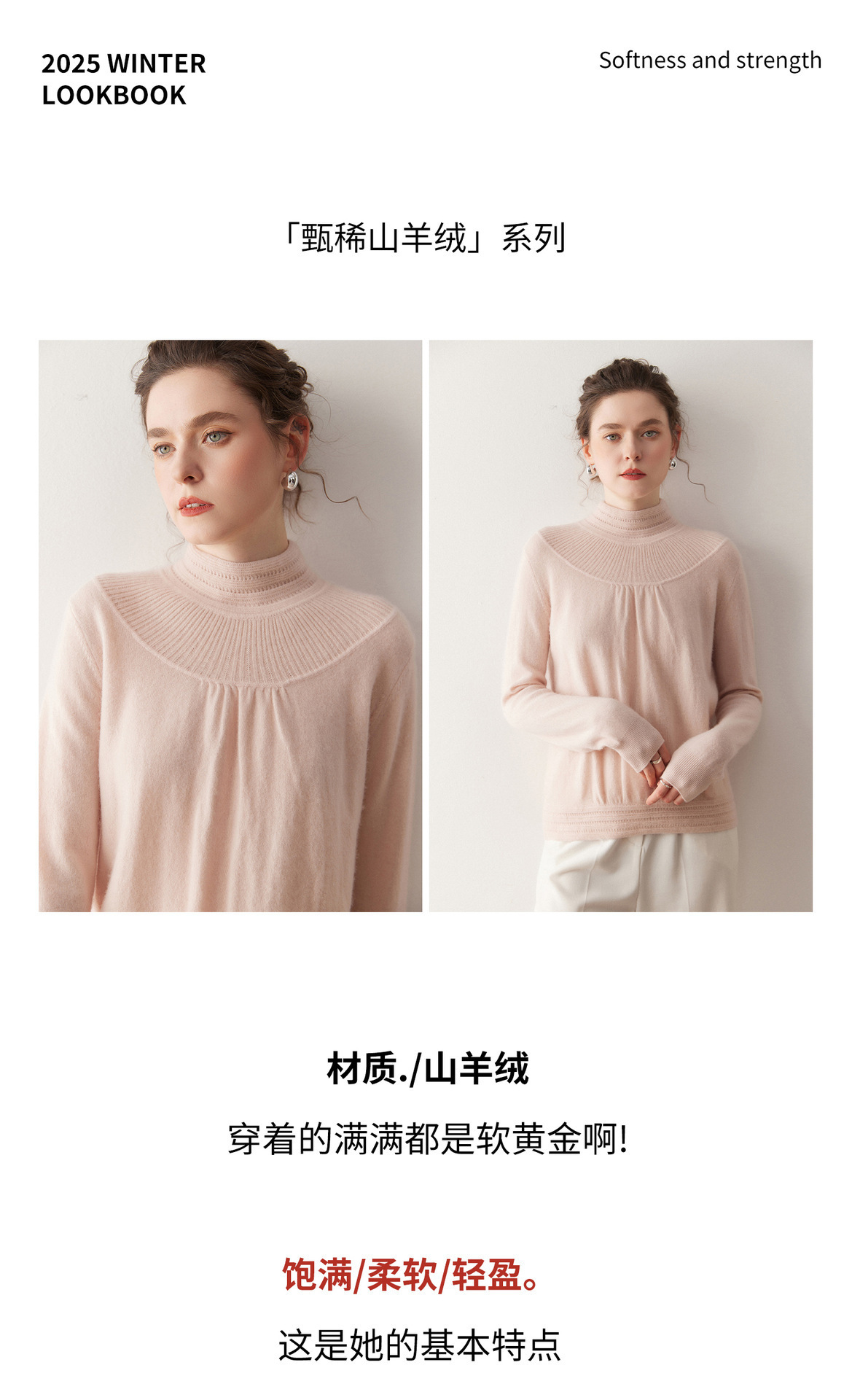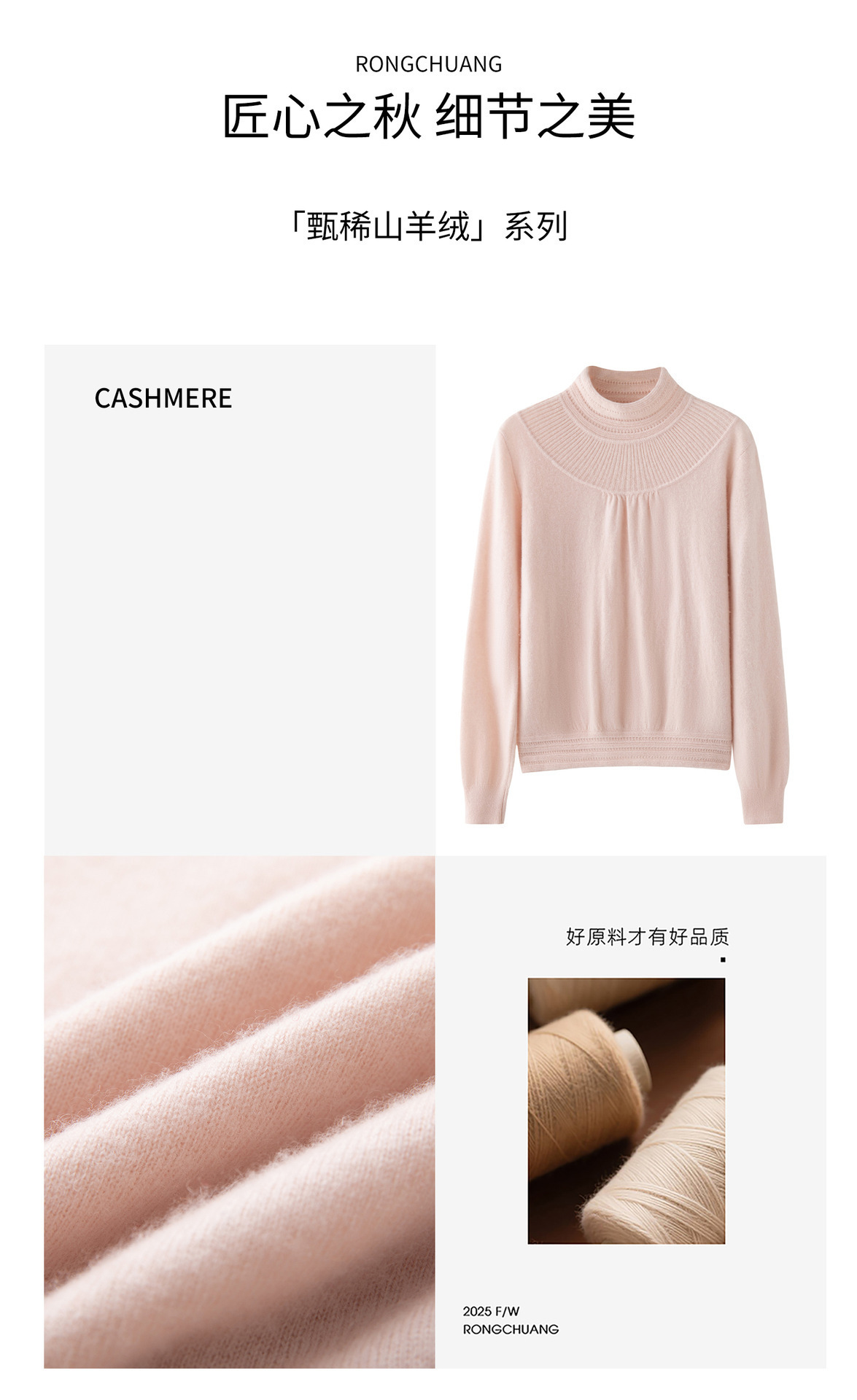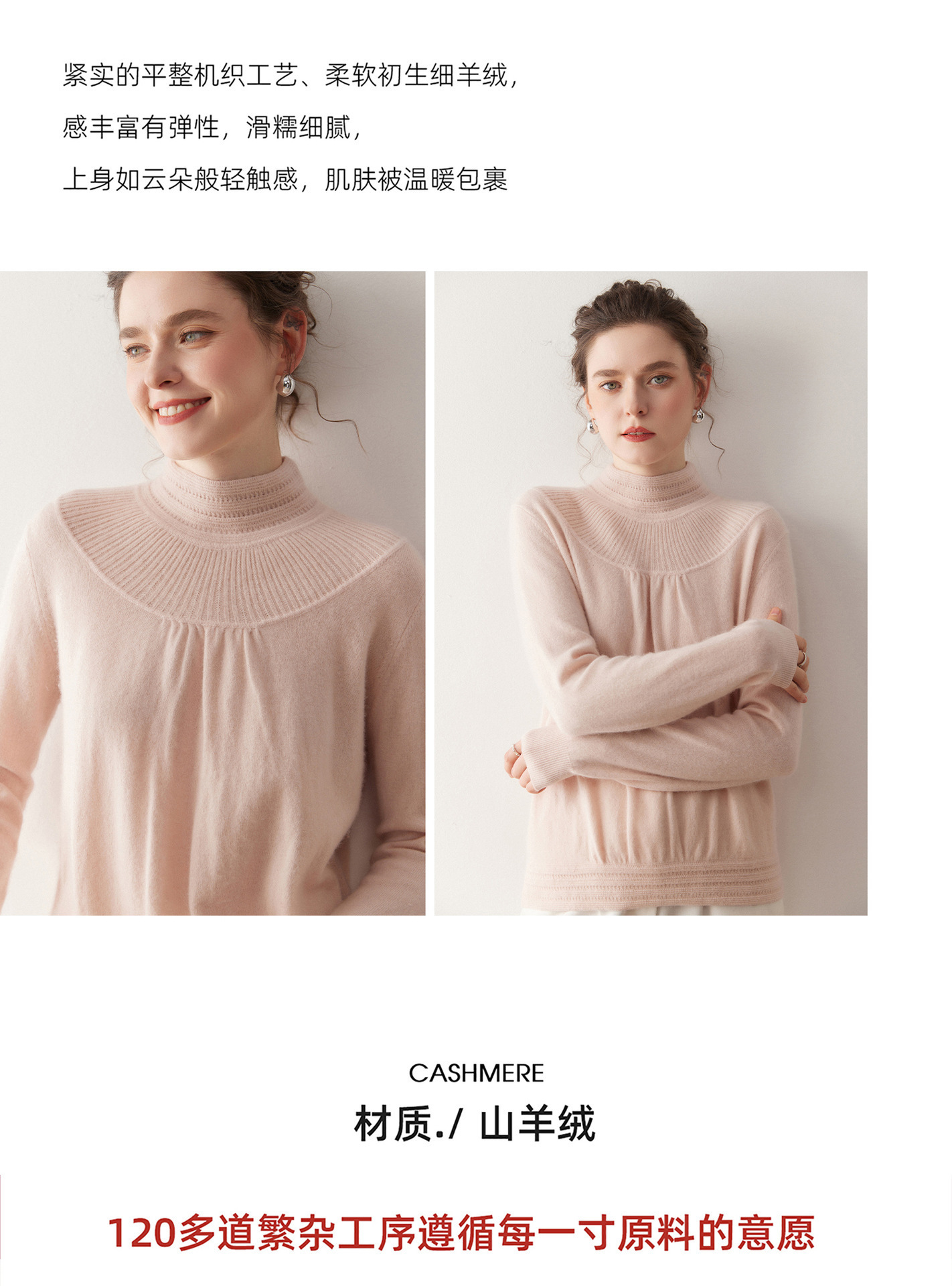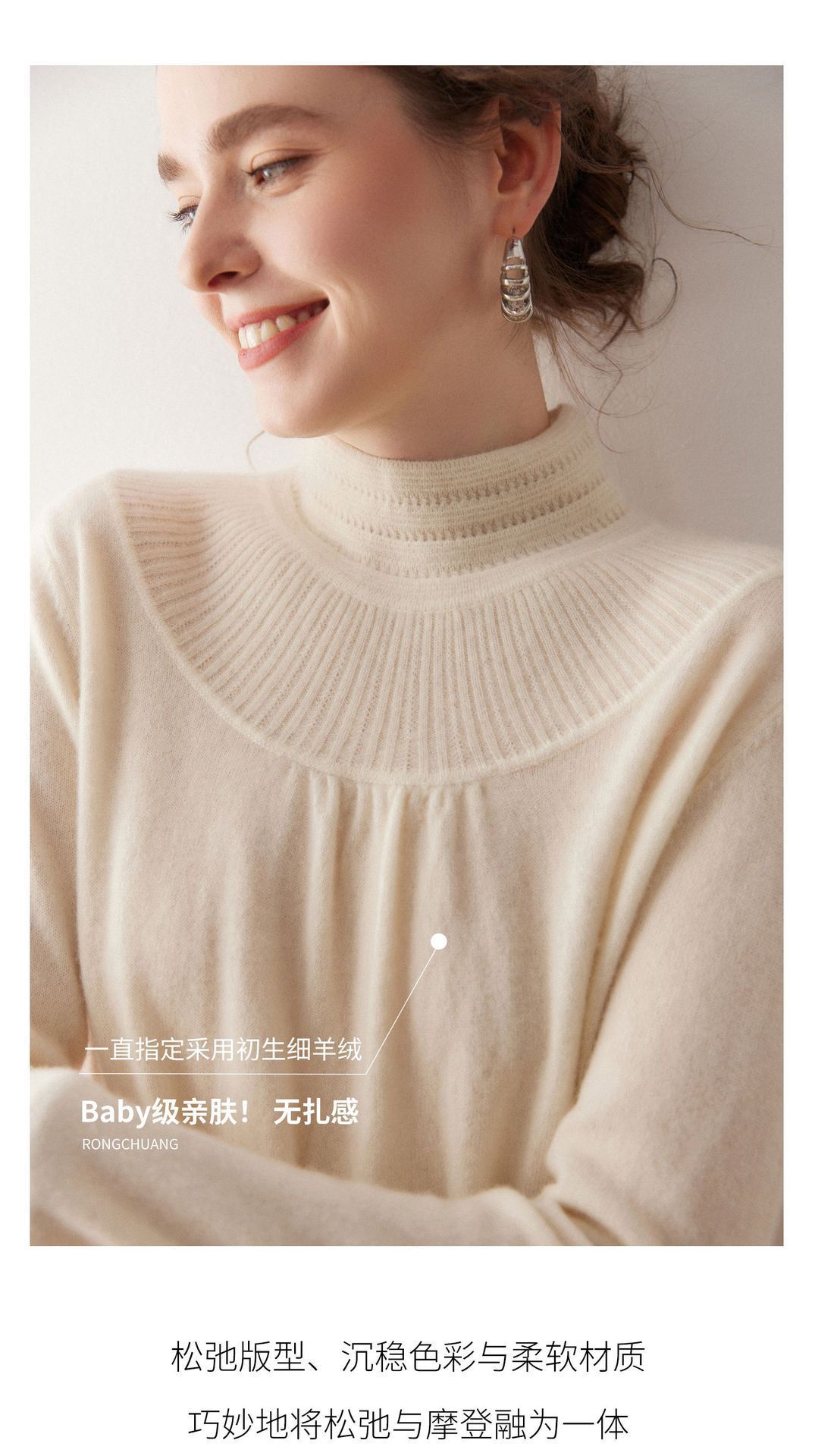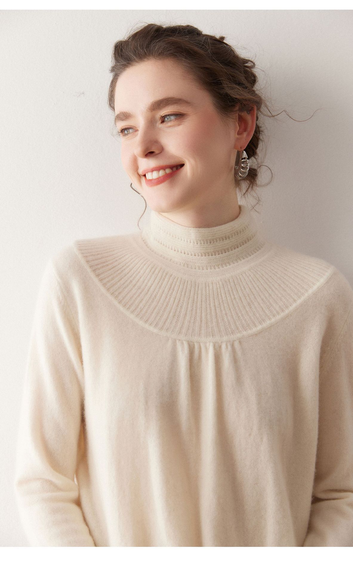 「高货rig」全新升级【铂金会员404/天猫539/差价135】(02301)洛诗琳法式领口提花羊绒衫2025秋冬新款气质半高领毛衫