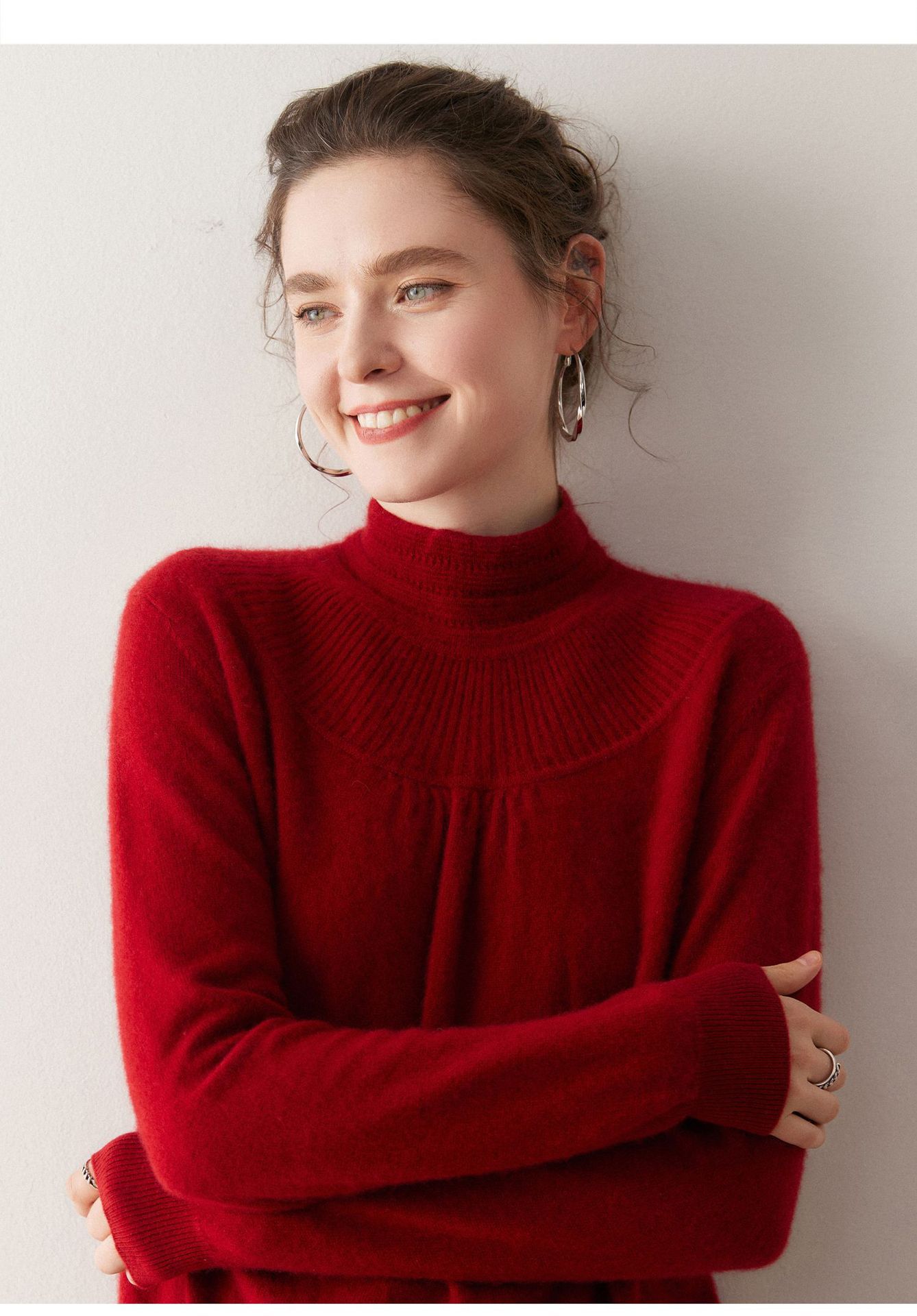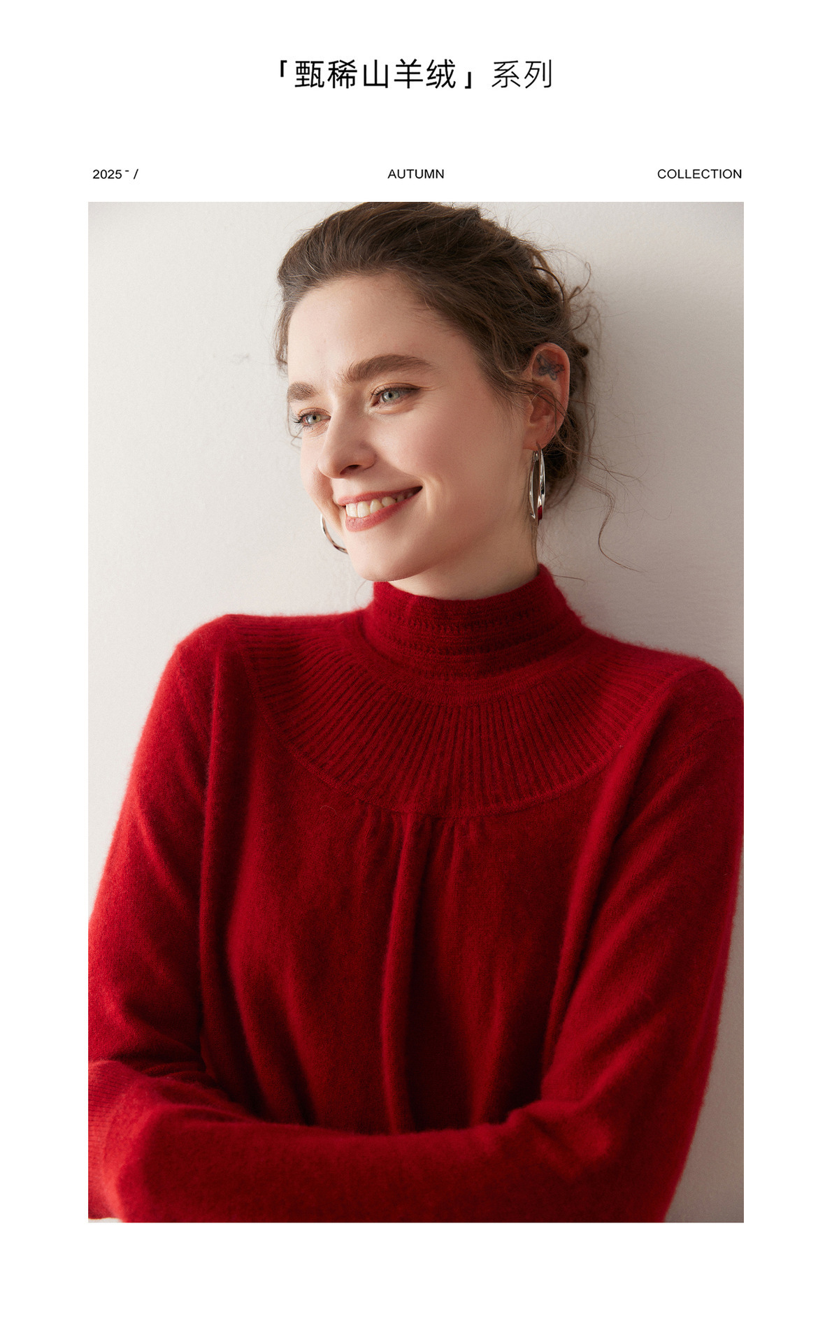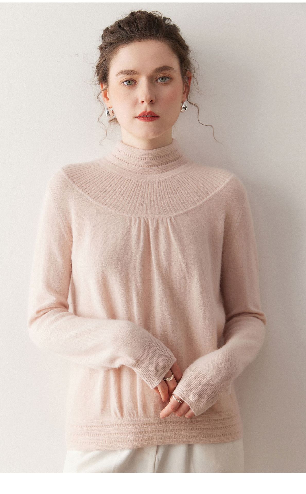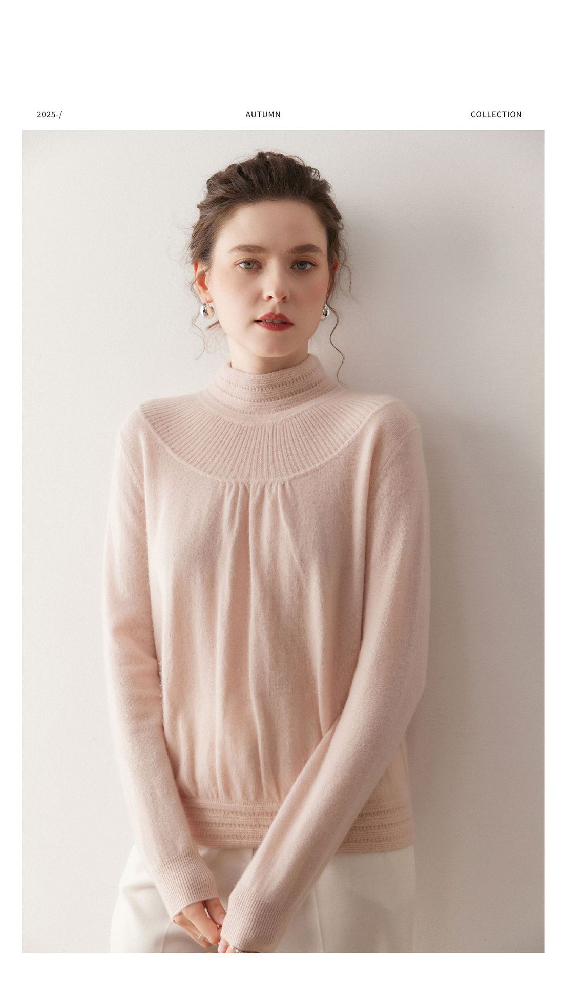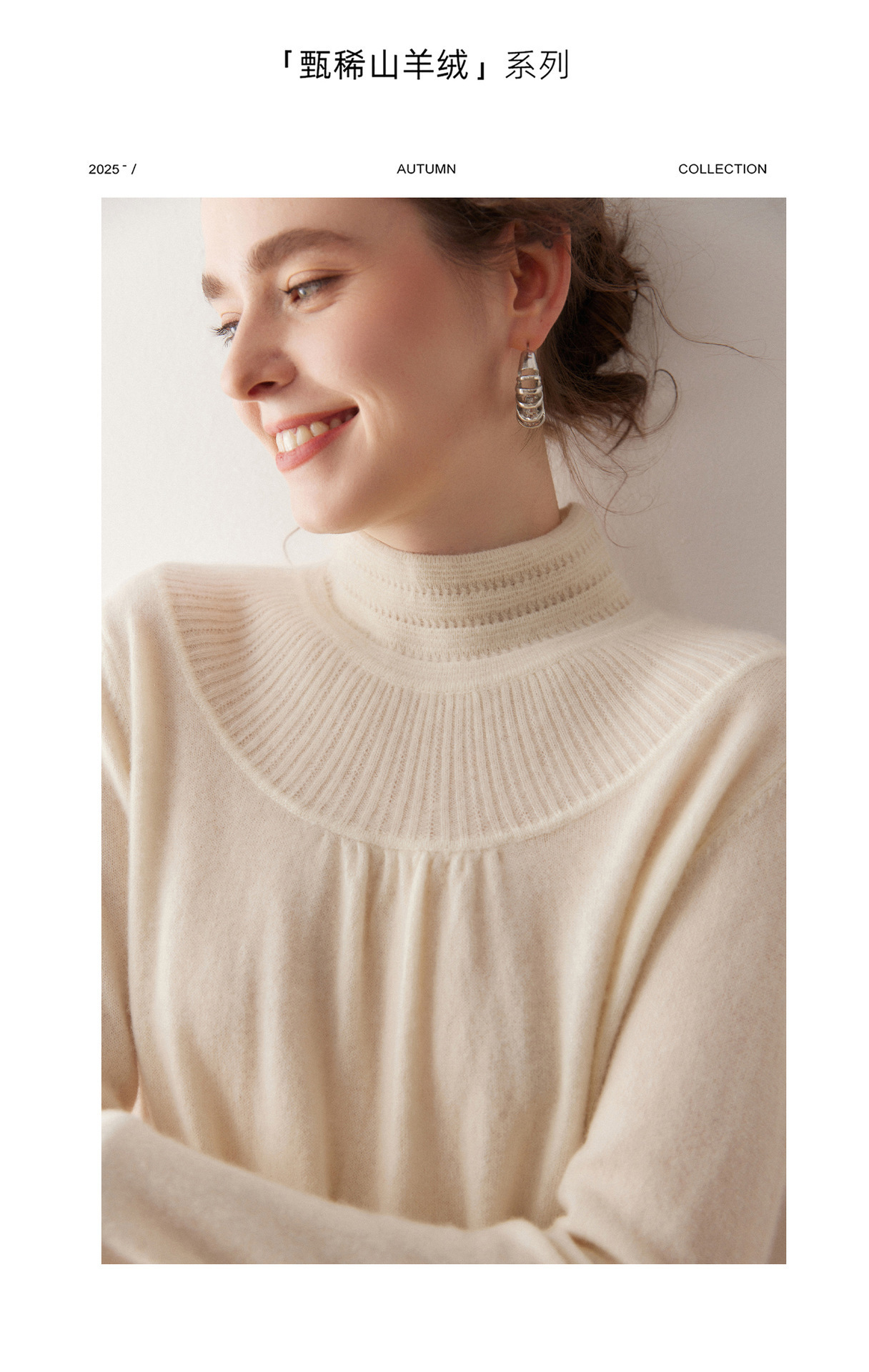「高货rig」全新升级【铂金会员404/天猫539/差价135】(02301)洛诗琳法式领口提花羊绒衫2025秋冬新款气质半高领毛衫