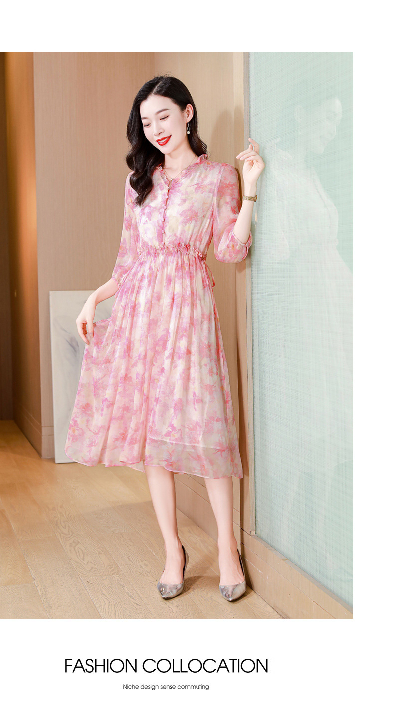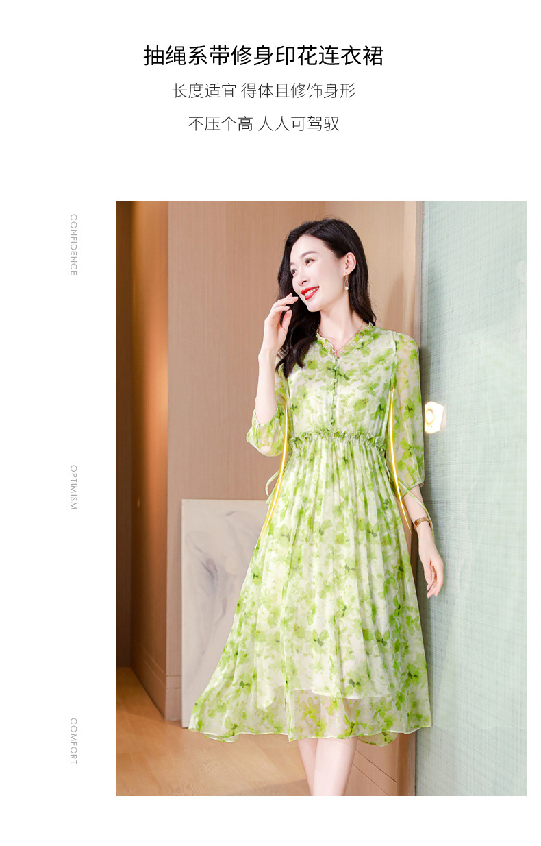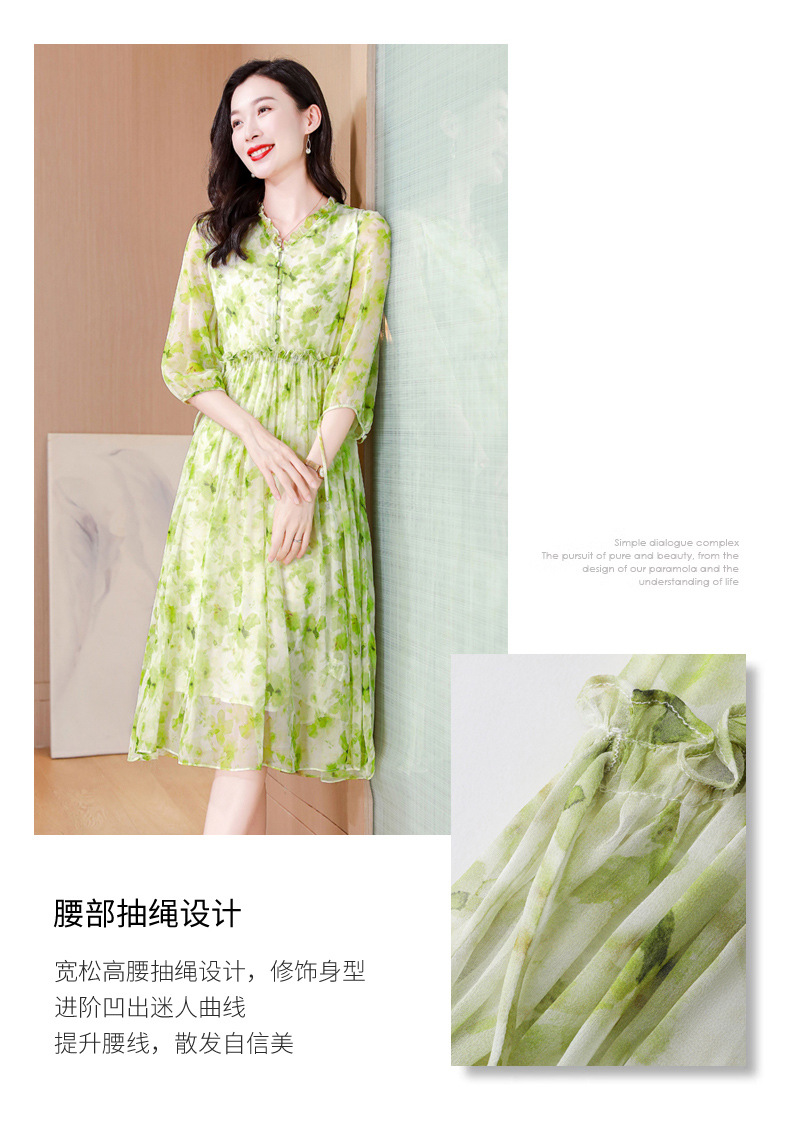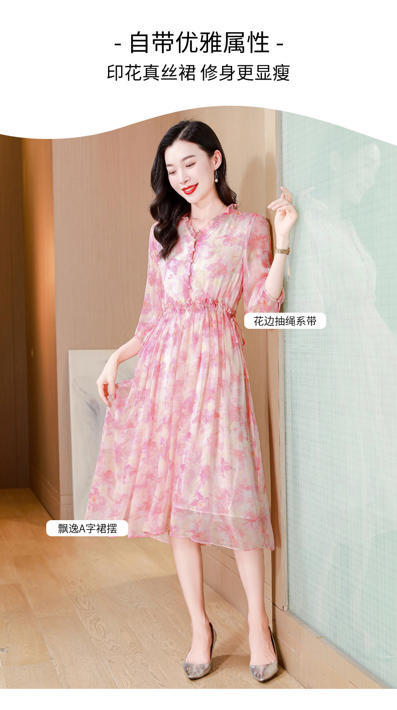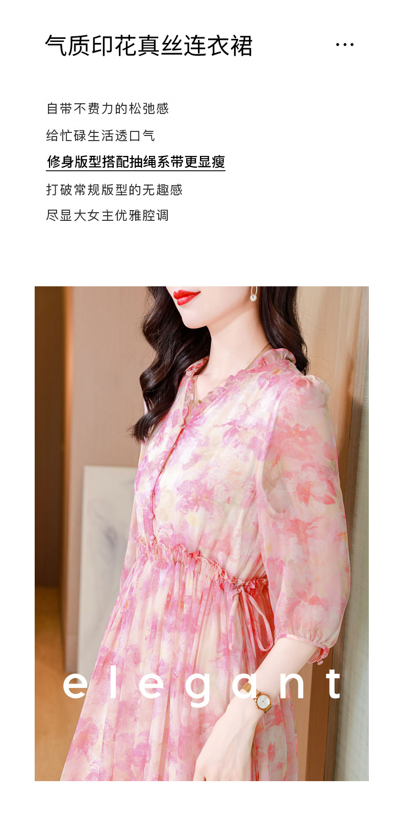 ASE-25010夏季印花气质百搭时尚真丝连衣裙