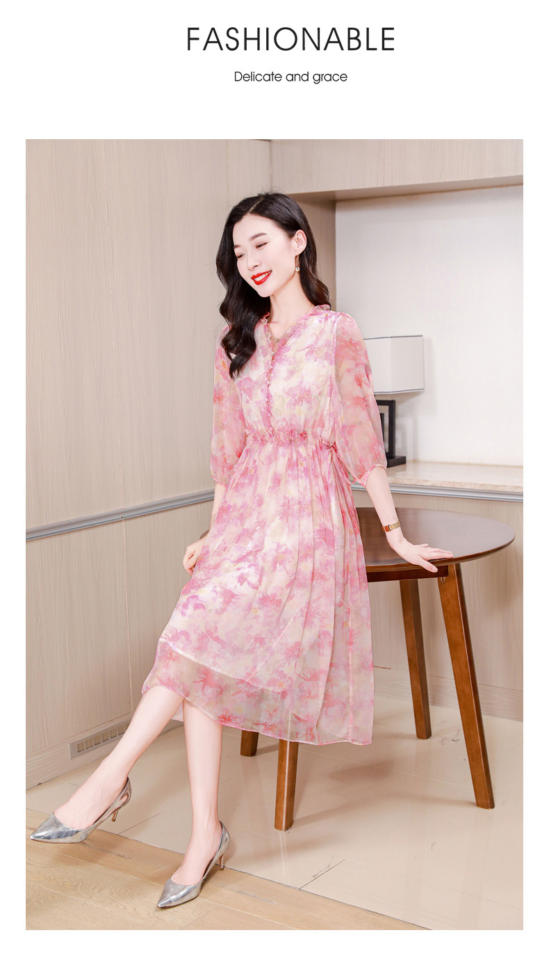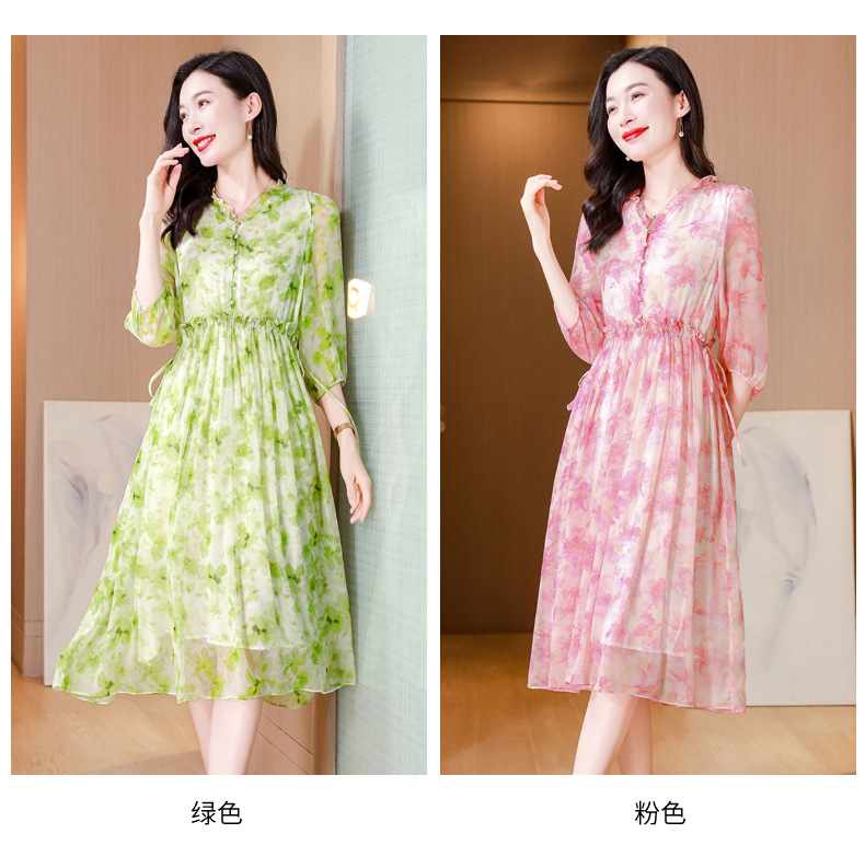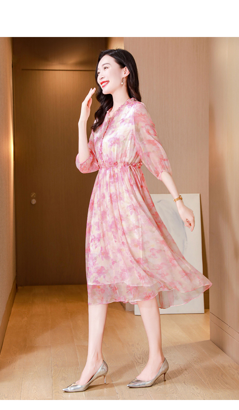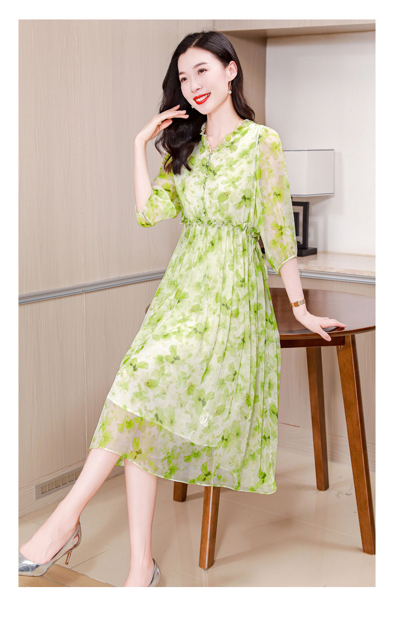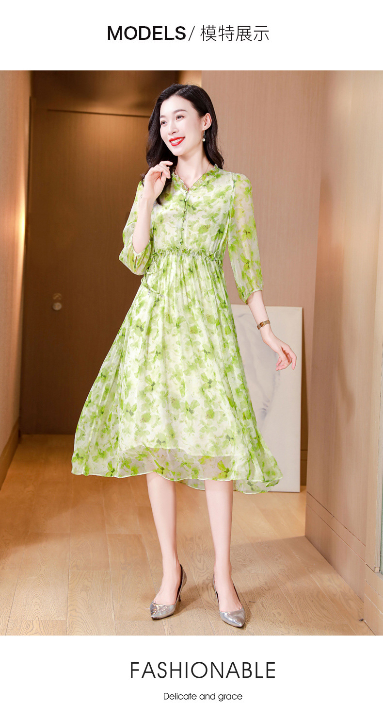 ASE-25010夏季印花气质百搭时尚真丝连衣裙