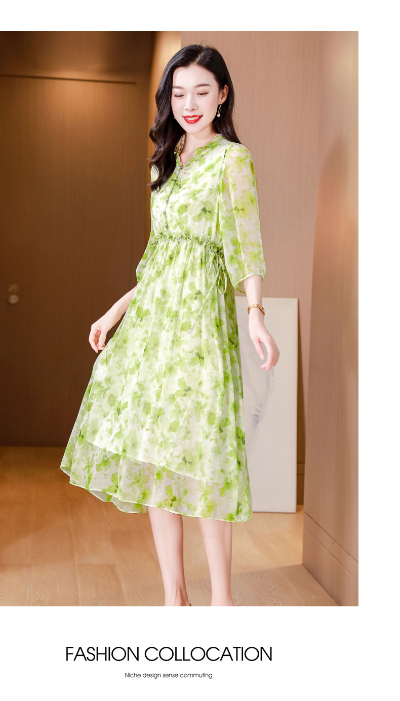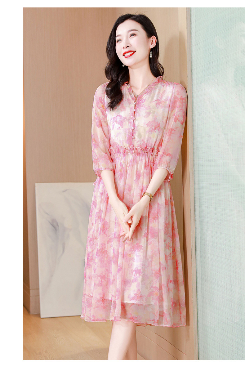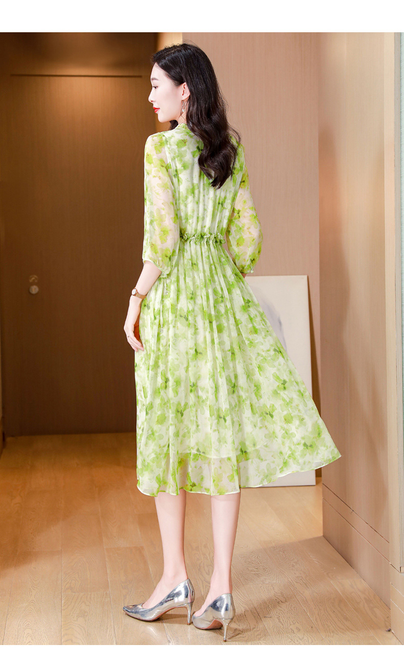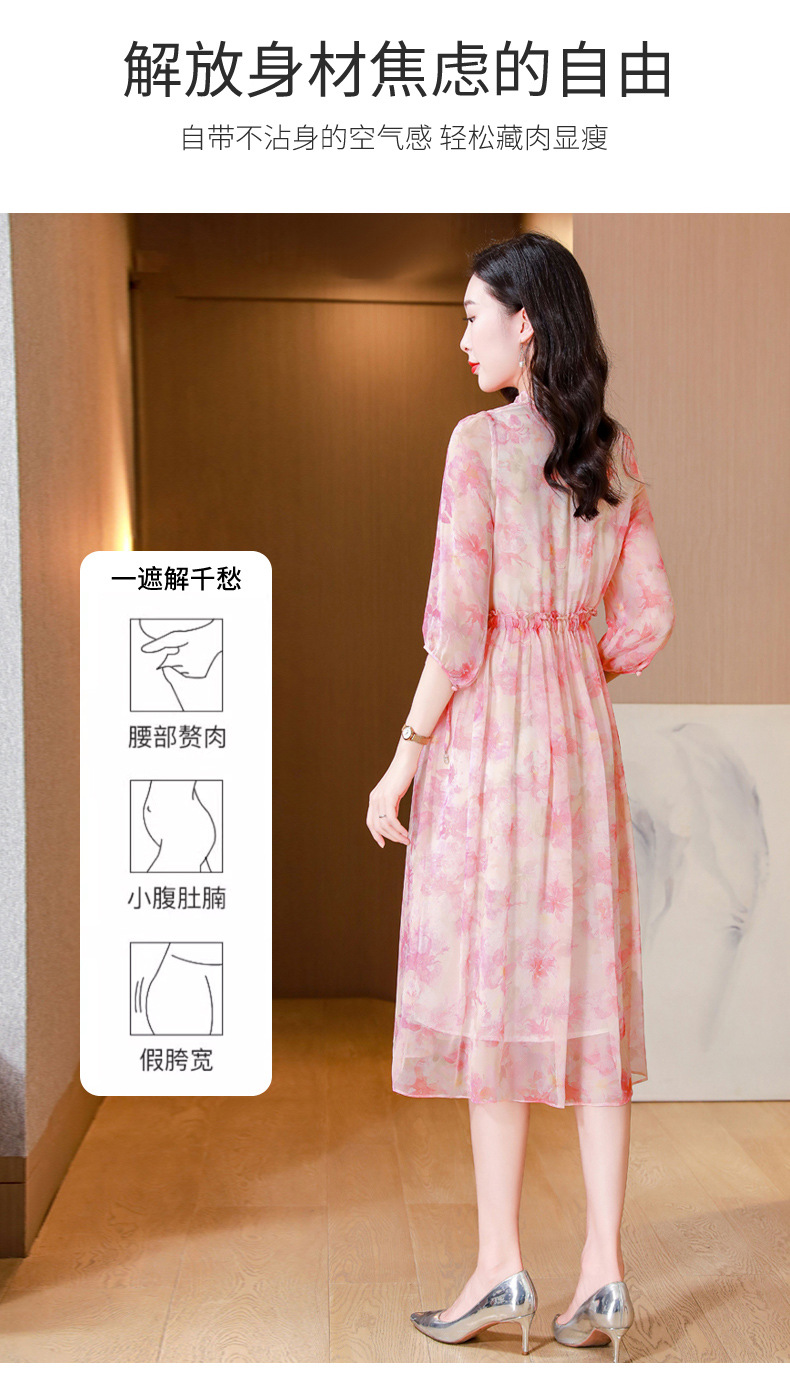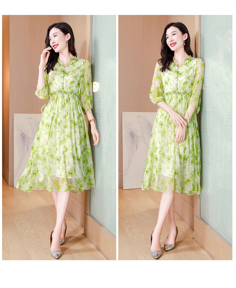 ASE-25010夏季印花气质百搭时尚真丝连衣裙