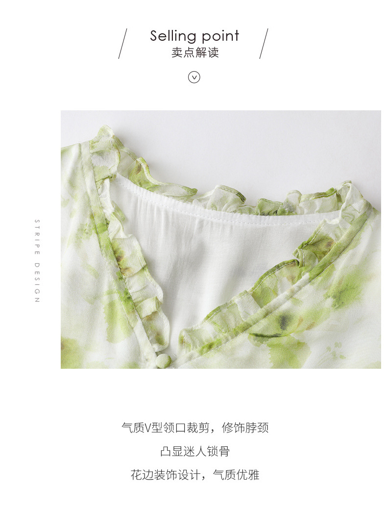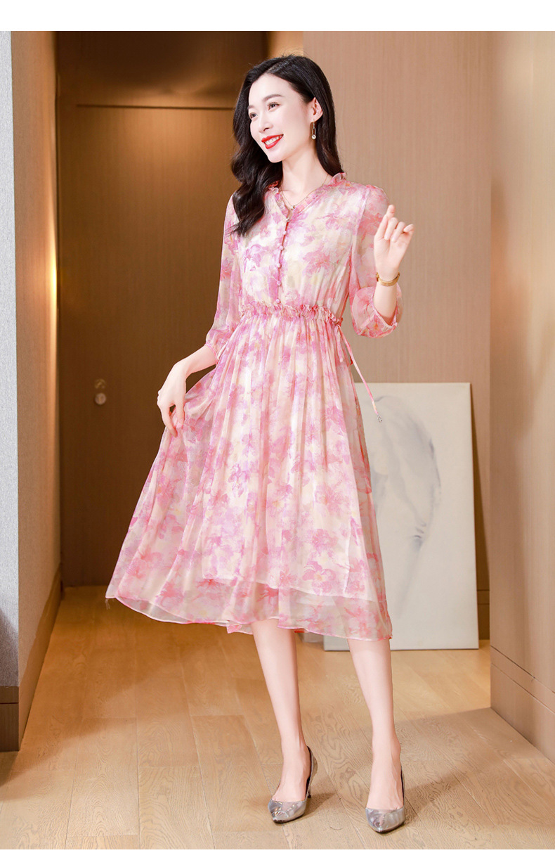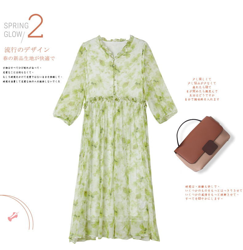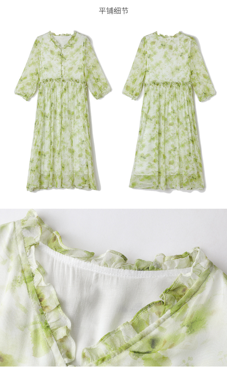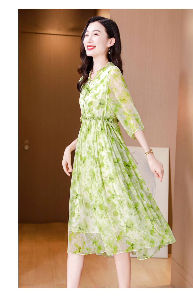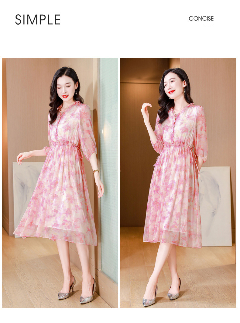 ASE-25010夏季印花气质百搭时尚真丝连衣裙