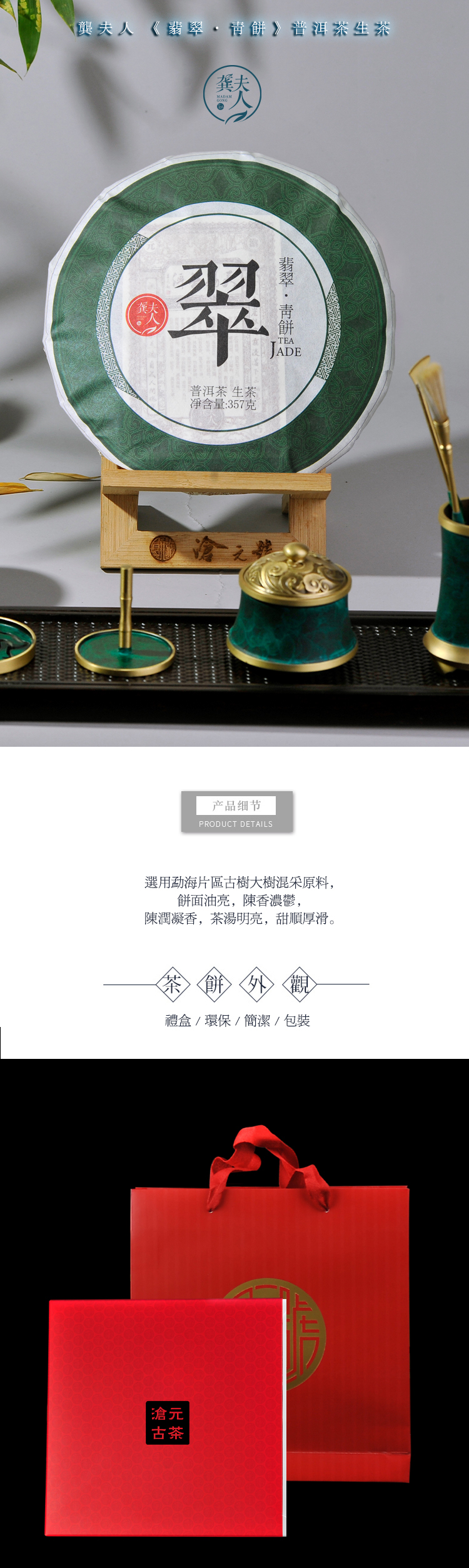 龚夫茶人 翡翠·青饼 普洱茶生茶