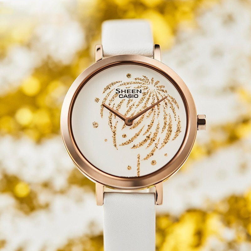 【时计廊】卡西欧SHEEN “花火系列” 人造蓝宝石玻璃镜面防水优雅女表SHE-C130
