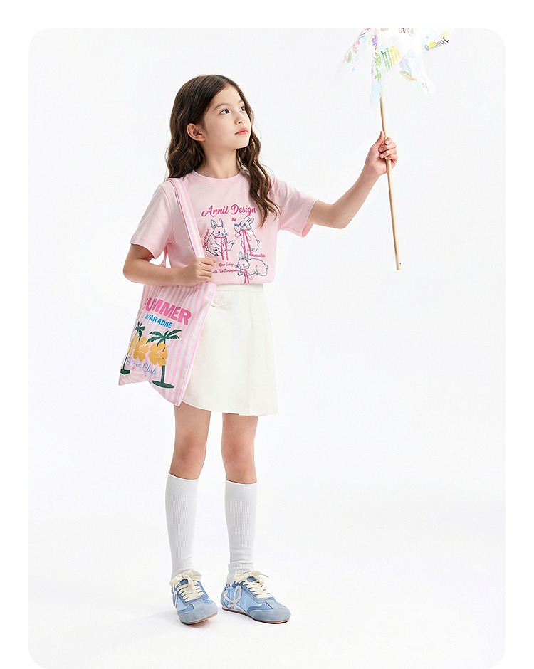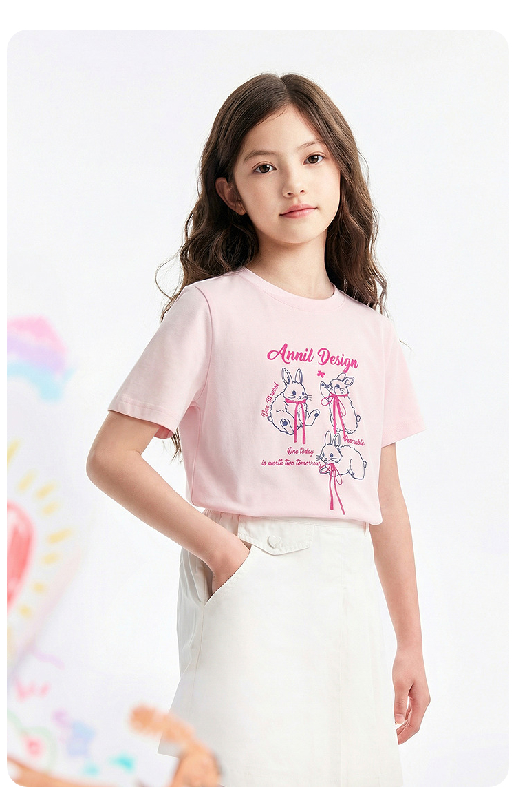 女童圆领短袖针织衫夏季新款安奈儿童装EG621764